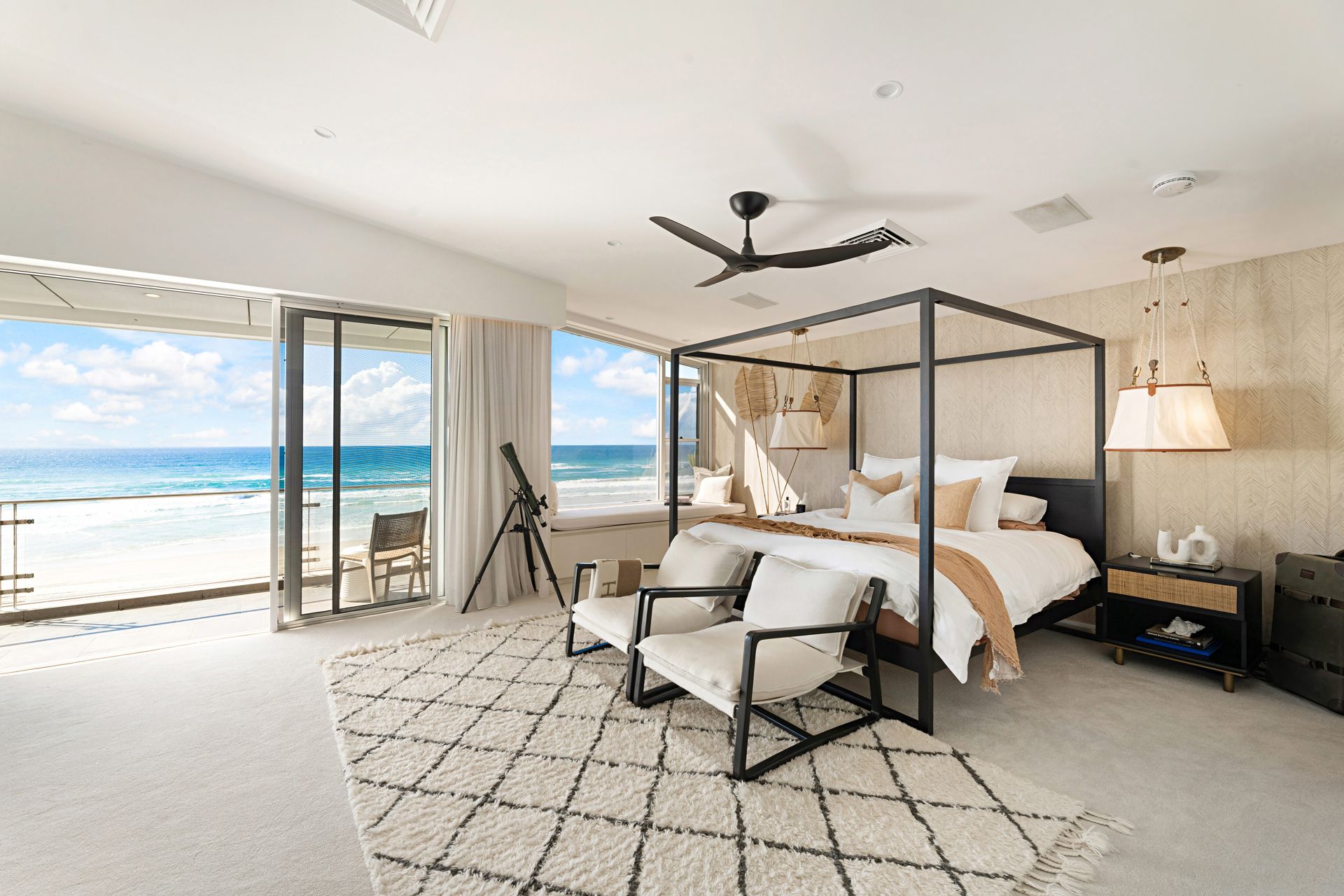 Master suite also with a private balcony and picturesque coastal views spanning Sovereign Island to Kirra