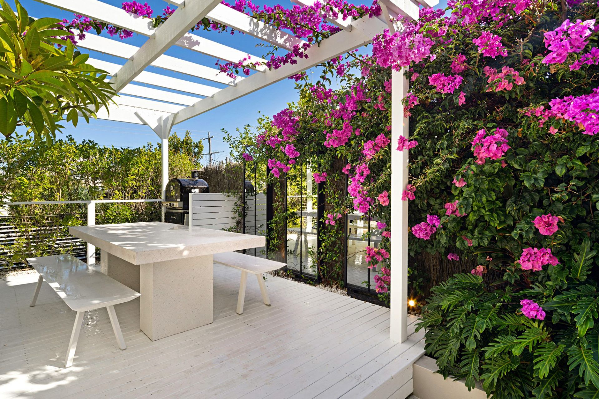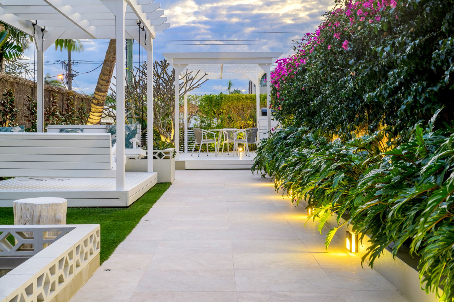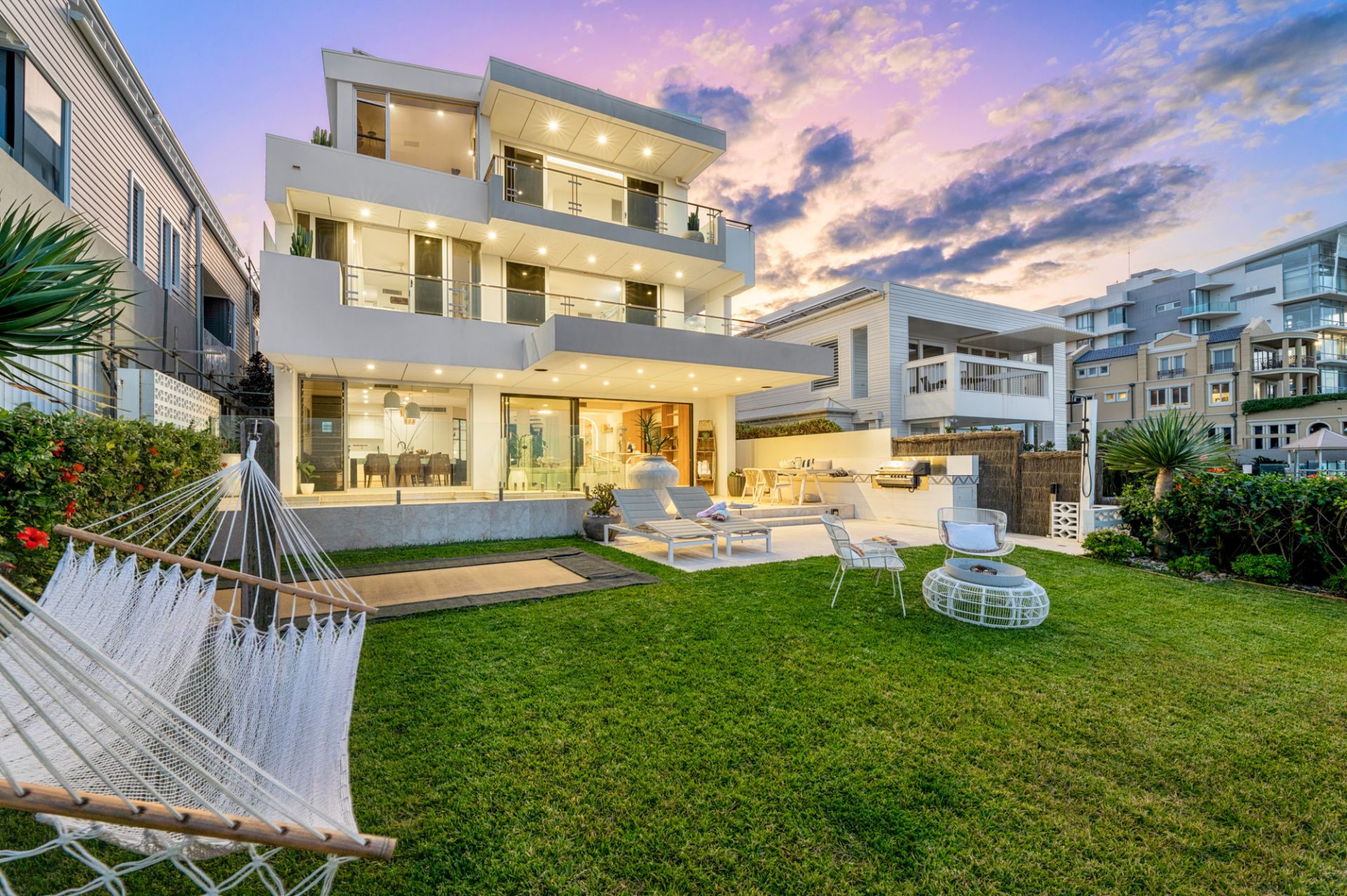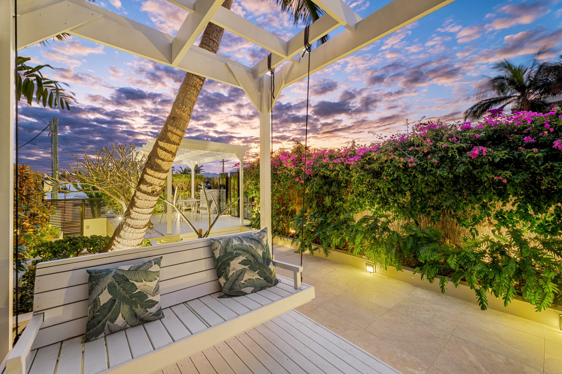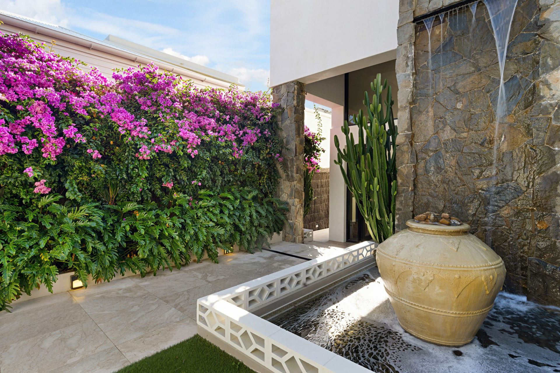 Landscaped gardens, built-in trampoline, custom day-beds and a Basalt stone two-storey water feature