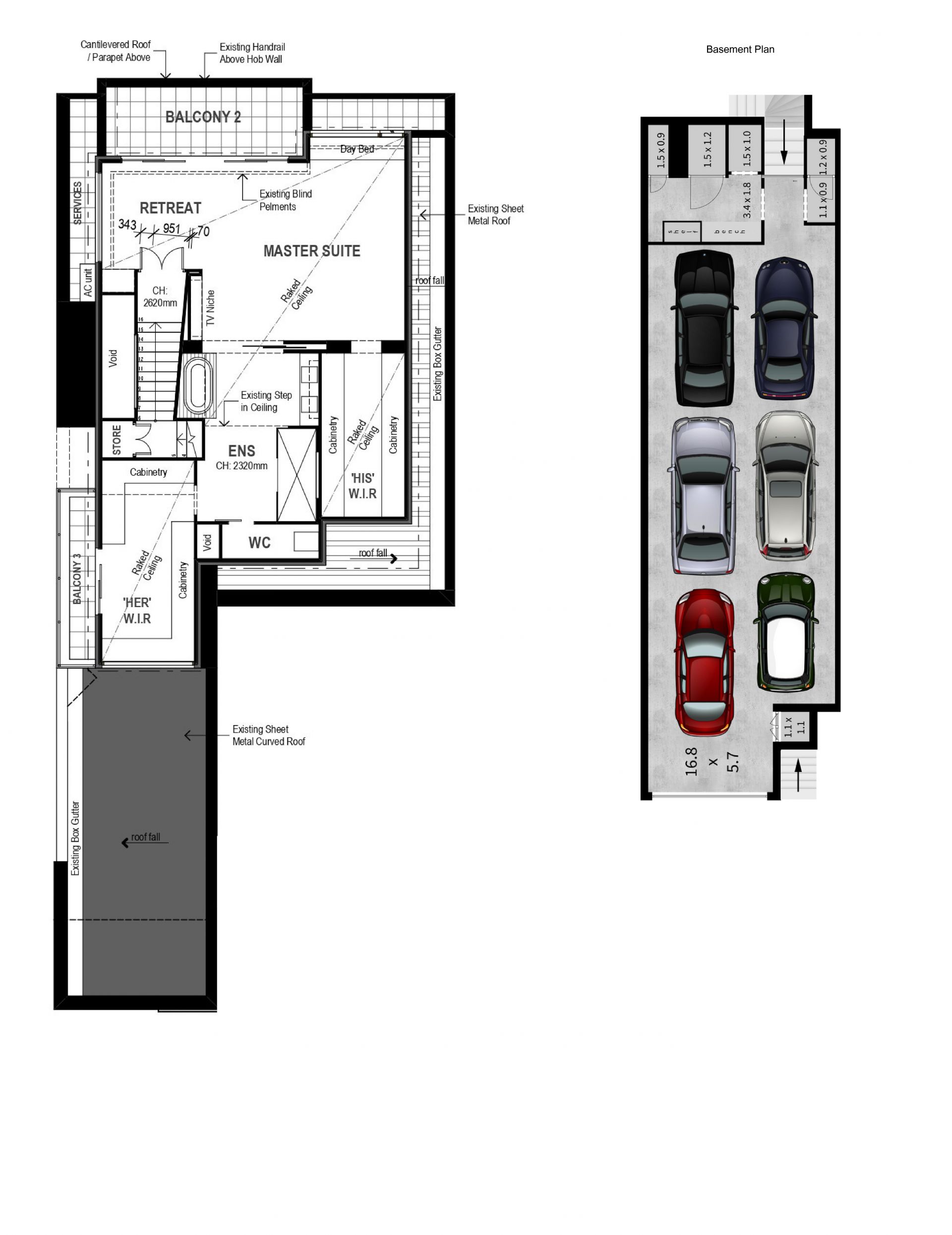 5 car basement garage with storage and automatic pump out system