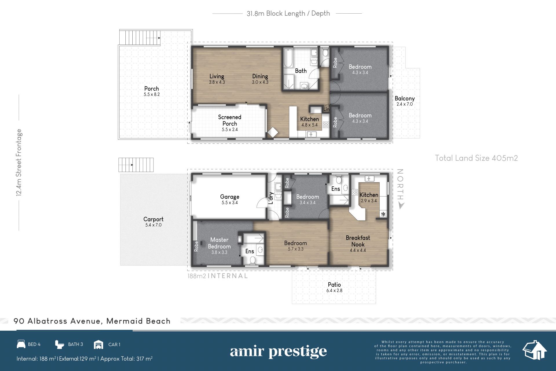 * 405m² north-facing block with a 12.4m frontage