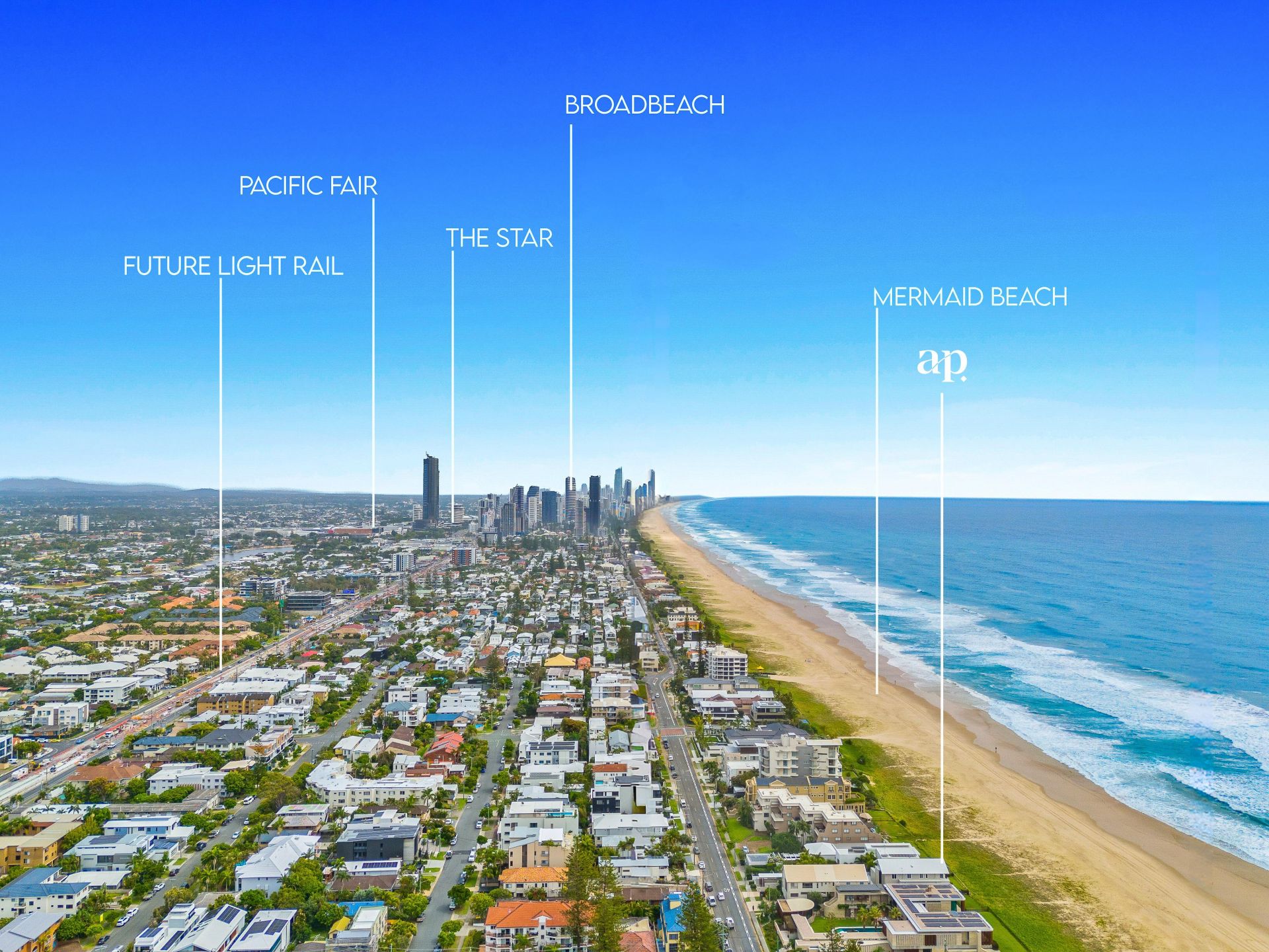 Albatross Avenue connects directly to Hedges Avenue and sits among the Gold Coast's most prestigious beachfront addresses, celebrated for its exclusivity, privacy, and coastal sophistication. Moments from Nobby and Mermaid Beach's vibrant café and dining scene, residents enjoy effortless access to everything the area is renowned for - from sunrise beach walks and morning surfs to oceanfront dining and sunset drinks. The Star Casino and Pacific Fair are only minutes away, offering world-class shopping, entertainment, and dining, while the upcoming light rail will further enhance connectivity along the coast.