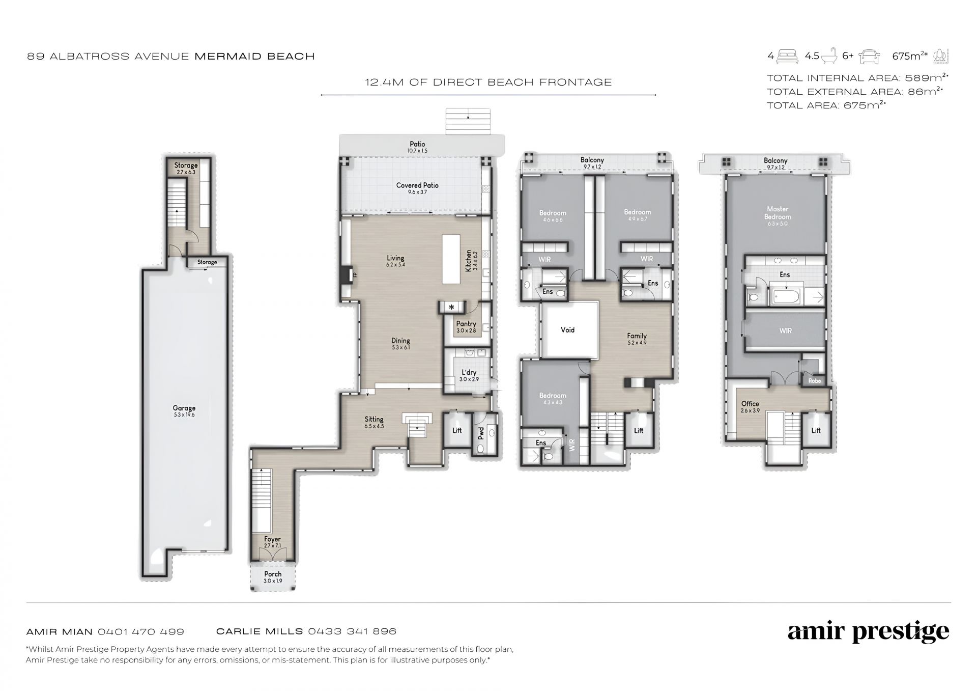 The gourmet designer kitchen showcases premium appliances, integrated fridge and freezer, butler's pantry, and ample storage. Upstairs, a second living area connects three large ensuited bedrooms, including two oceanfront suites sharing a balcony with panoramic views, while the top level is entirely dedicated to the luxurious master retreat - complete with private office, dual walk-in robes, an opulent ensuite with dual showers, freestanding bath, and a private balcony capturing views from Surfers Paradise to Coolangatta.