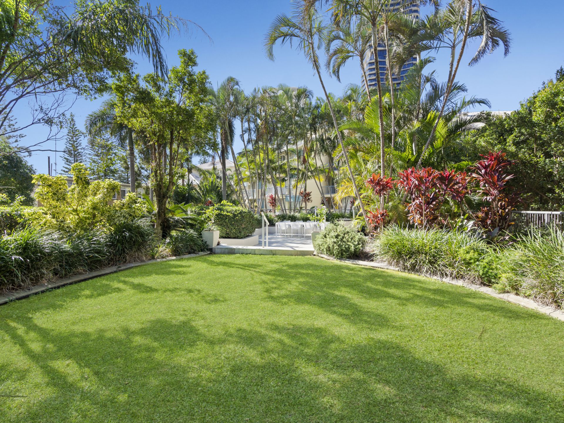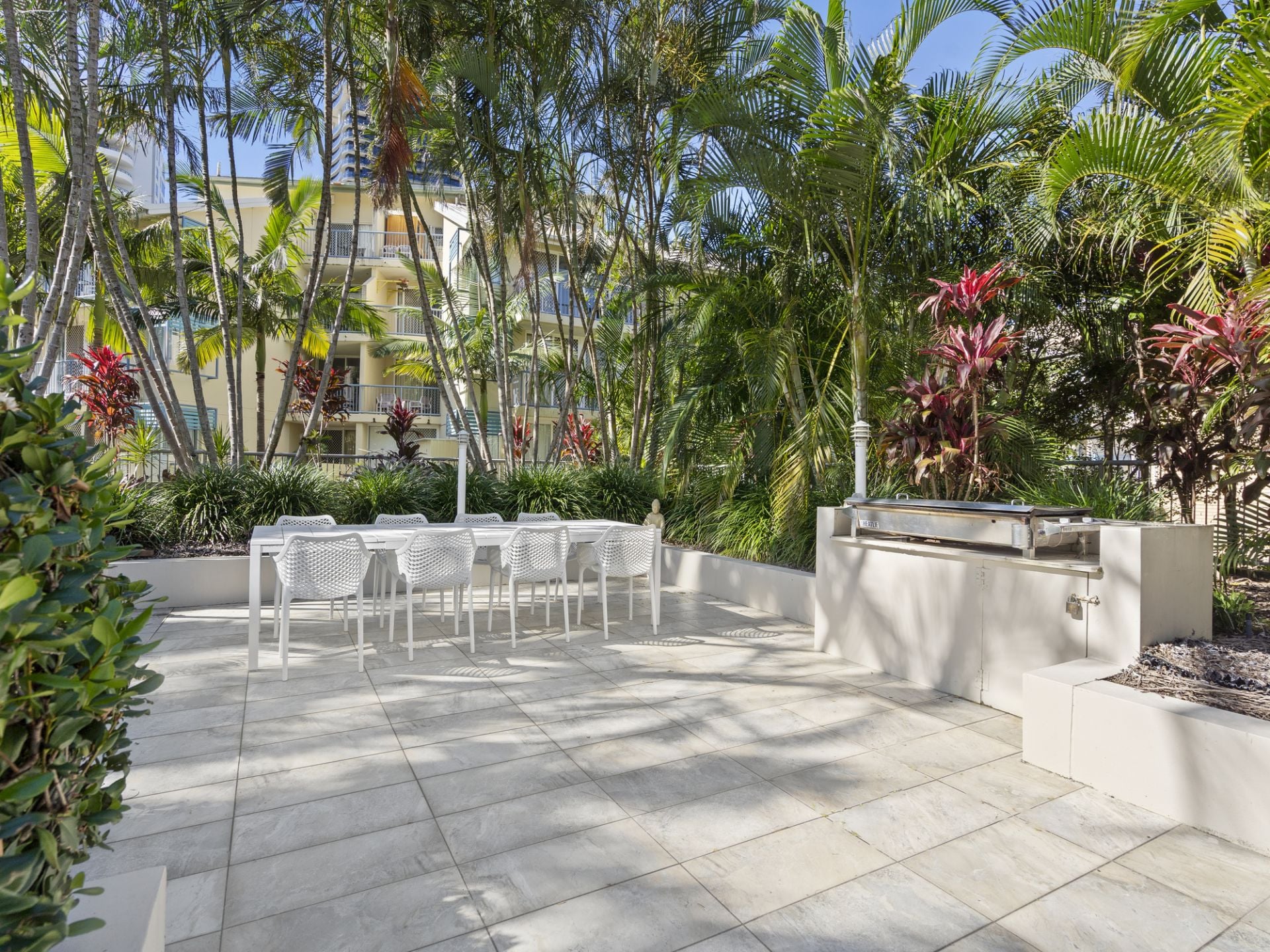 • Resort-style pool, heated spa, BBQ area, and lush tropical gardens