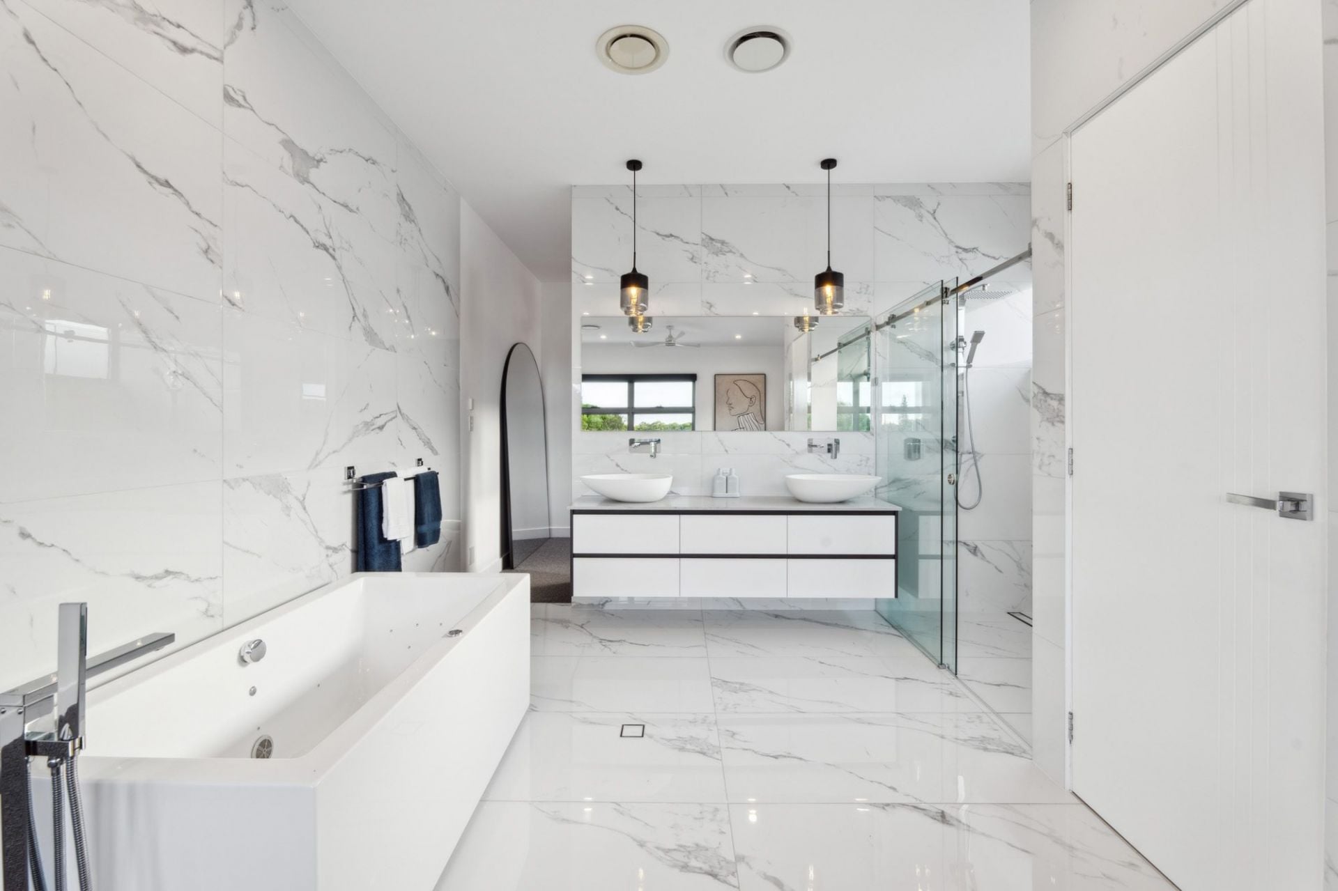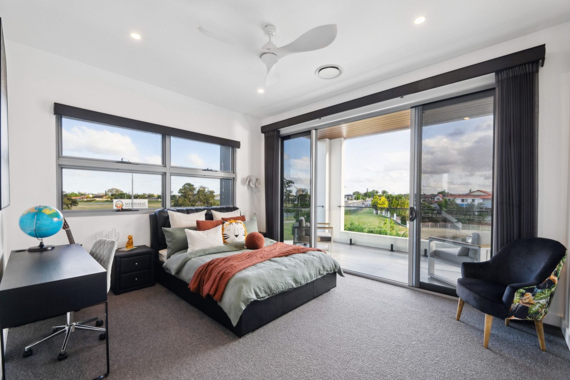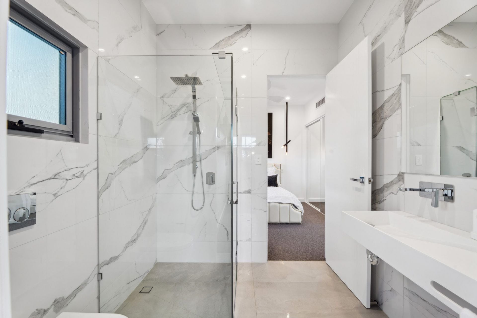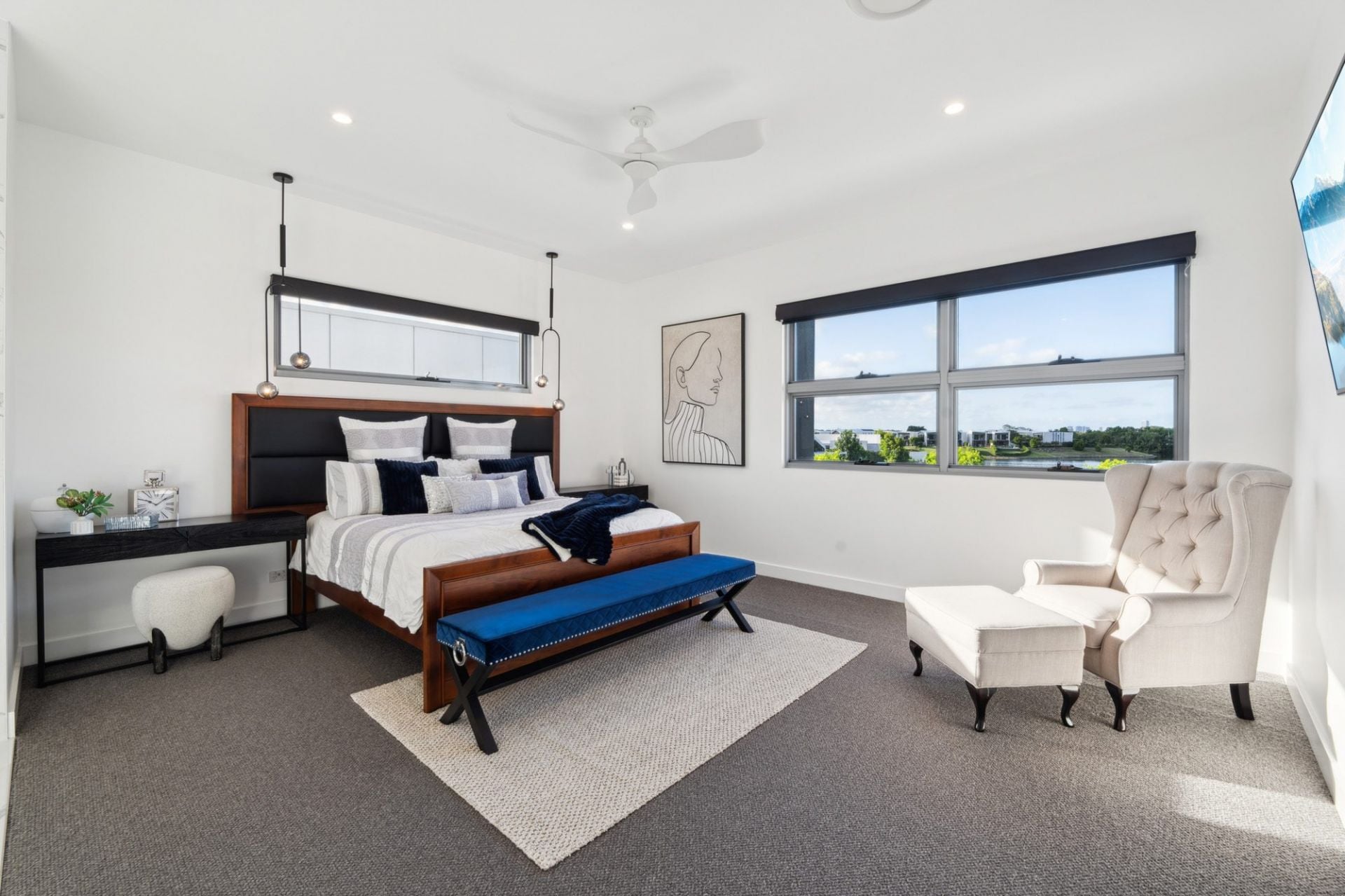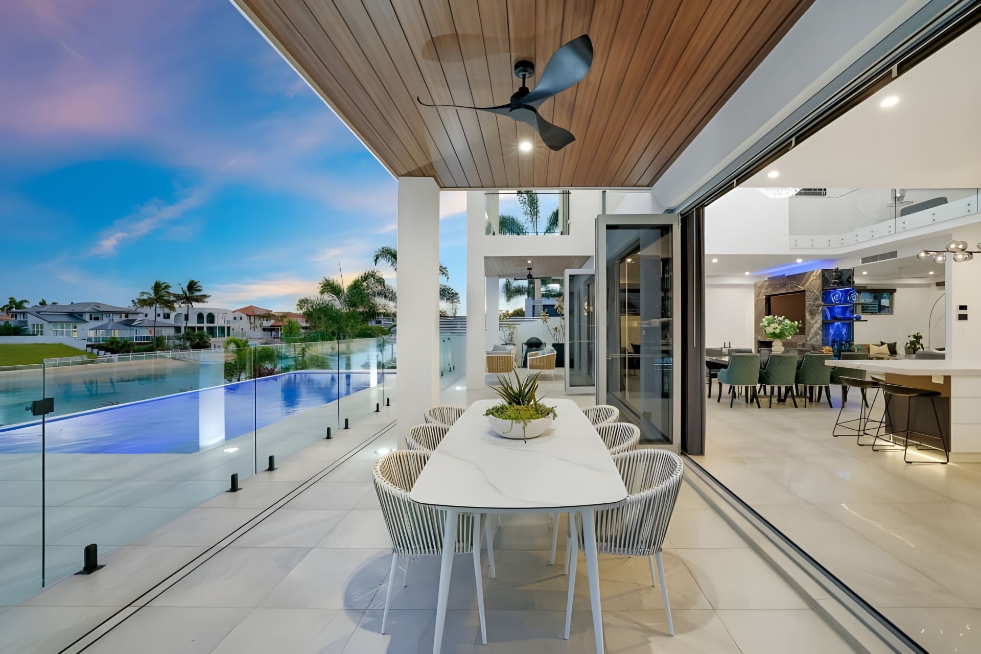 • Three additional upper-level bedrooms with walk-in robes and fully tiled ensuites with shower, vanity, and toilet; two with canal-facing balconies