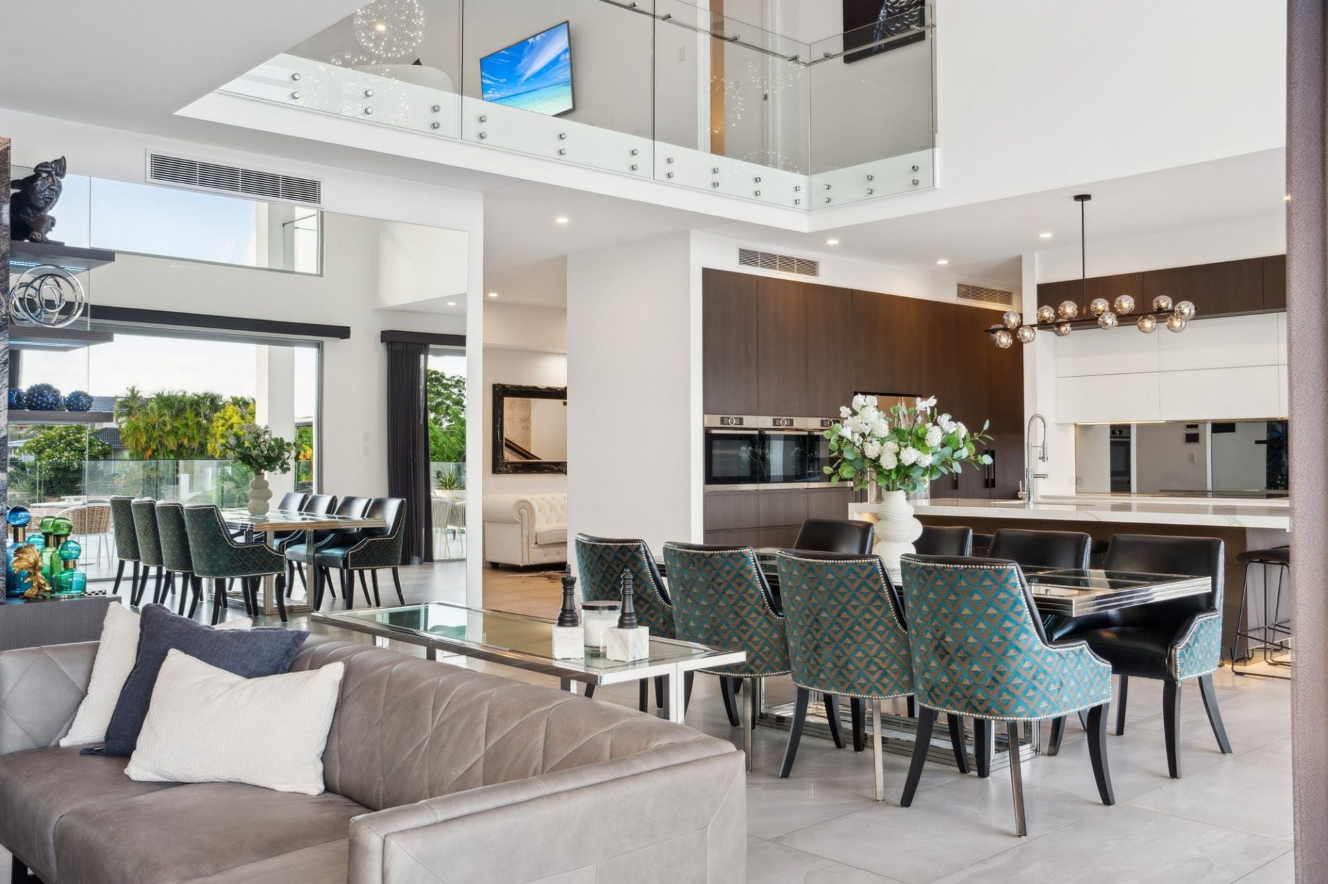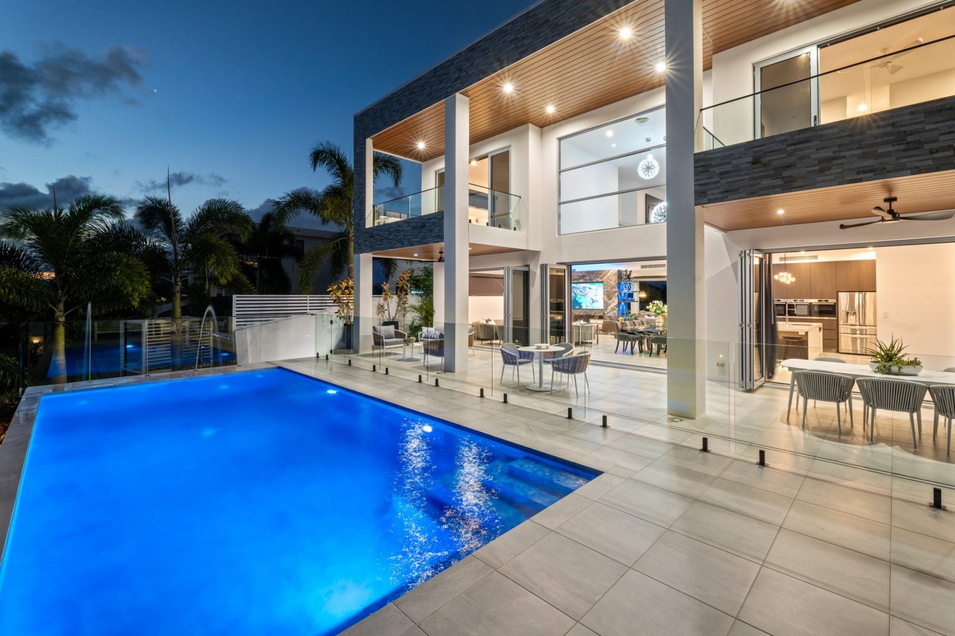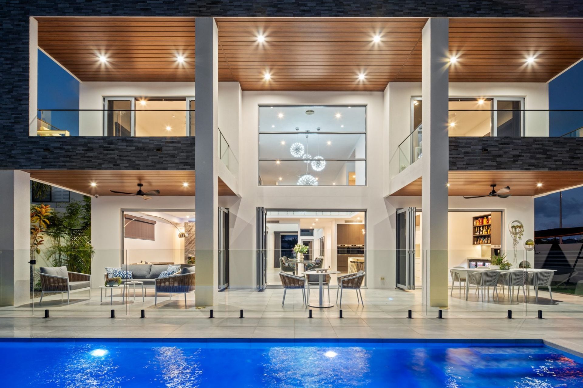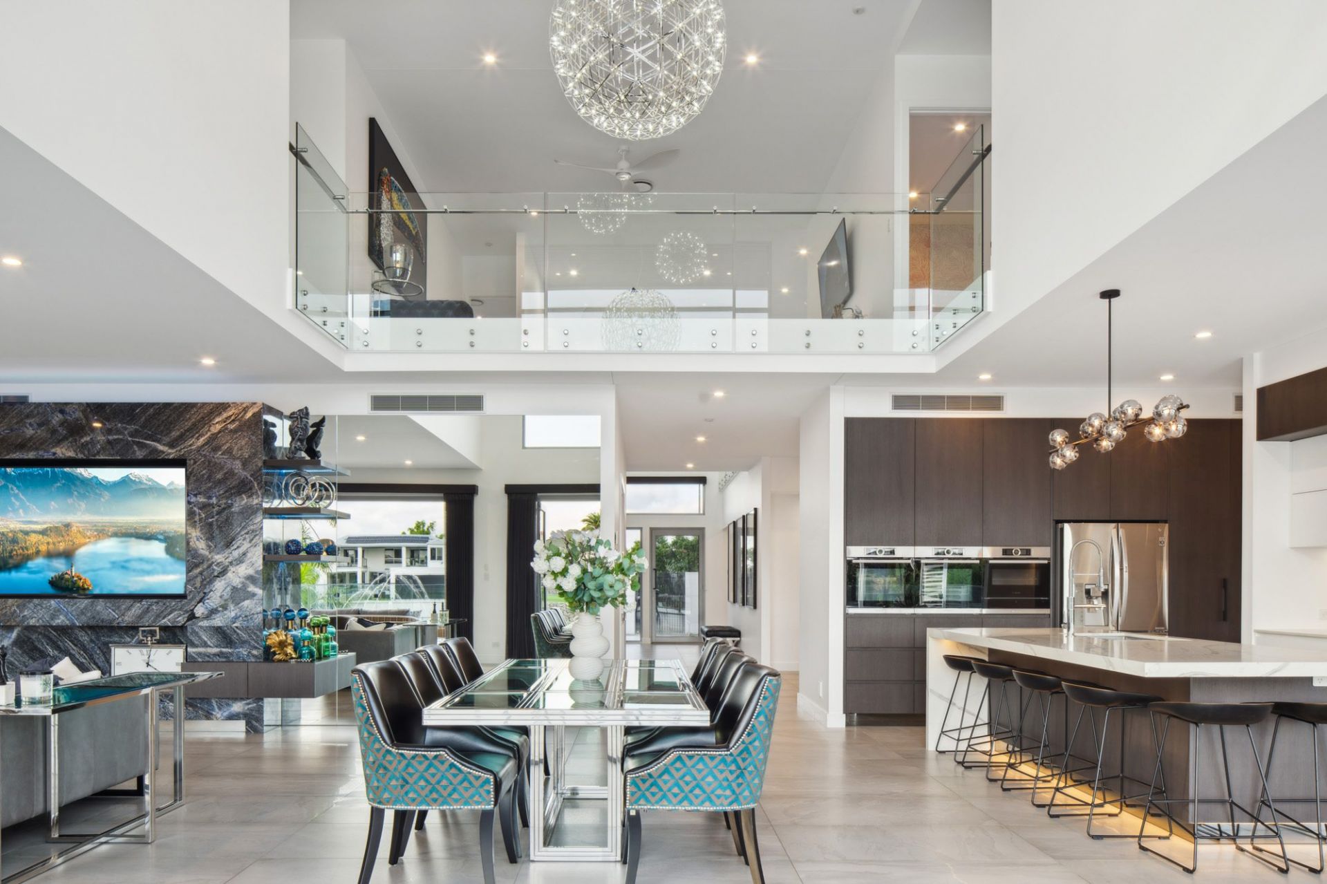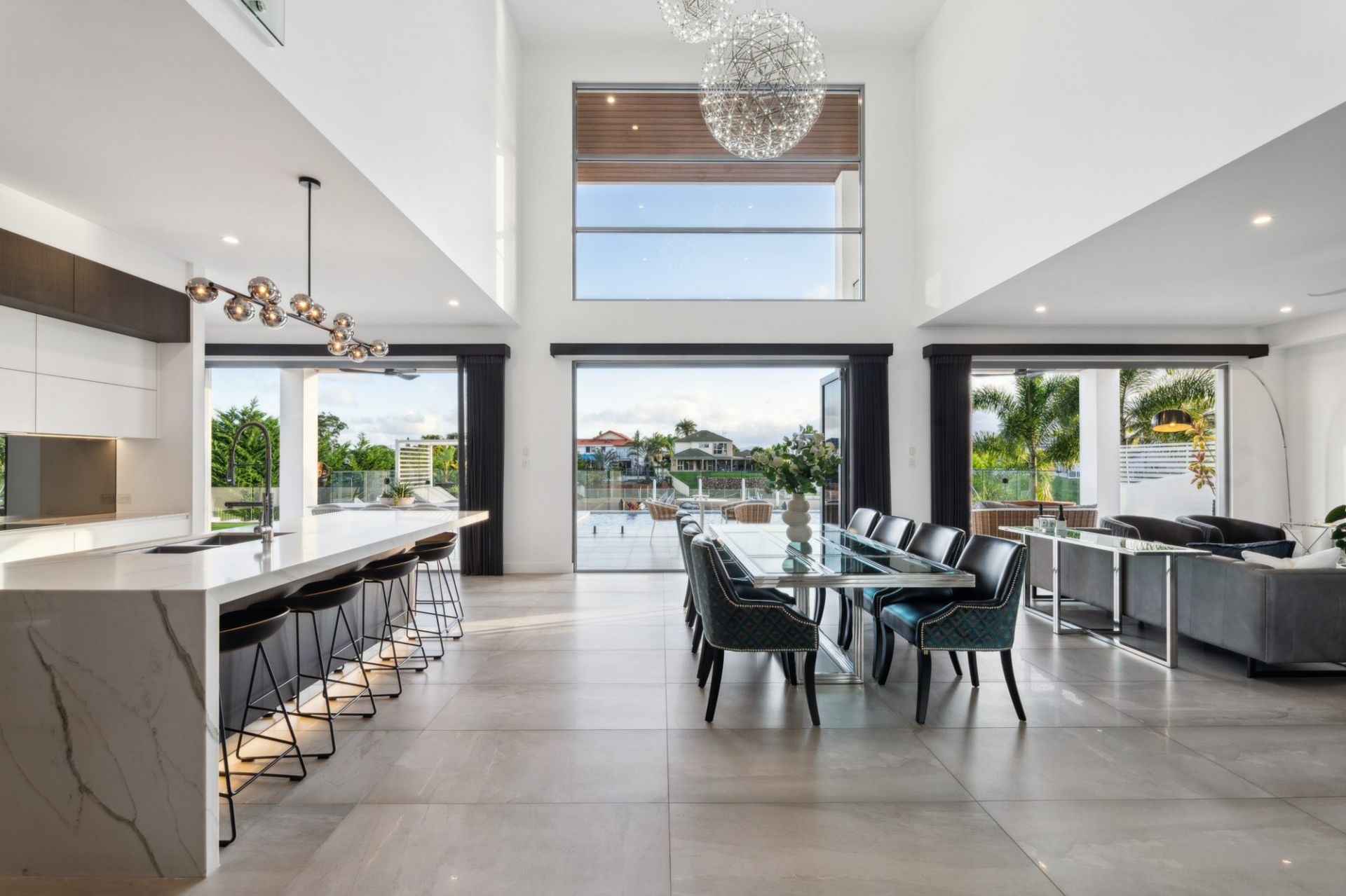 • Open-plan living, dining, and kitchen area with 6.4m* ceilings; solid granite feature wall; bi-fold glass doors opening to alfresco terrace and entertaining space