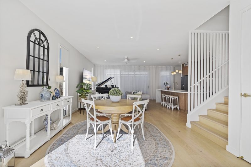 Set across two immaculate levels, this architecturally designed residence boasts three oversized bedrooms, two and a half luxurious bathrooms, and dual living zones, blending effortless liveability with refined sophistication.