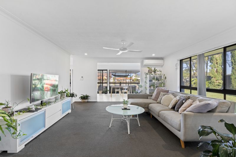 Welcome to 21 Sundowner Court, an exceptional opportunity to secure a waterfront home in one of Mermaid Waters' most tightly held pockets. Set on a large 827sqm* block with a wide water outlook and private sandy beach, this well-maintained single-level residence offers space, comfort, and the perfect balance of indoor-outdoor living.