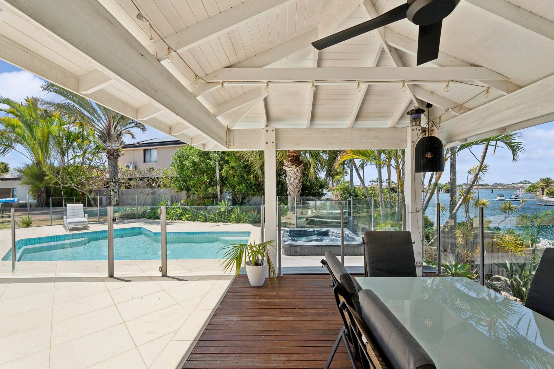 Step outside and you'll discover a lifestyle made for entertaining - a covered alfresco pavilion, resort-style pool and spa, and a secure grassy yard perfect for kids or pets. With waterways approval, you can even install your own pontoon, ready for kayaking, fishing, or enjoying the waterways right from your backyard.