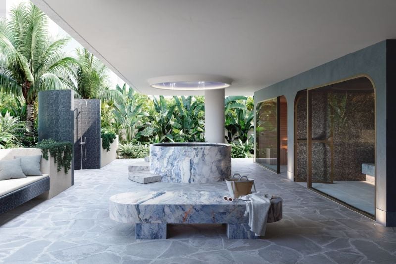 - A wellness centre with a gymnasium, yoga/Pilates room, Peloton room, infrared sauna, steam room, outdoor spa and outdoor shower.