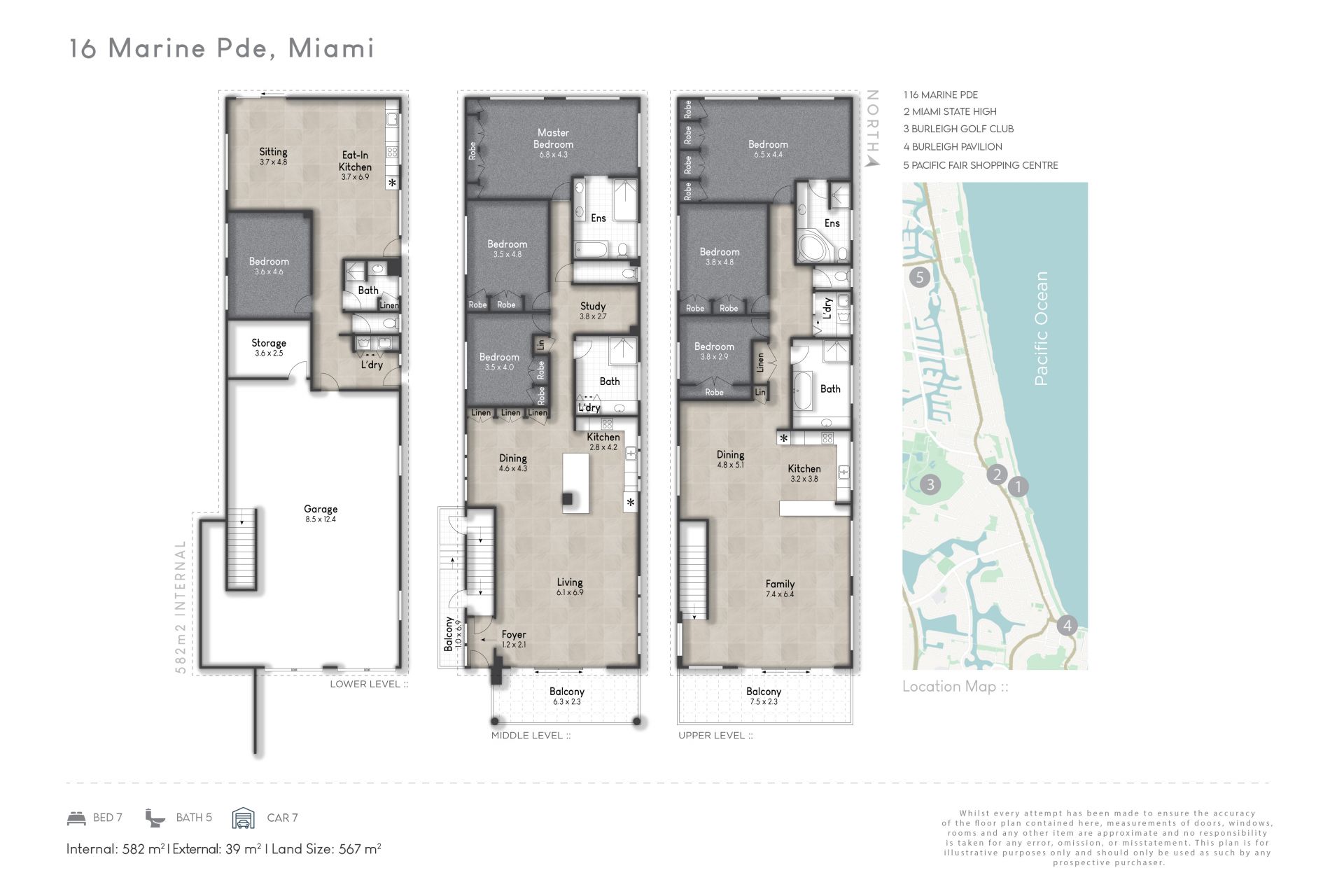 Set on a generous 567m²* beachfront allotment with approximately 10 metres* of direct beach frontage. The residence is configured across three expansive levels, each with private entrances.