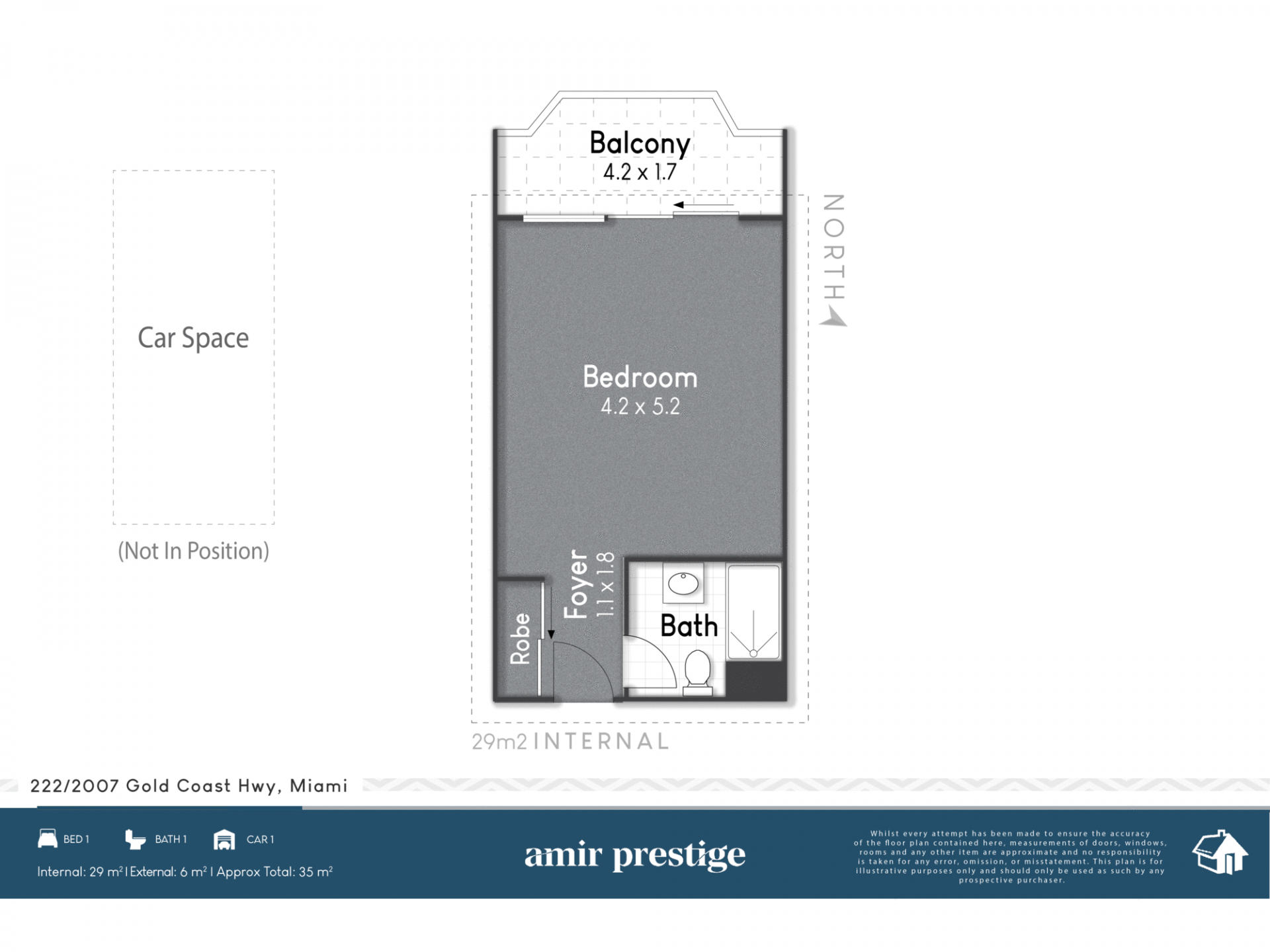 Studio | 1 Bathroom | 1 Secure Basement Car Space