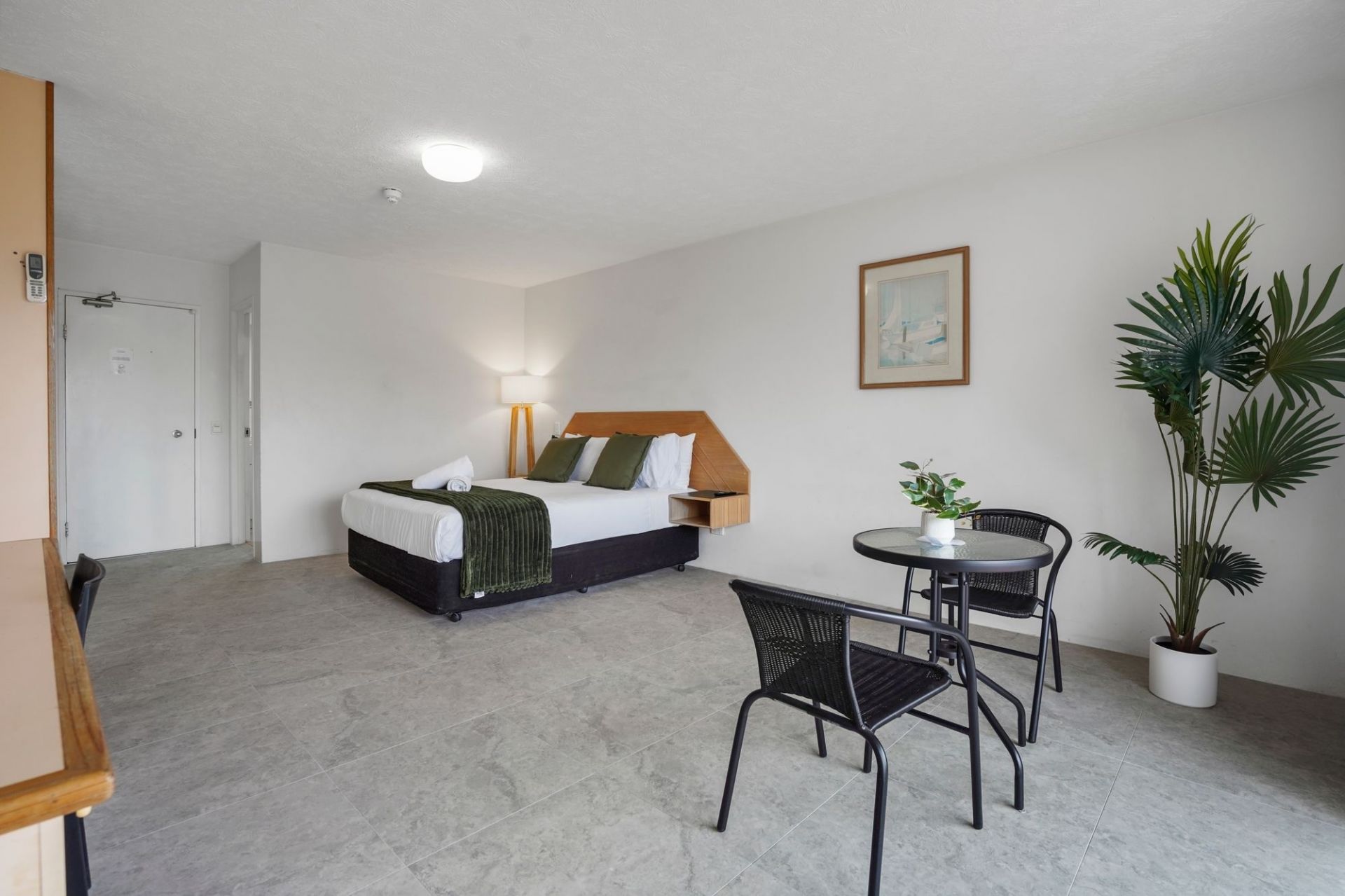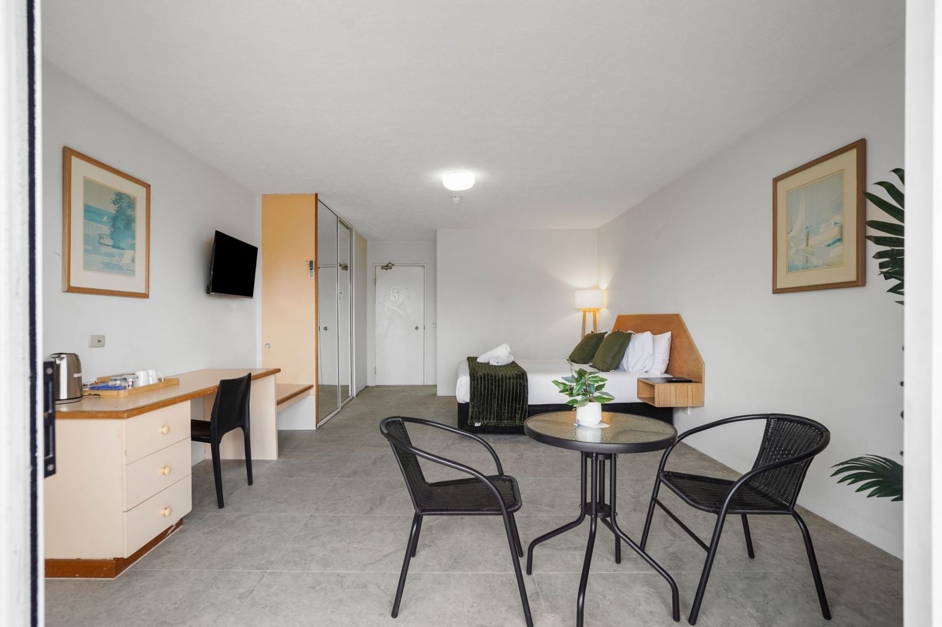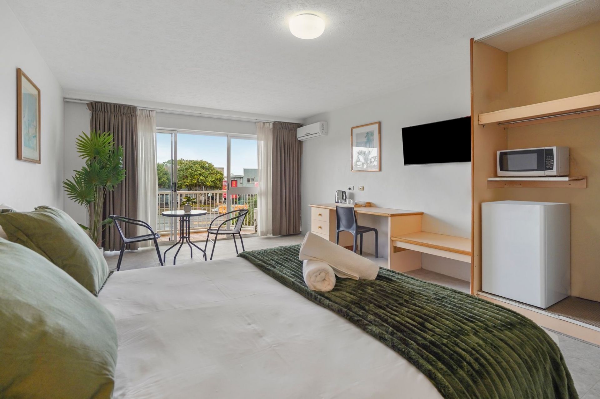 • Functional kitchenette with microwave and fridge