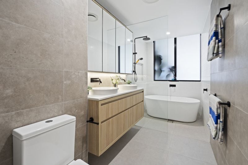 • Master suite with private balcony, luxe ensuite with a soaking bathtub, walk-in robe, and triple built-in wardrobes