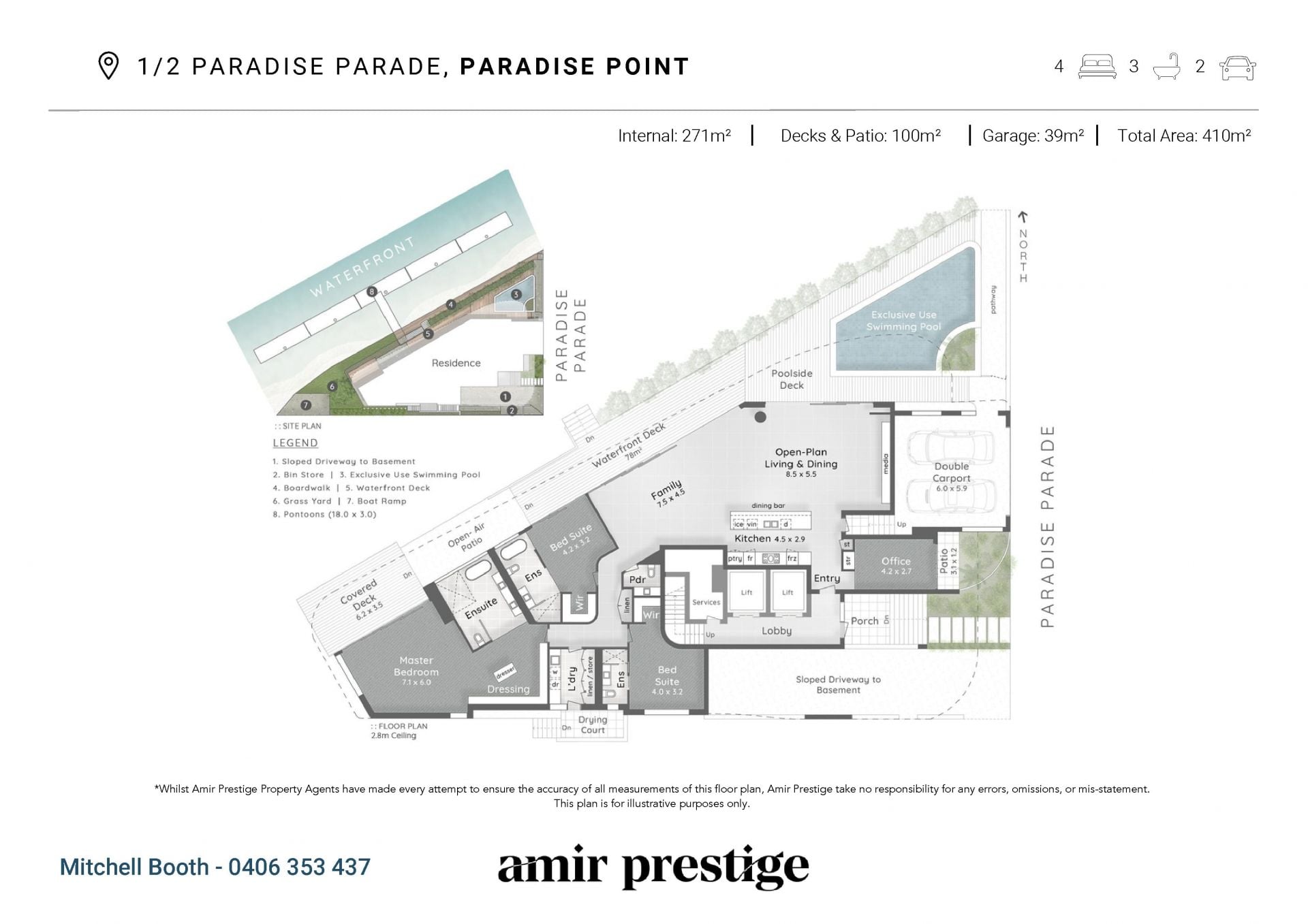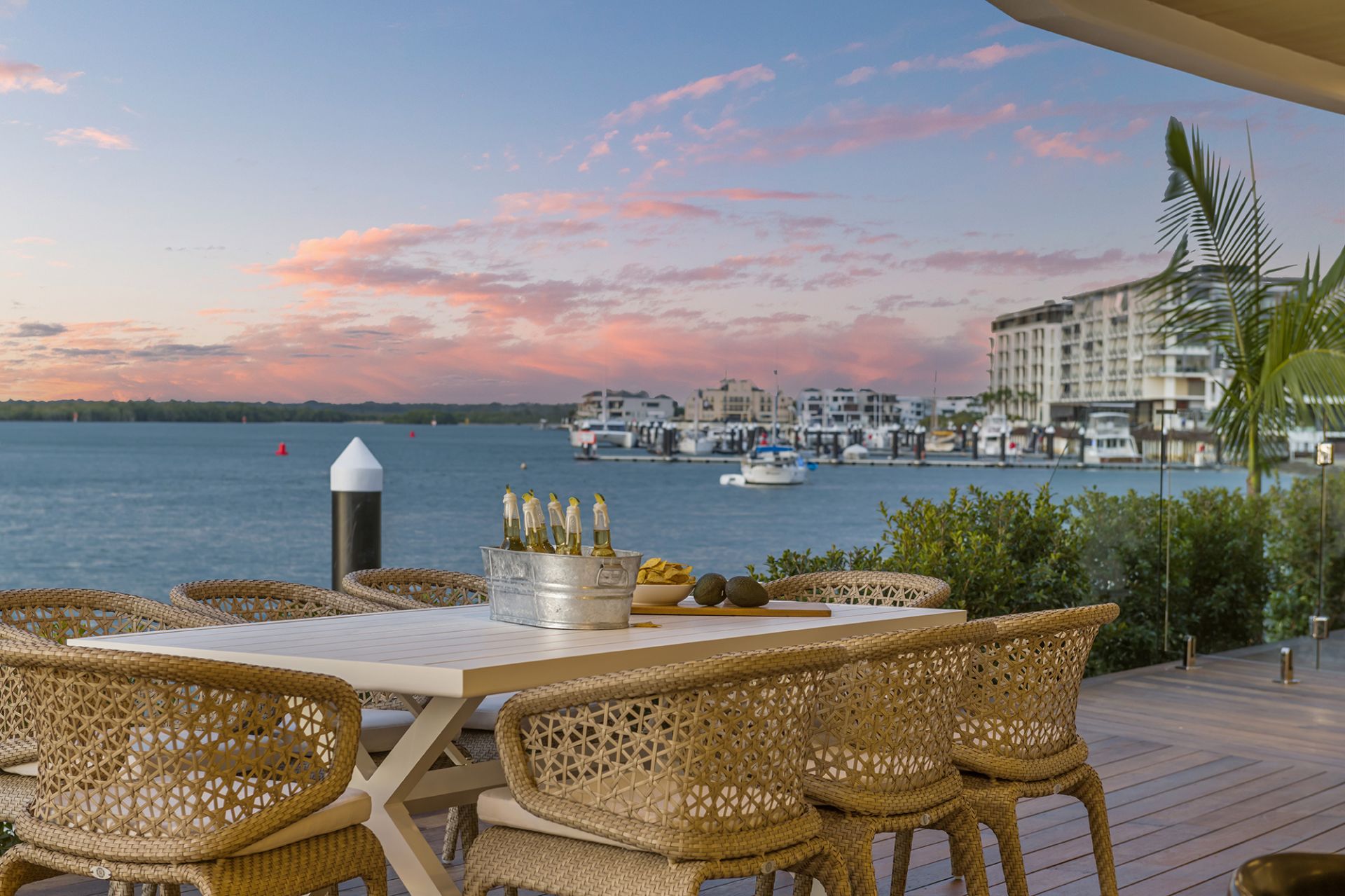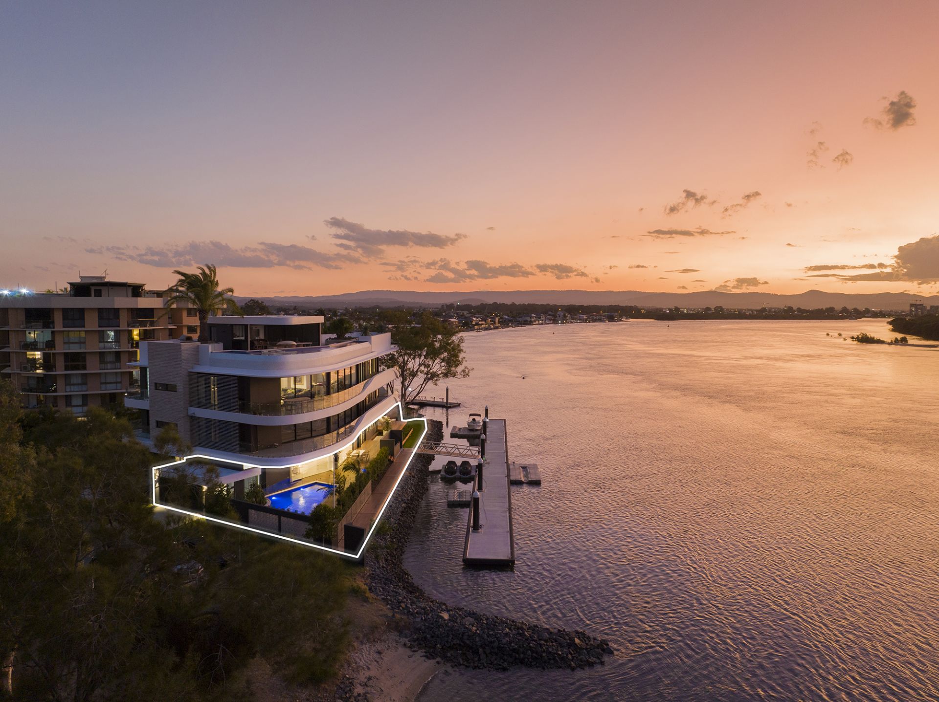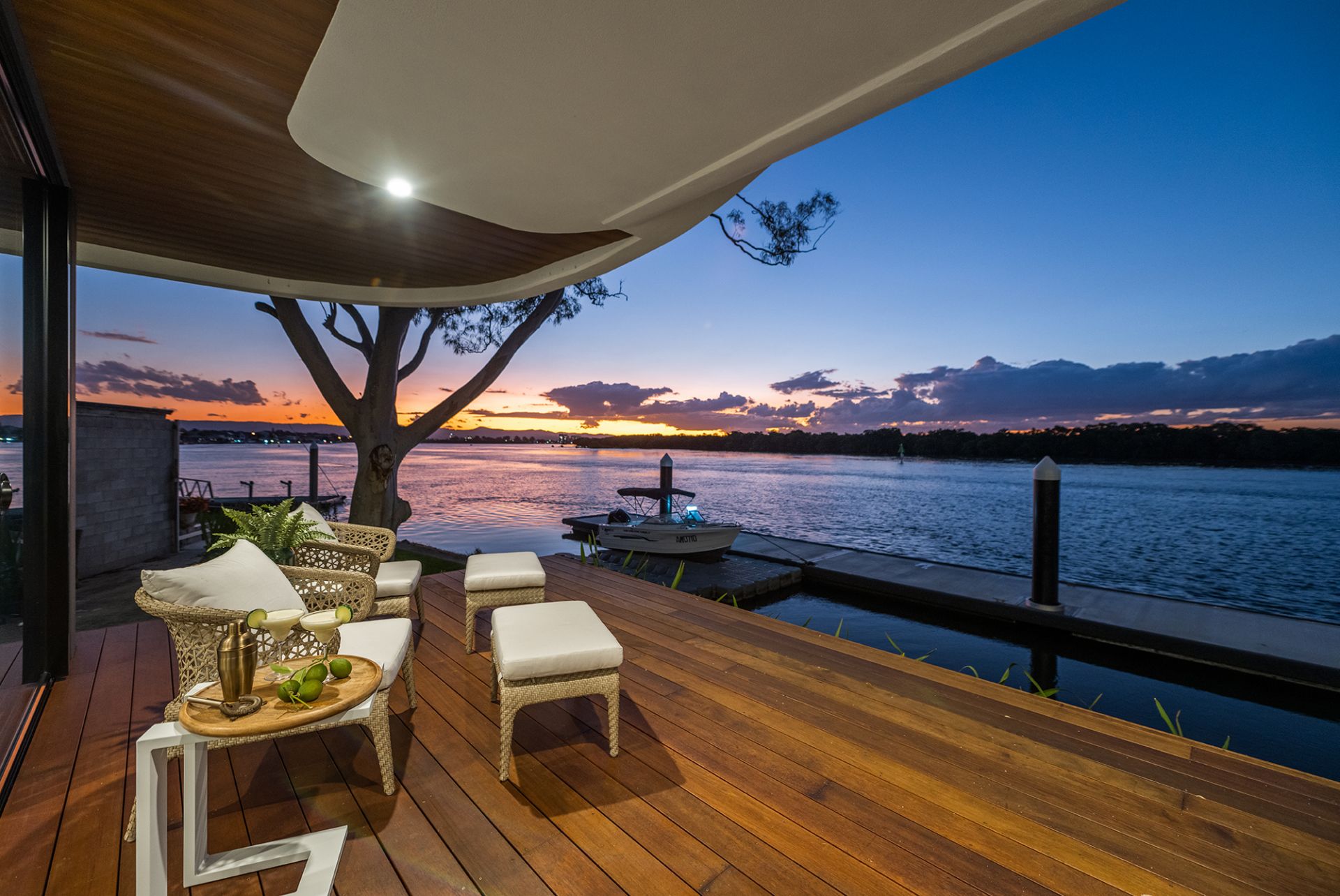 - Sprawling alfresco deck offering stunning views of the wide waterways and complemented by a pristine, fully tiled swimming pool