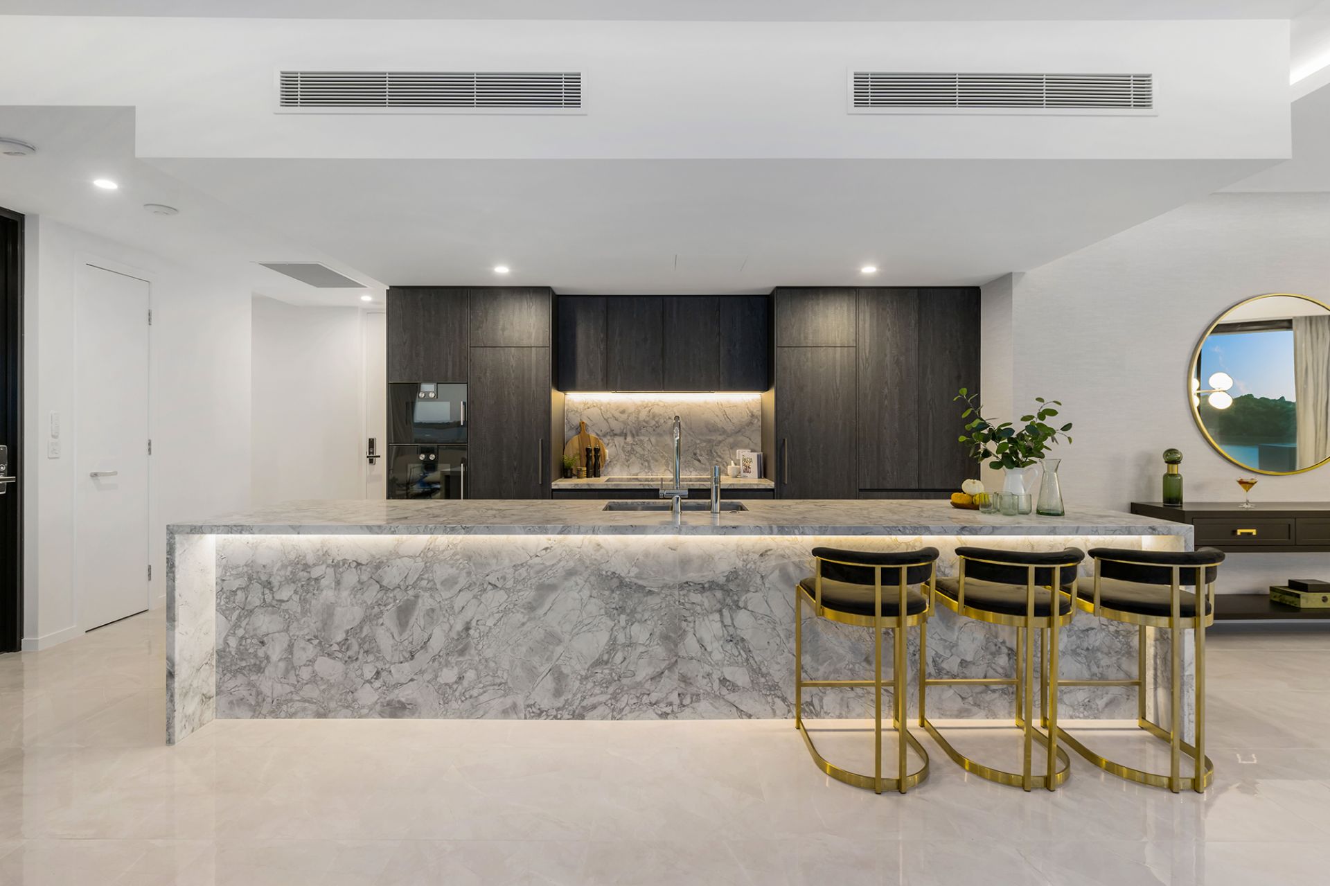 - State-of-the-art gourmet kitchen featuring Gaggenau appliances, Dolomite Super White stone benchtops, Liebherr fridge and freezer, Vintec wine fridge, and Hoshizaki ice maker