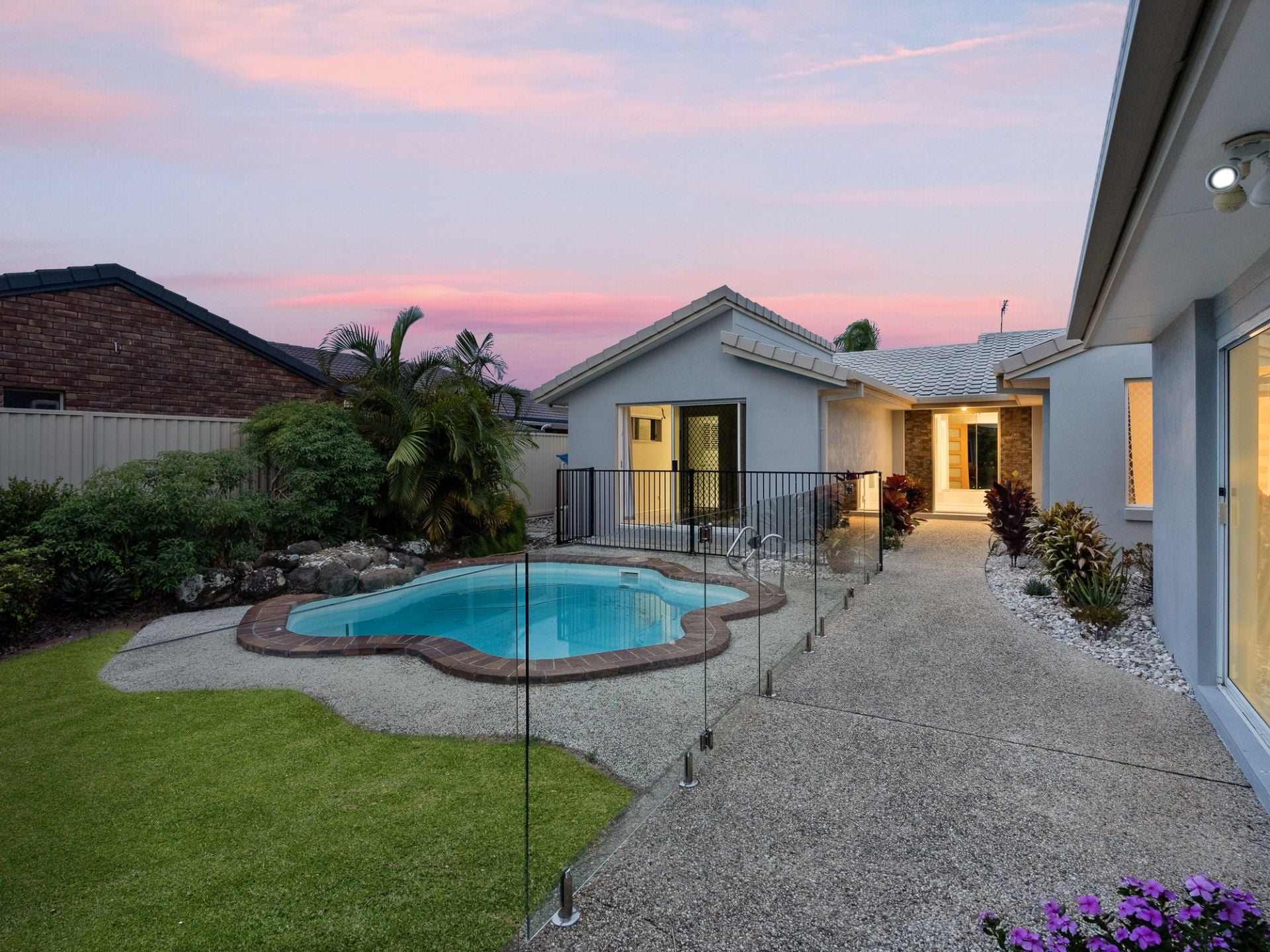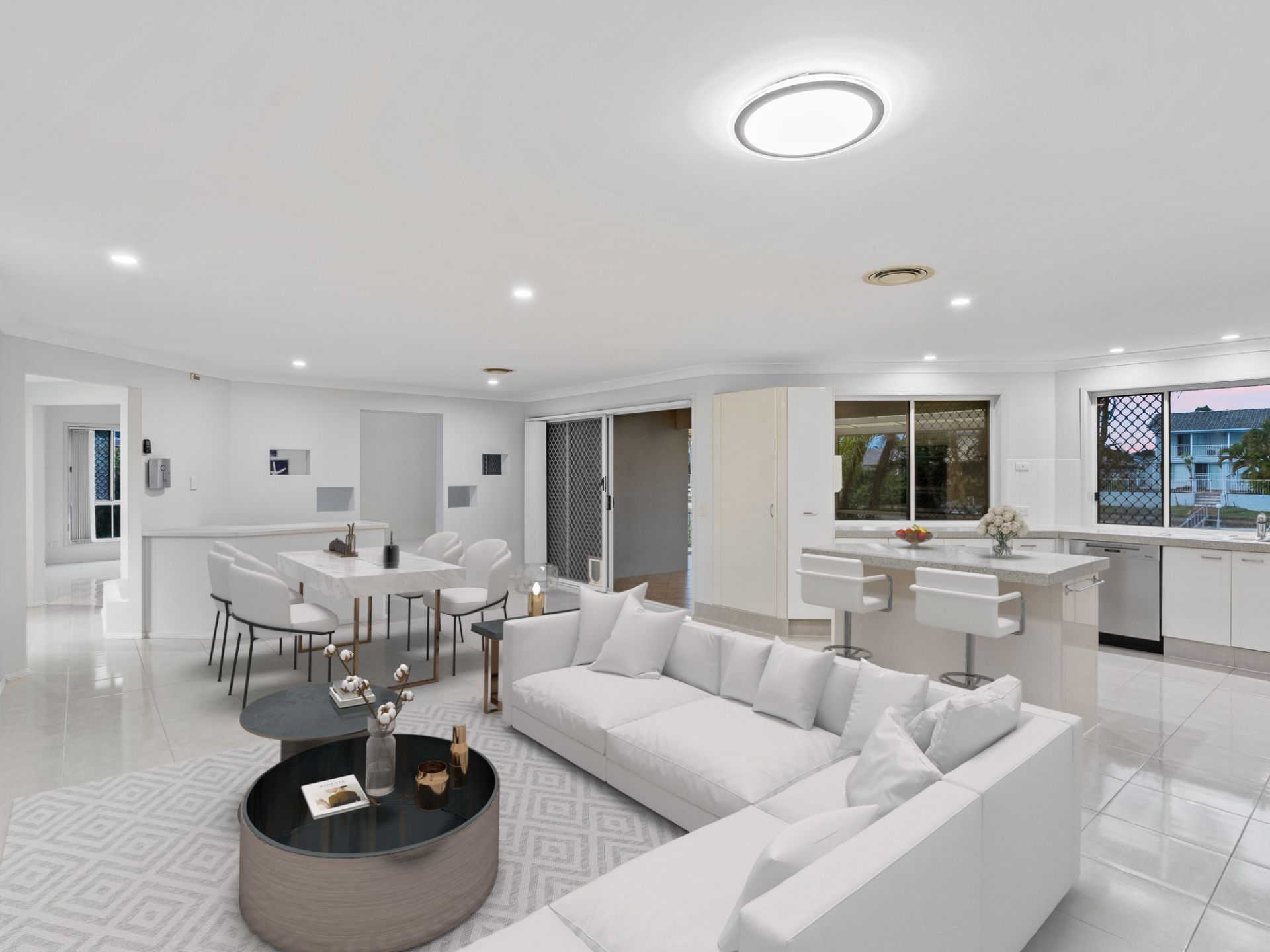 Designed for effortless living and entertaining, the home features multiple light-filled living zones and a spacious open-plan kitchen, dining and living area that flows seamlessly outdoors. Entertain family and friends under the covered alfresco area, overlooking the tranquil waterway or relax in the front pool on a hot day.