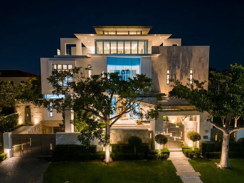 As we walk through the main entry gates you are in view of the grand 5.8metre entry void and tropical surrounds. The Kitchen has Smeg appliances and granite marble bench-tops with a two-way breakfast and dining room area with balcony and views to the pool. There are two separate living areas one formal area which leads out to a huge eastern balcony and one informal area with its own wet bar and is used as a billiard room on the lower level.