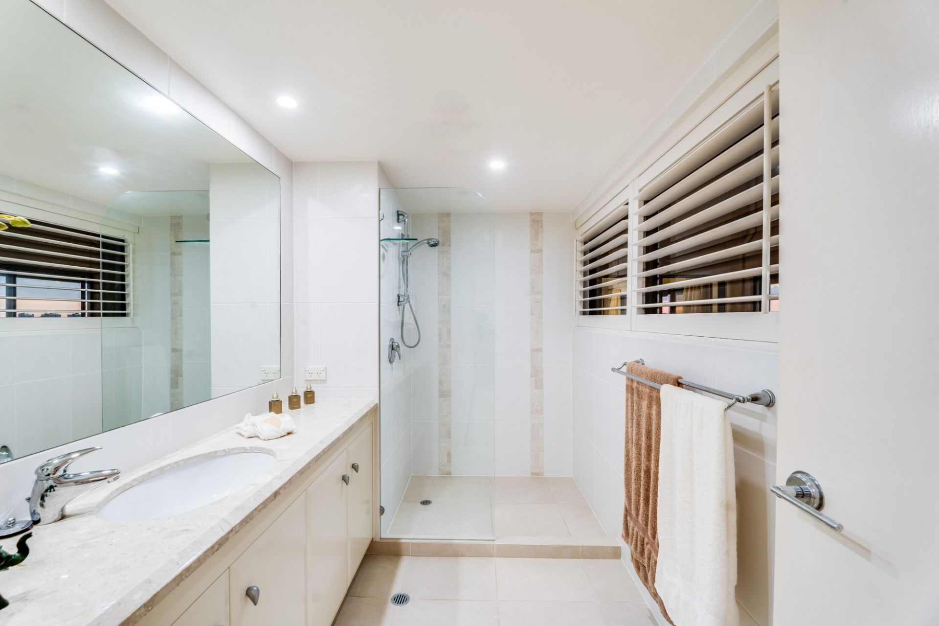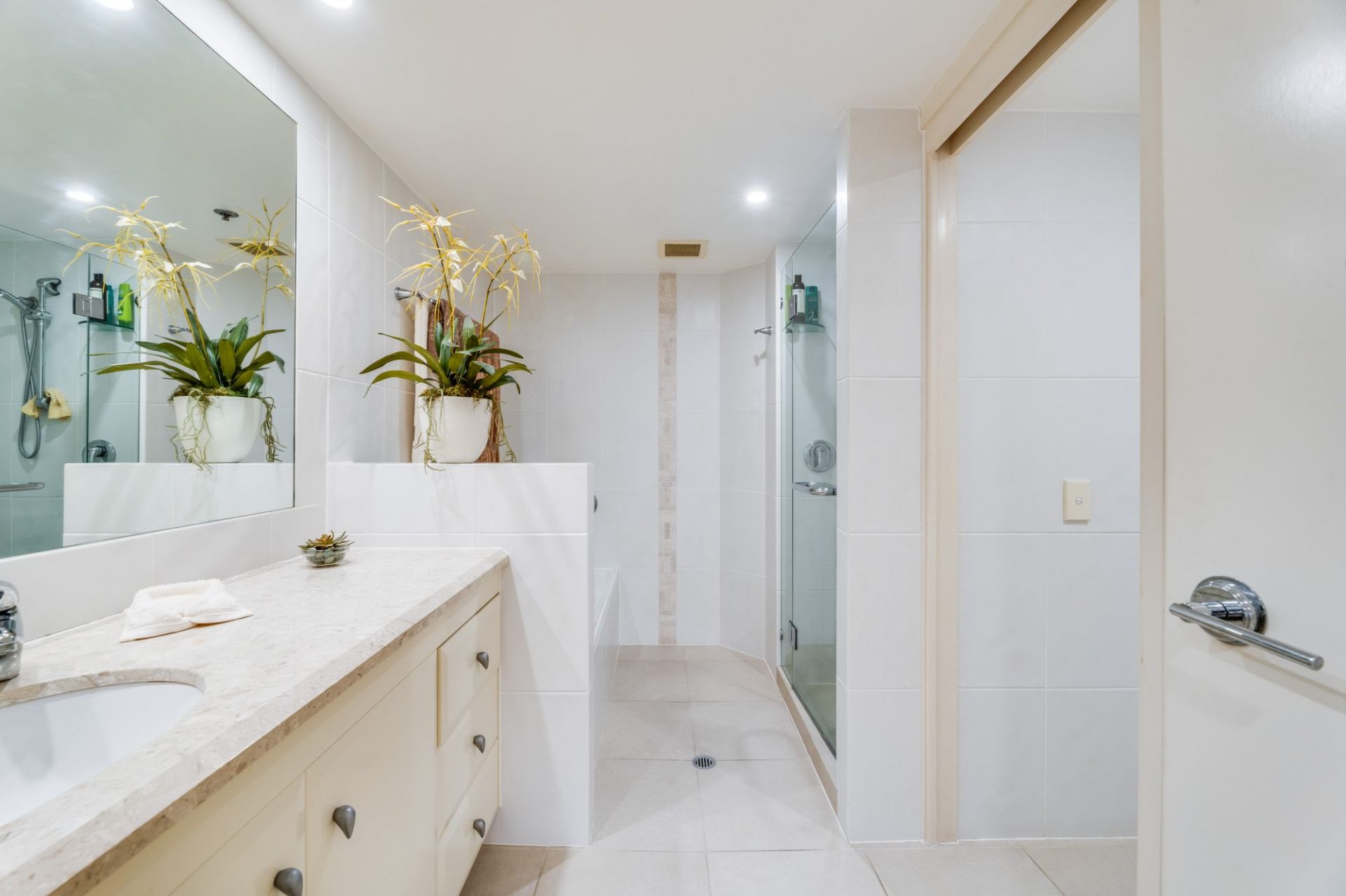 • Two additional bedrooms serviced by a tasteful main bathroom with stone vanity and full-height tiling