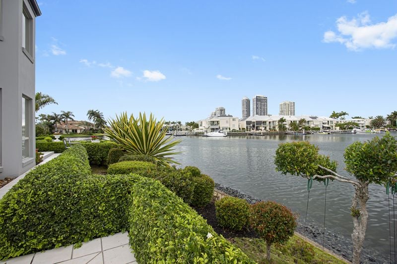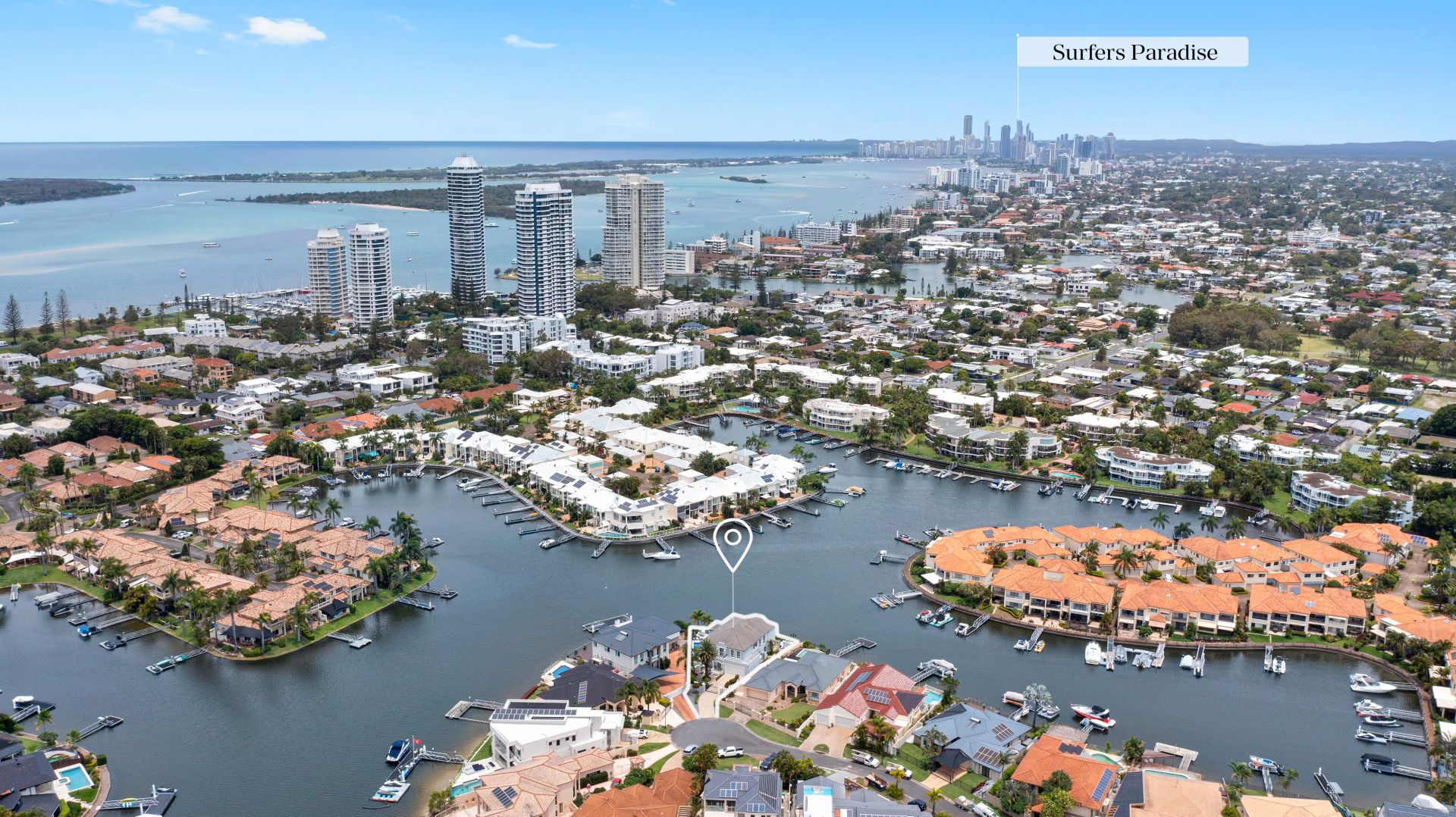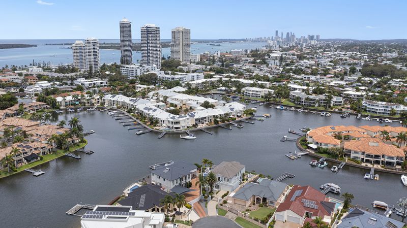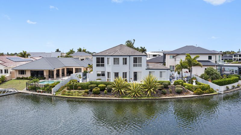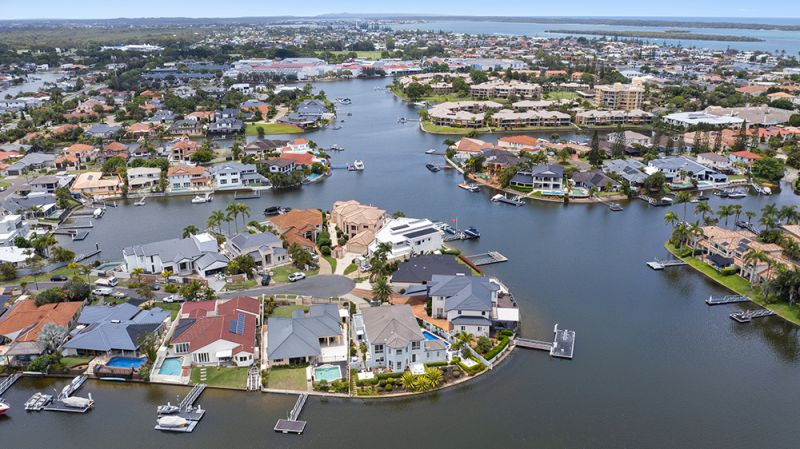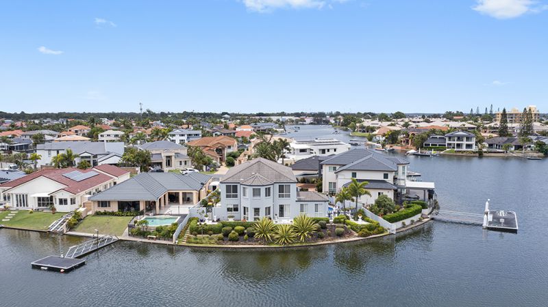 A wonderful location in a quiet cul de sac on a point position with 32 metres* of wide waterfrontage and only 1 bridge away from the boating paradise of the Broadwater.