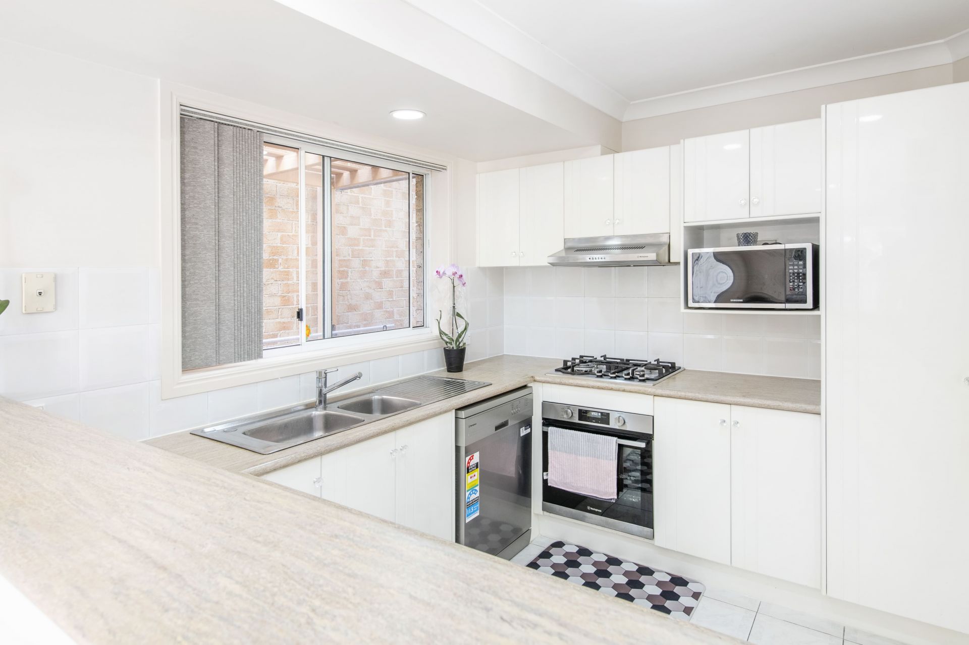 - Contemporary kitchen – Gas cooking, modern appliances, ample storage & benchtop space