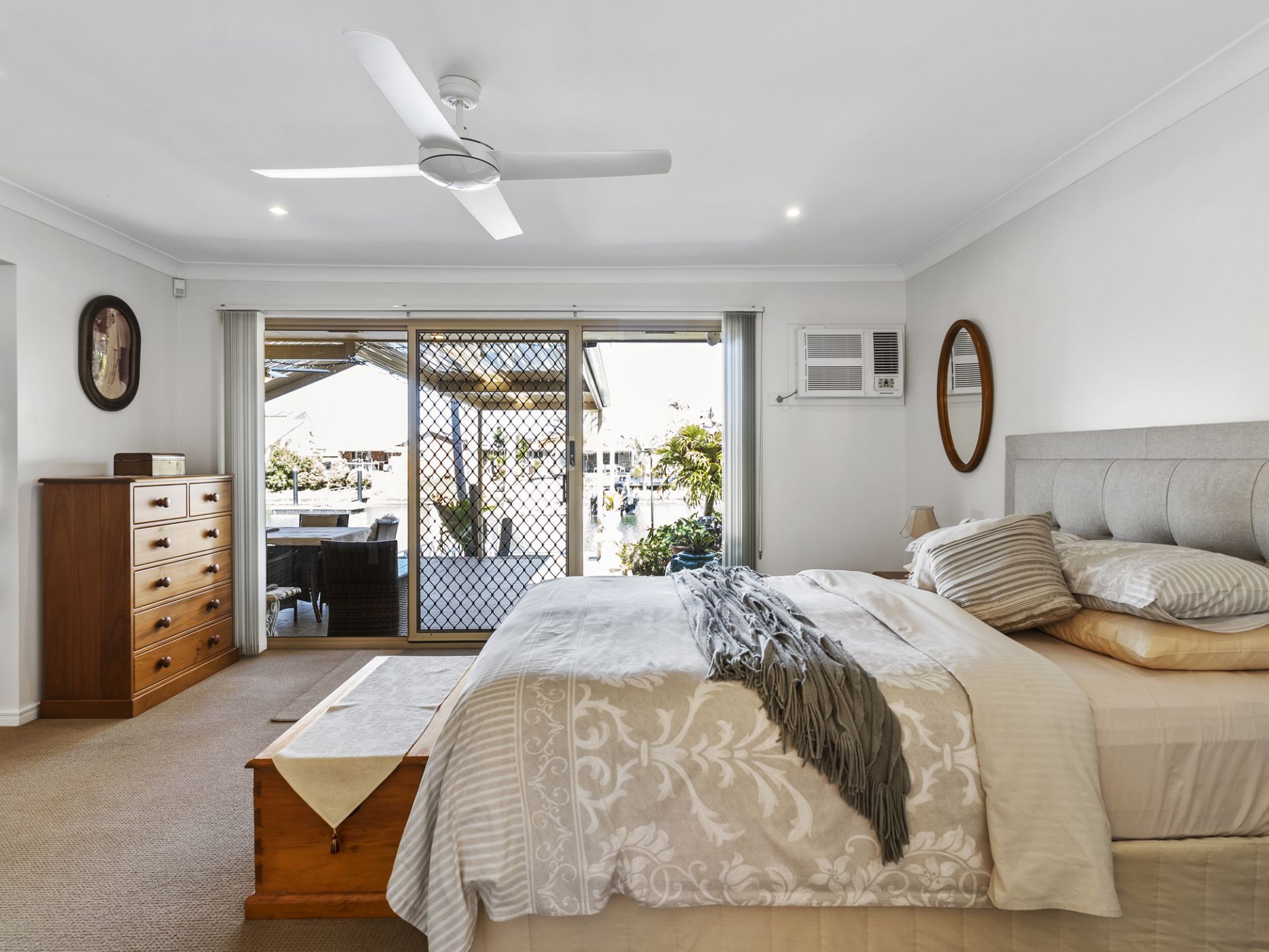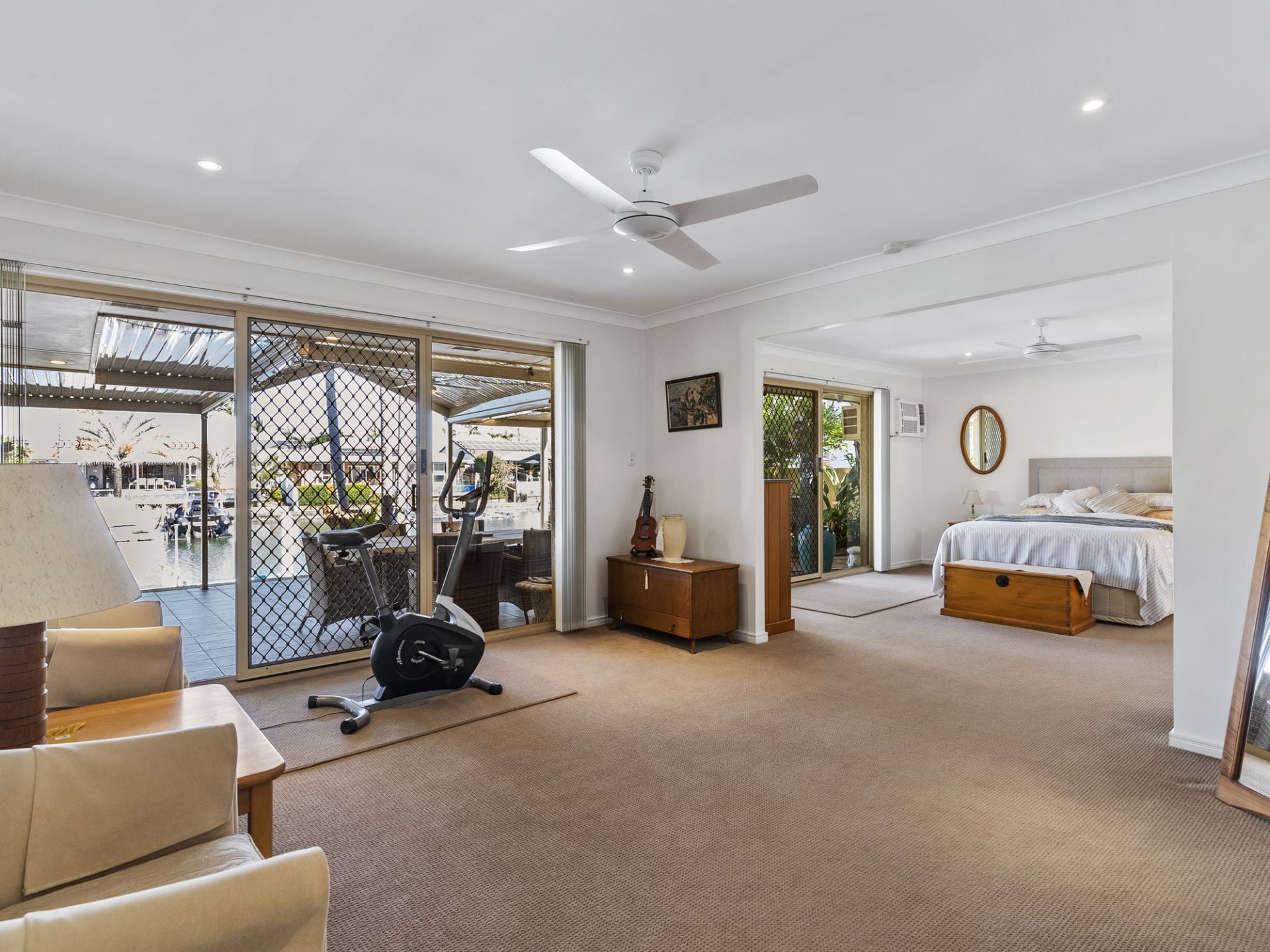 From the moment you step inside, you're greeted by generous proportions and thoughtfully designed spaces that celebrate natural light offering indoor living areas merging to outdoor entertaining waterfront or poolside. With four spacious bedrooms, this home comfortably accommodates families or guests, with the highlight being the master suite-a true retreat for parents. Wake each morning to breathtaking water views and relax in your own private sanctuary, complete with a tranquil sitting area that flows directly to the waterfront.