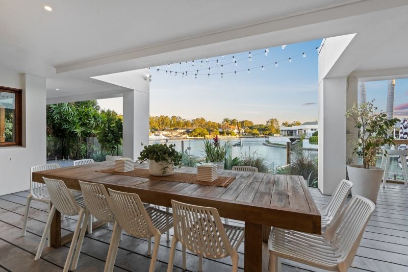 • Covered waterfront alfresco entertaining deck with wet bar and dual fridges