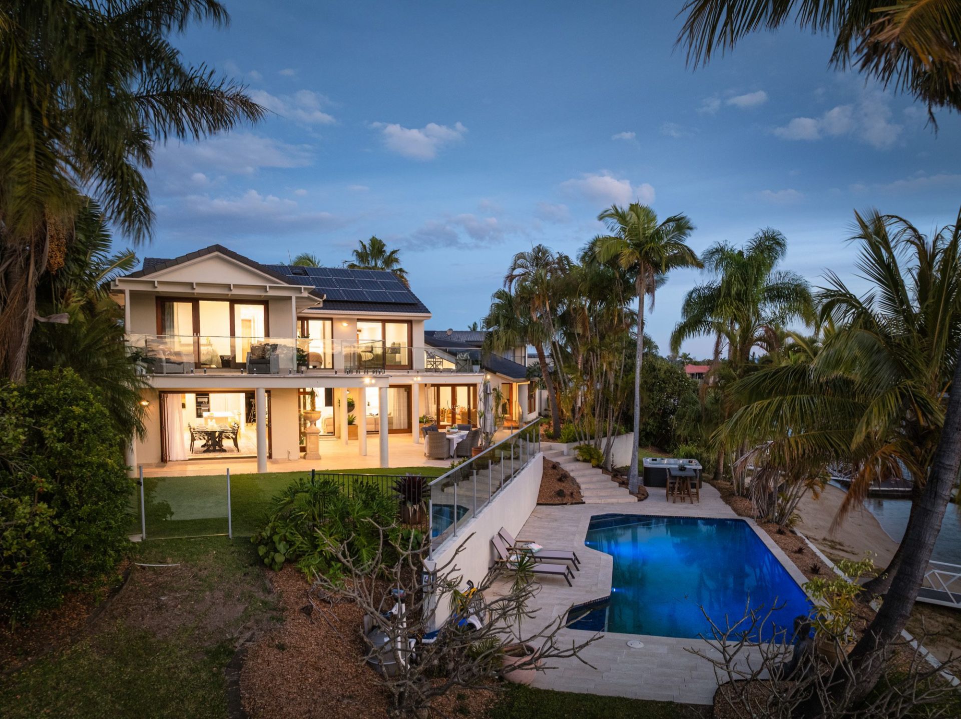 Set behind secure gates, you're welcomed into a light-filled sanctuary where every space connects visually to either tropical gardens or sparkling waterways. With recent, high-quality renovations completed throughout, the home presents as new, combining timeless style with smart modern conveniences across two beautifully curated levels.