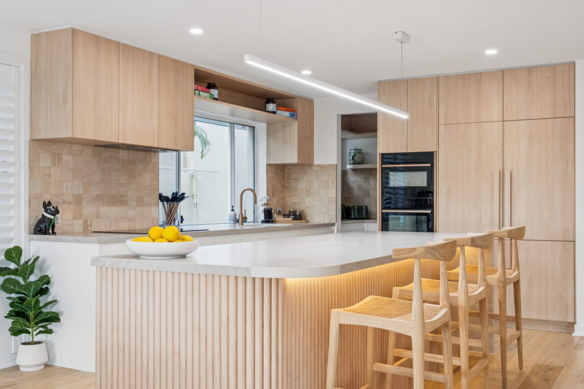 • 3-metre Taj Mahal quartzite island with copper fleck – perfect for family meals and hosting
