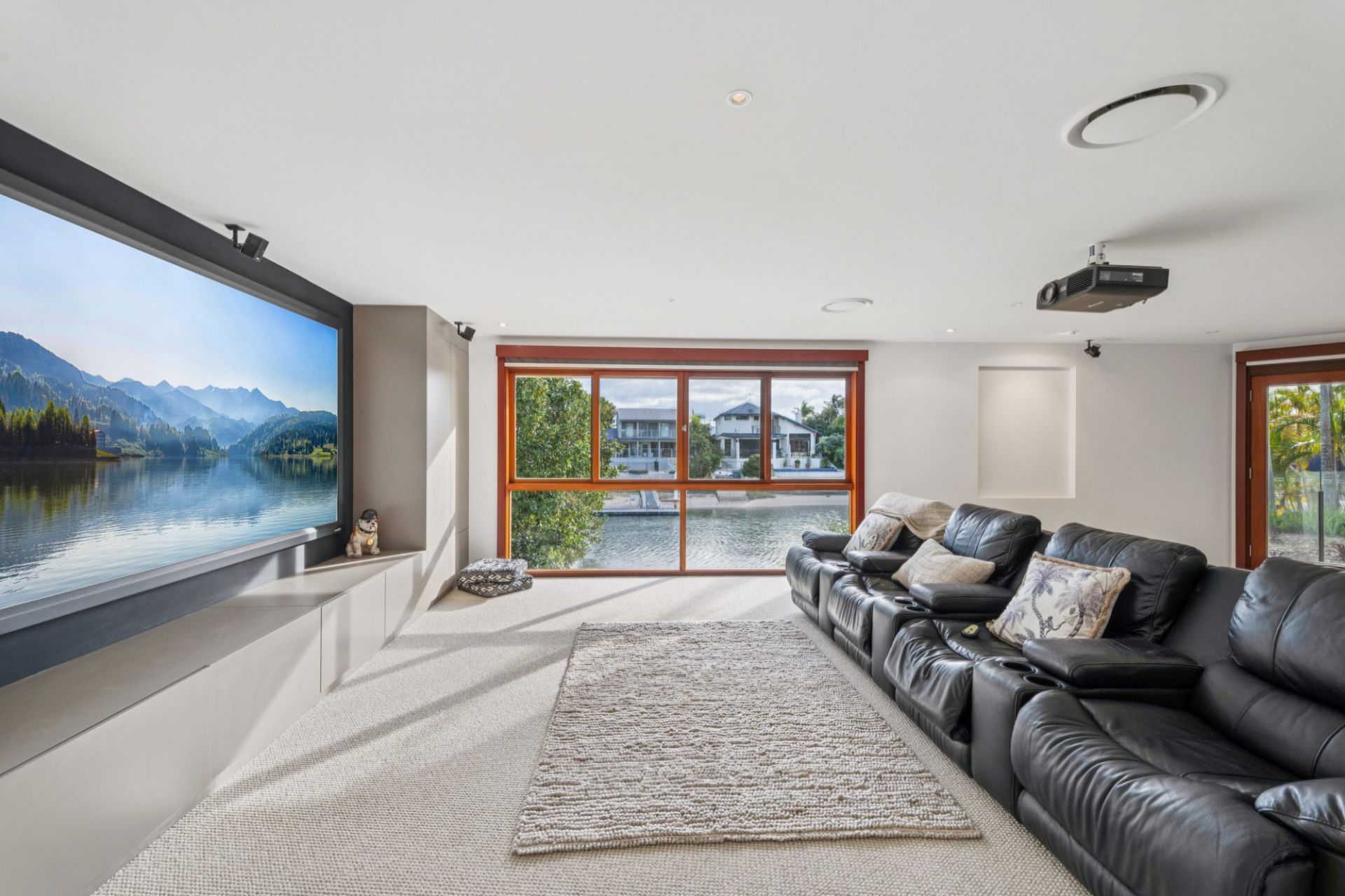 • Entertainment/media room with Panasonic projector, Hisense bar fridges, and full surround sound