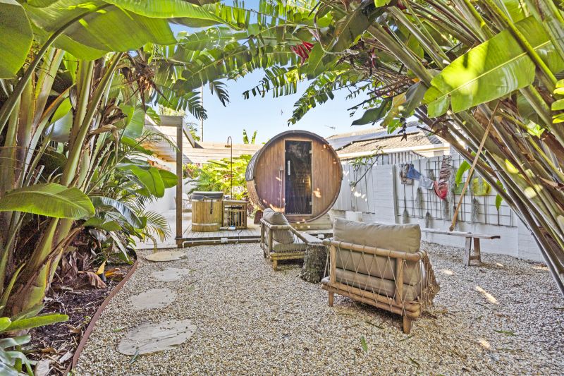 Outdoors, the property transforms into a private wellness retreat. Here, leisure and rejuvenation sit at the heart of the design: cool off in the sparkling pool, recover in the outdoor ice bath, unwind in the infrared sauna, or host gatherings across multiple shaded entertaining pavilions. A built-in BBQ kitchen ensures these alfresco areas feel both luxurious and functional, perfectly suited to both intimate evenings and large-scale celebrations.