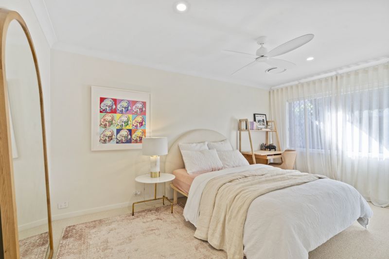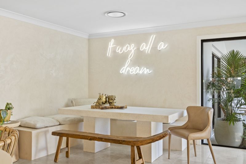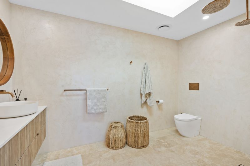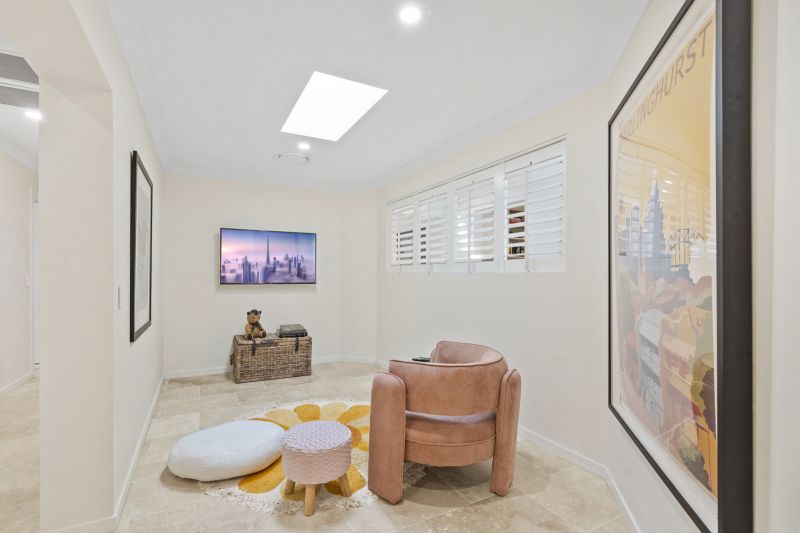 Beyond the master, the home features multiple living zones designed for separation, comfort, and connection. A fitted home office offers a dedicated space for productivity, while the media room provides an ideal setting for relaxation and entertainment. The bespoke wine display further enriches the home's sophistication, offering a stylish centrepiece for collectors and entertainers alike.