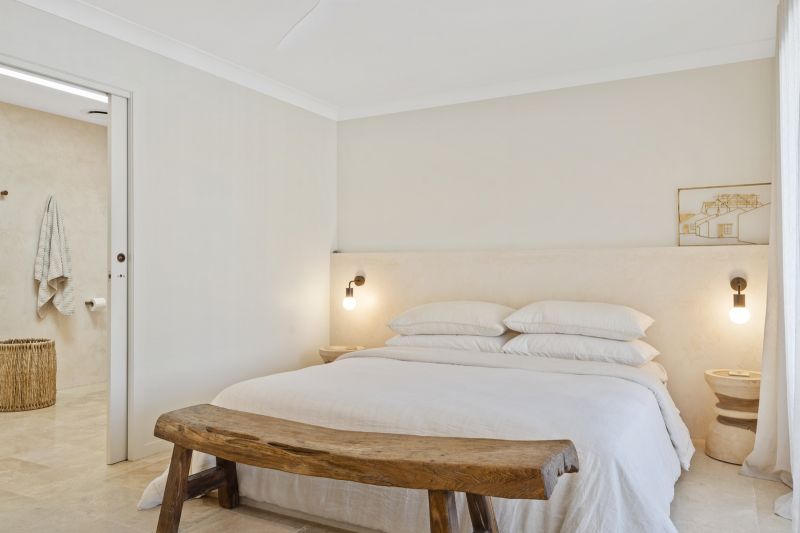 The master suite is a true sanctuary, thoughtfully positioned to embrace poolside serenity and skyline views. This private haven features a luxuriously appointed ensuite with dual rainfall shower, premium fixtures, and a custom dressing room that elevates the everyday routine. Direct access to the pool terrace enhances the sense of indulgence and retreat.