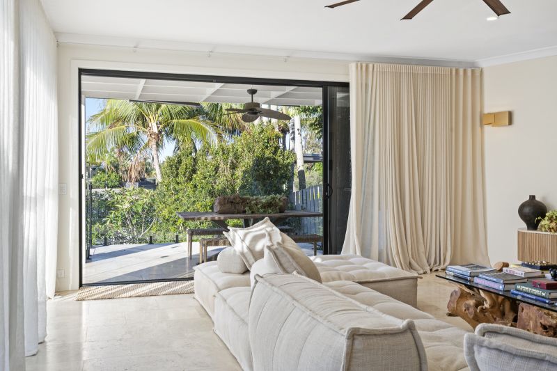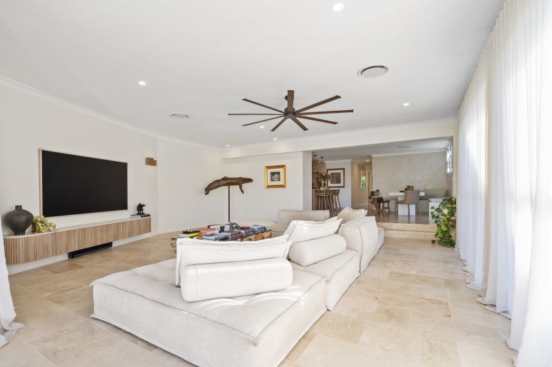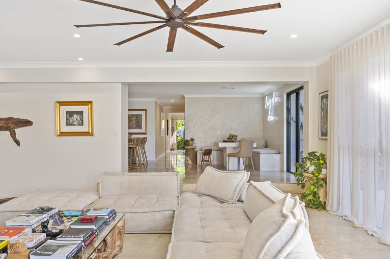 The main living domains are defined by abundant natural light and bespoke finishes that create an effortless connection between indoors and out. Every space has been carefully curated to capture uninterrupted wide-water and skyline vistas, ensuring the home remains visually connected to its breathtaking surroundings. Established tropical gardens envelope these zones in tranquil seclusion, contributing to an ambience that is both restorative and serene.