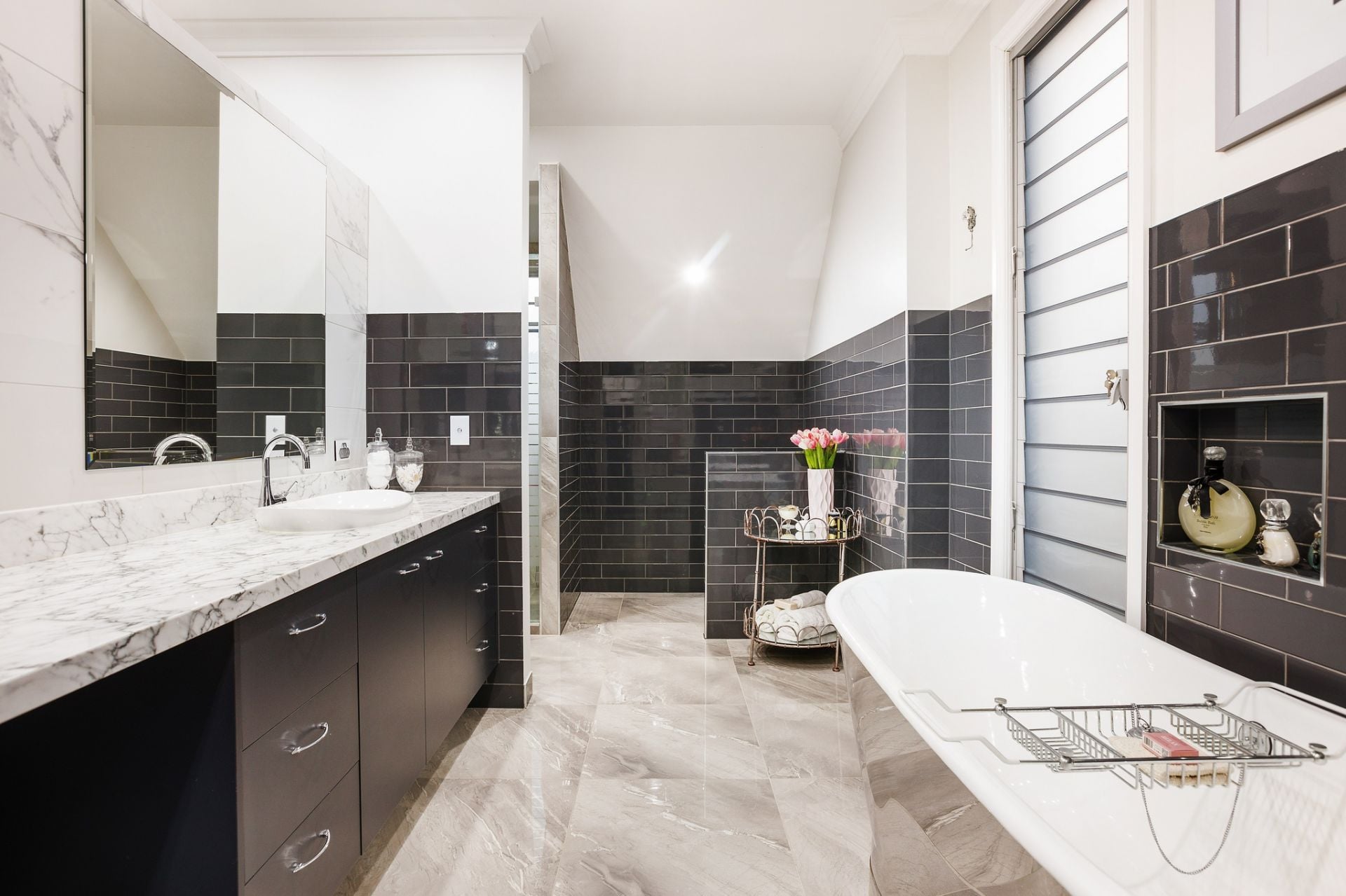 • Entire top-floor master retreat with wraparound balcony, dual walk-in robes (one with wet bar) and luxurious ensuite with freestanding bath, dual vanities and separate toilets