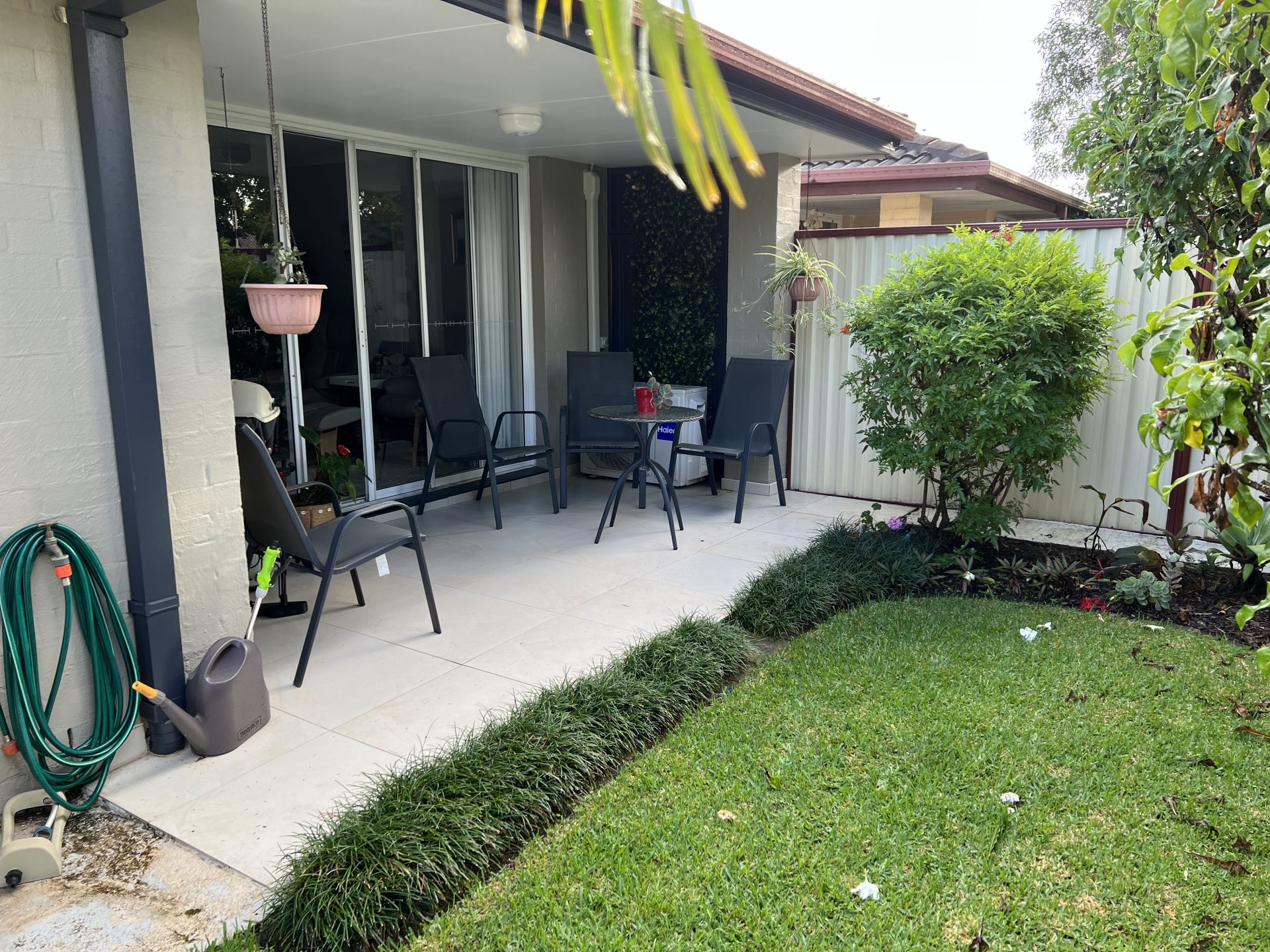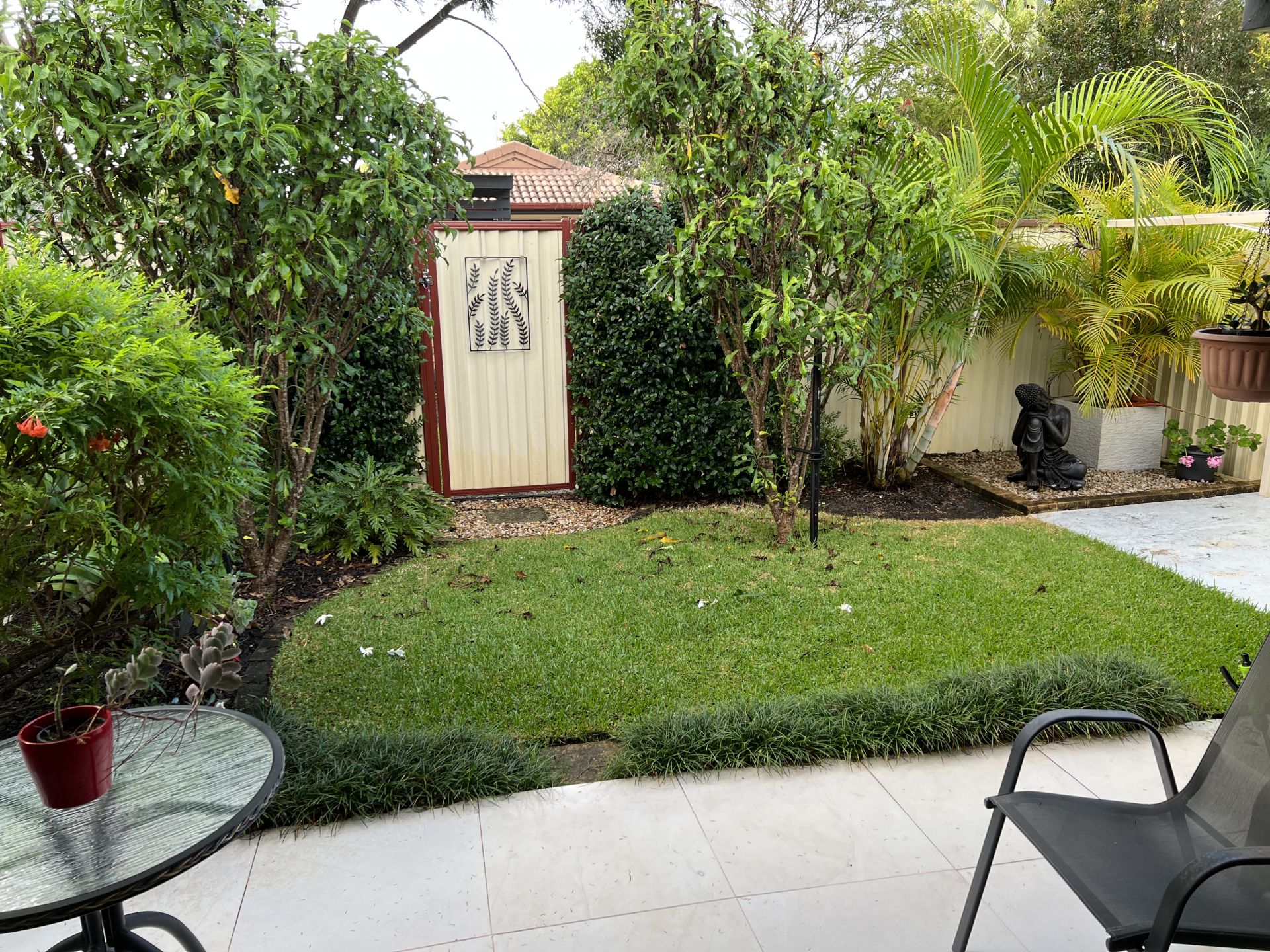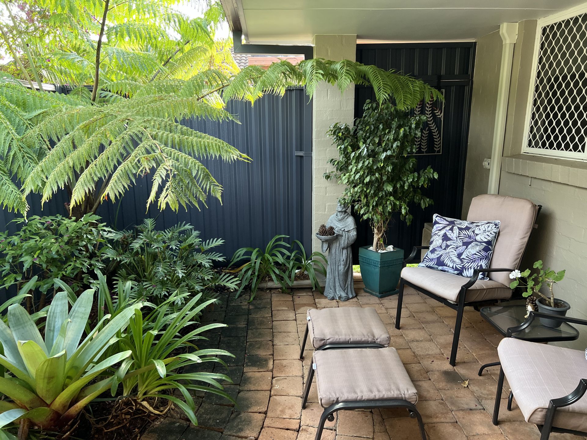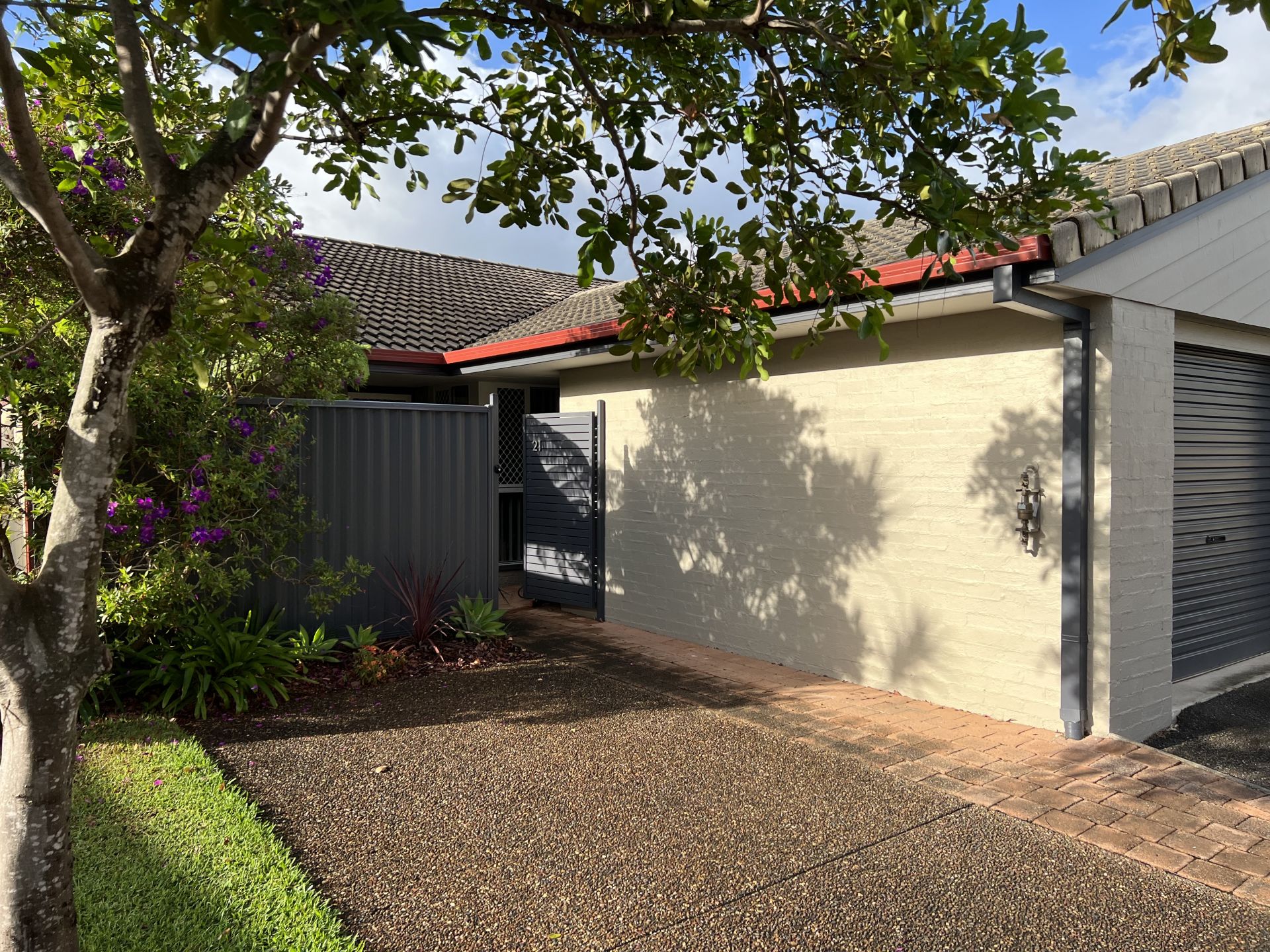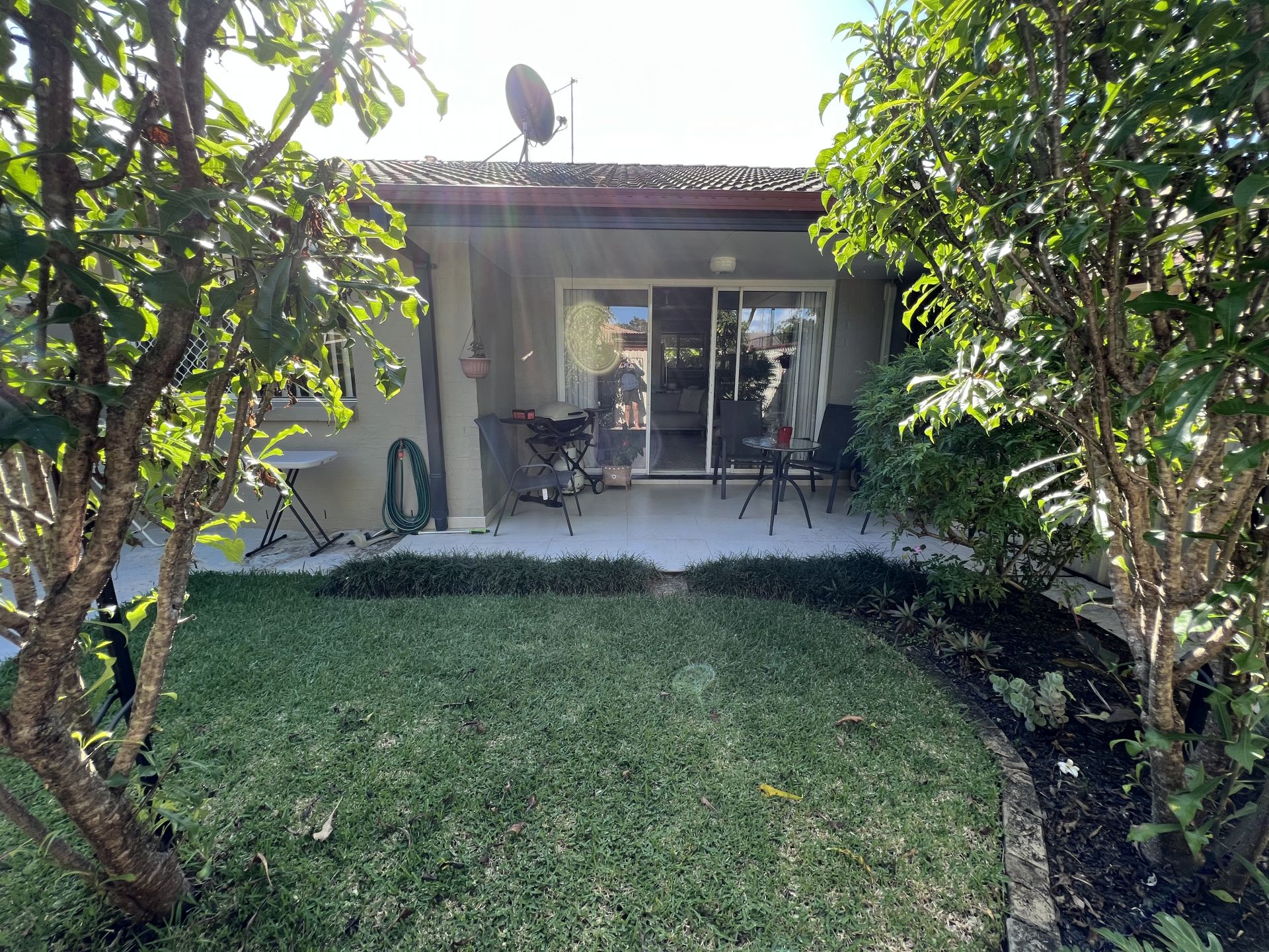 Outdoor entertaining area that is private and secure, with a gate that leads to the fabulous facilities including an in-ground pool, full-sized tennis court and BBQ area.