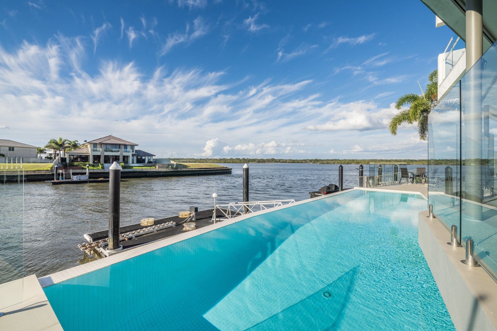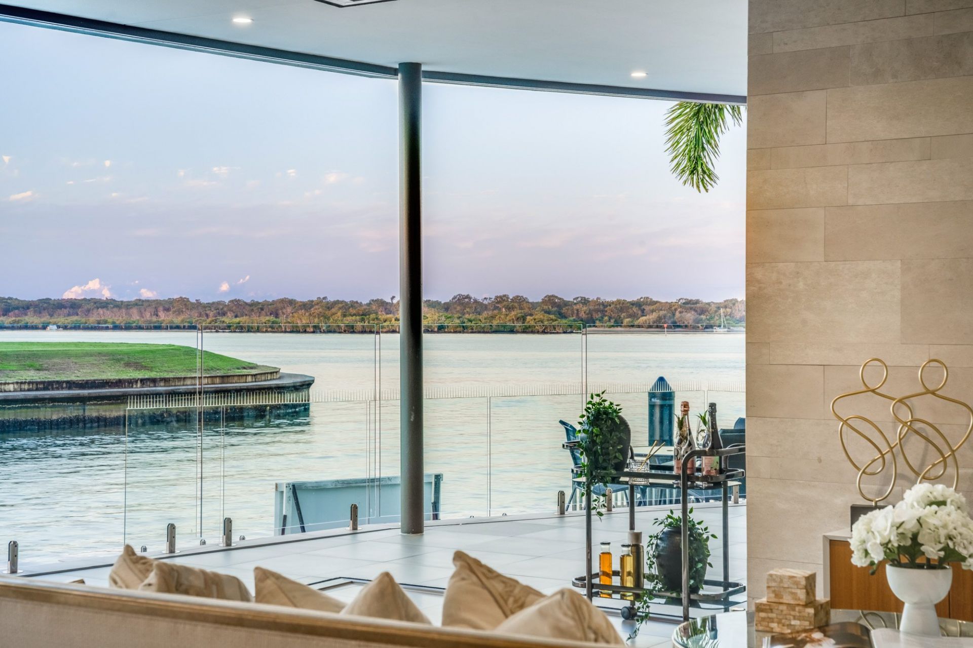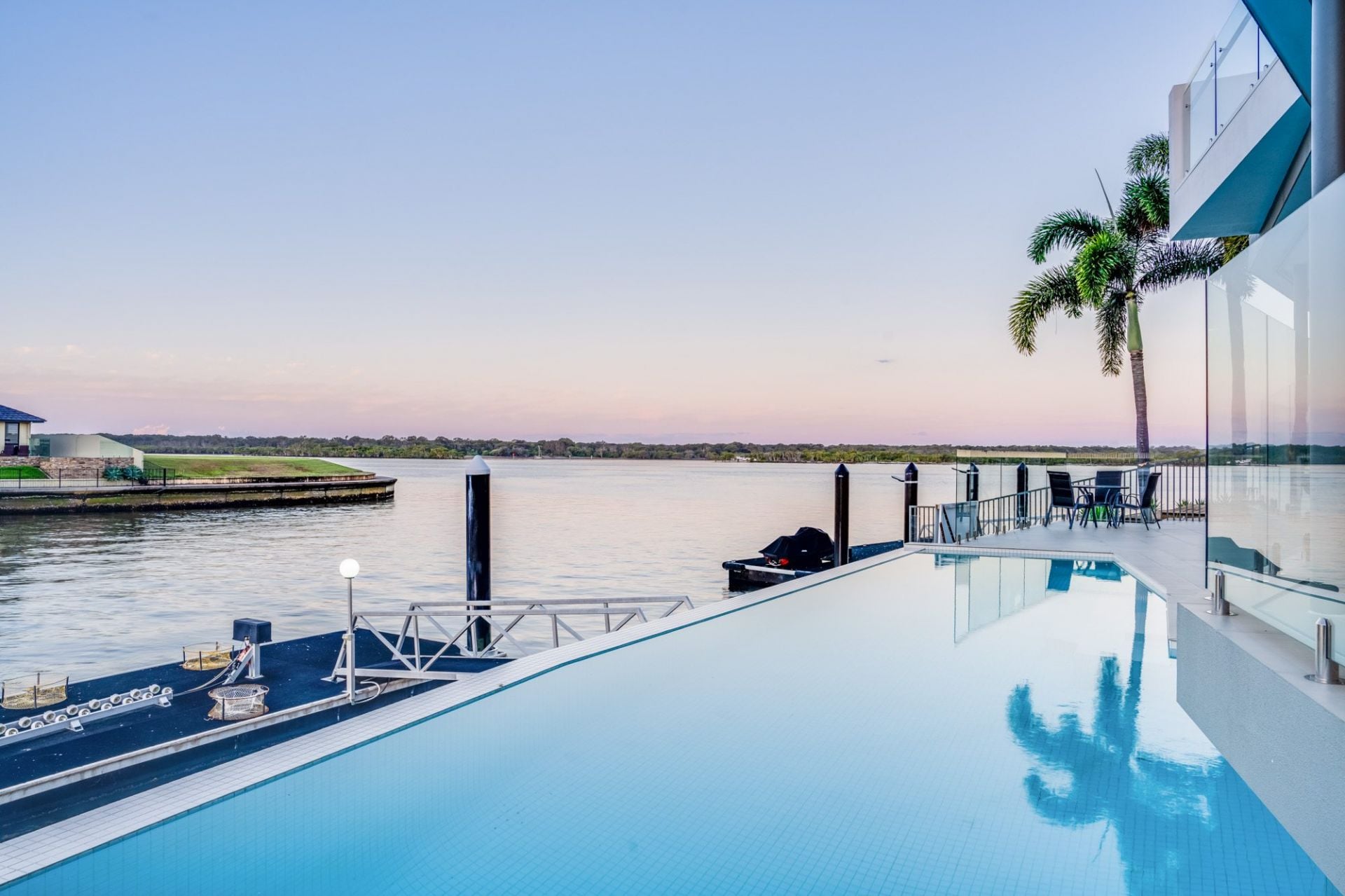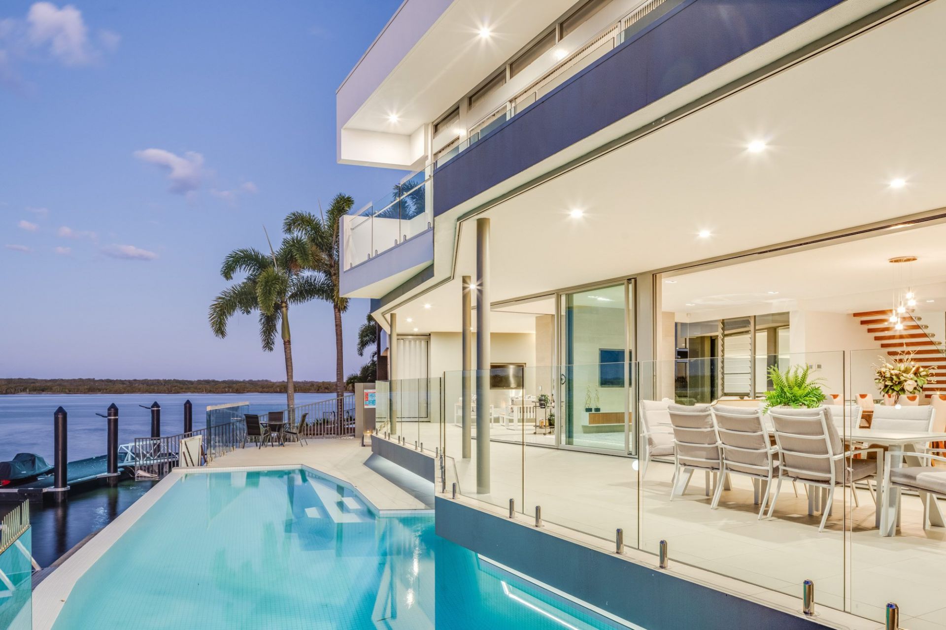 Expertly crafted to take full advantage of wide Broadwater views and finished to perfection, this contemporary residence reveals striking interiors offering a vast selection of indoor and outdoor living zones.