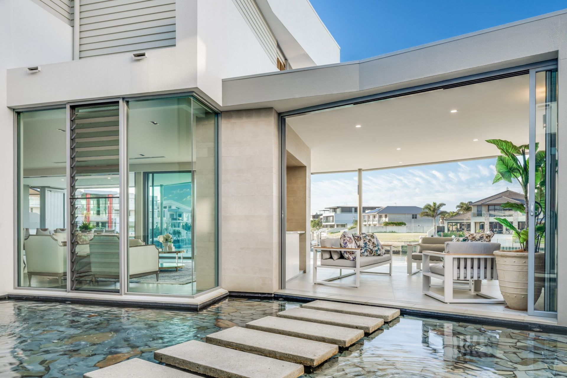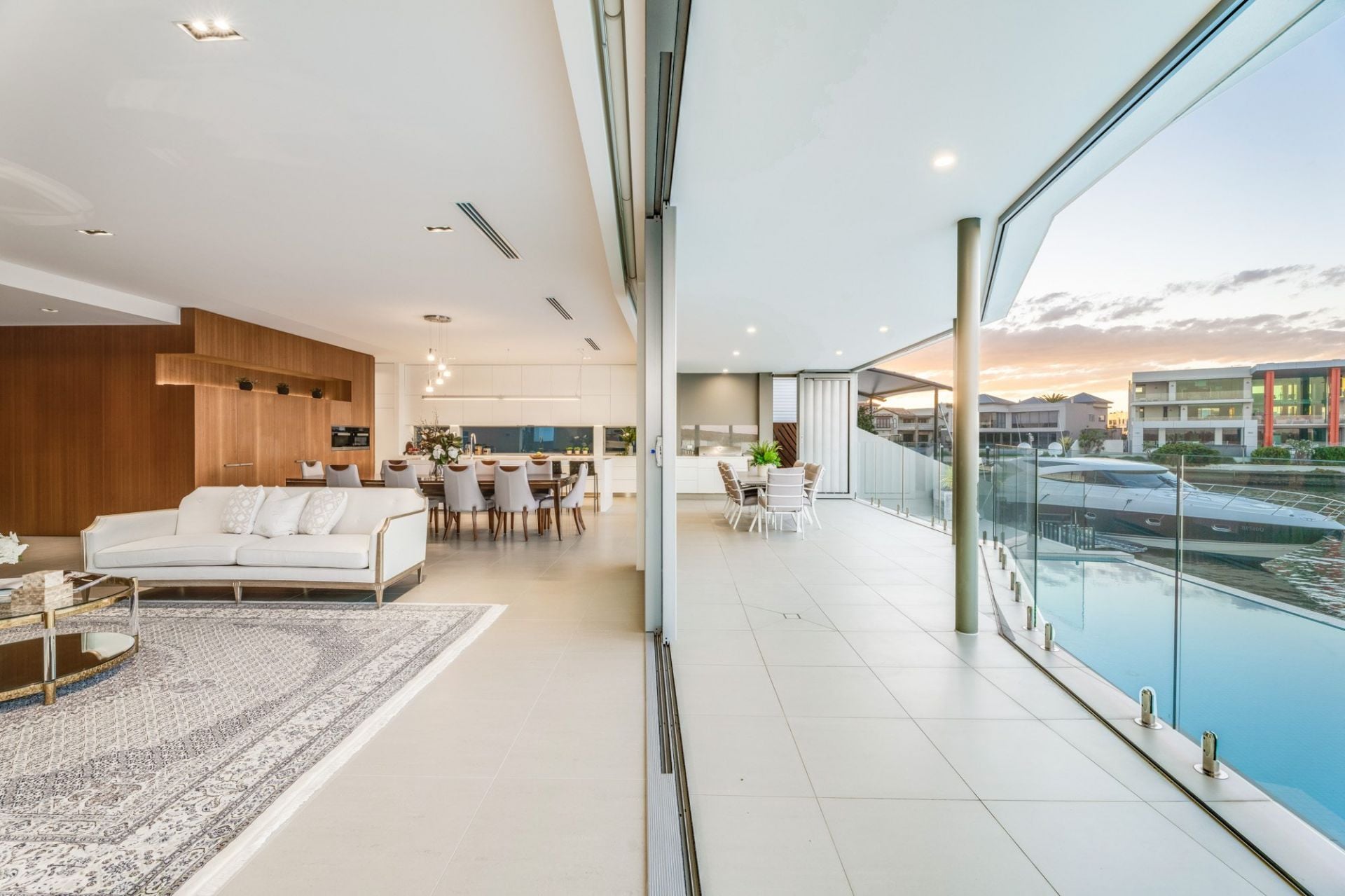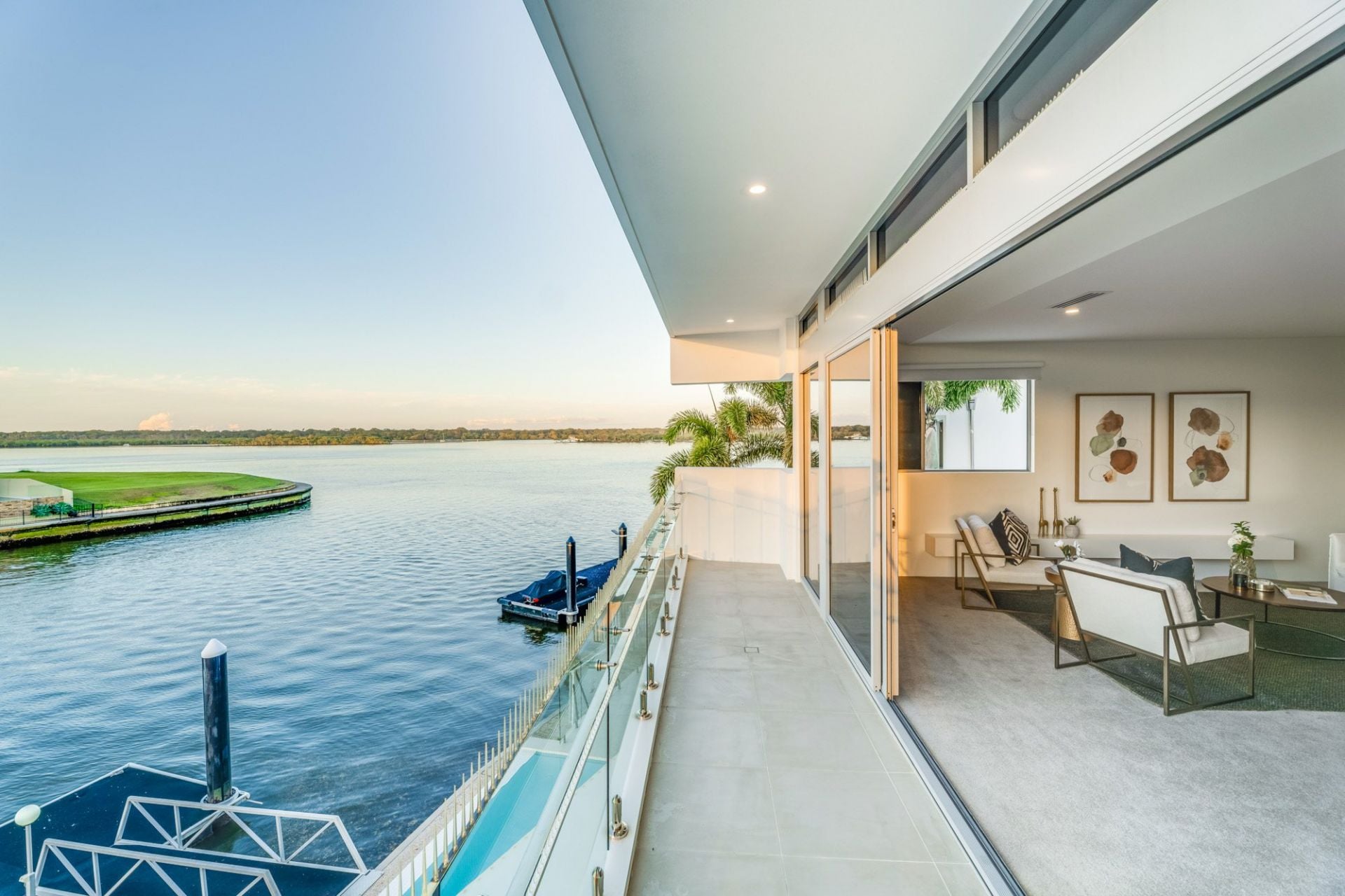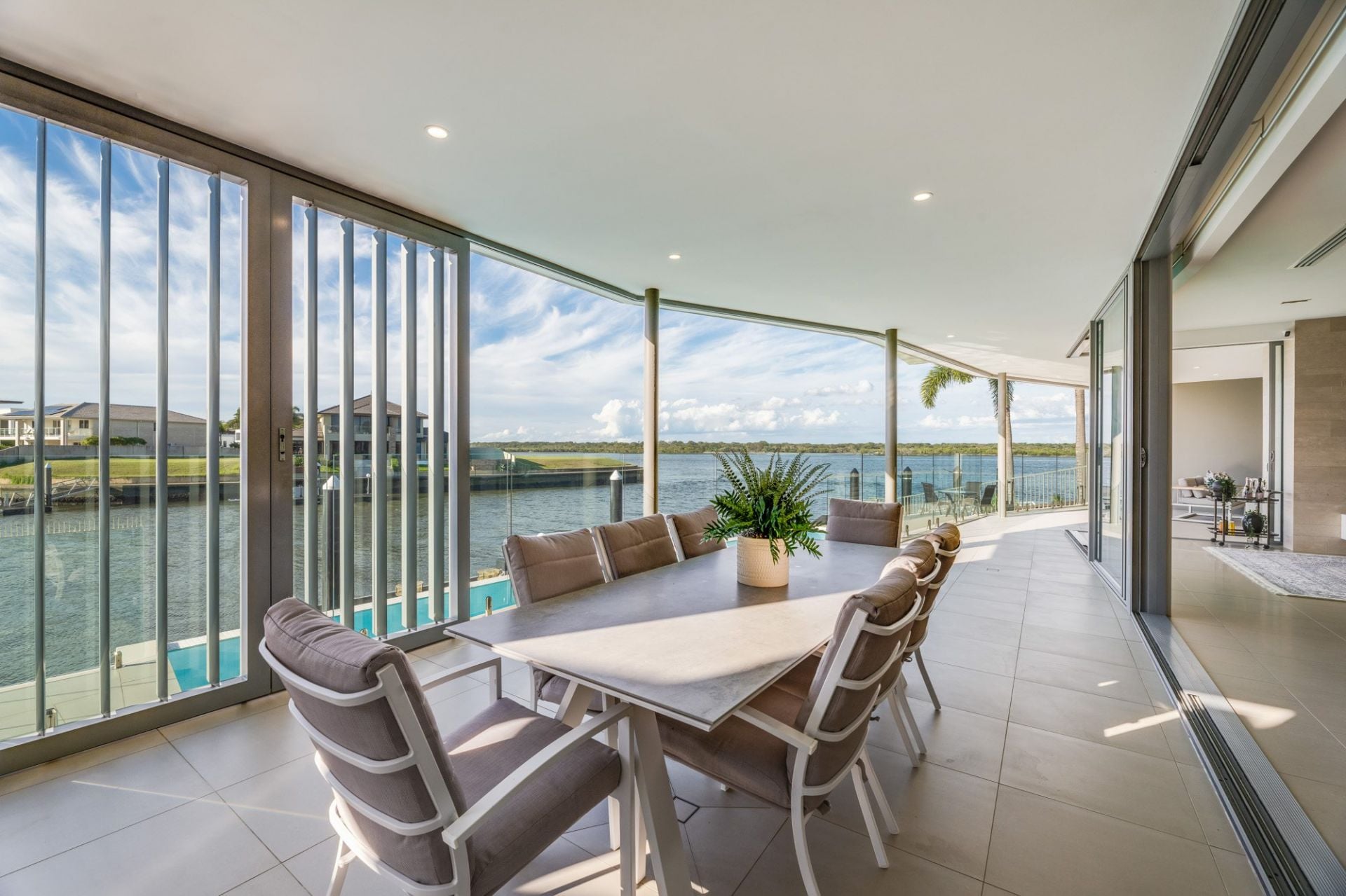 Expertly crafted to take full advantage of wide Broadwater views and finished to perfection, this contemporary residence reveals striking interiors offering a vast selection of indoor and outdoor living zones.