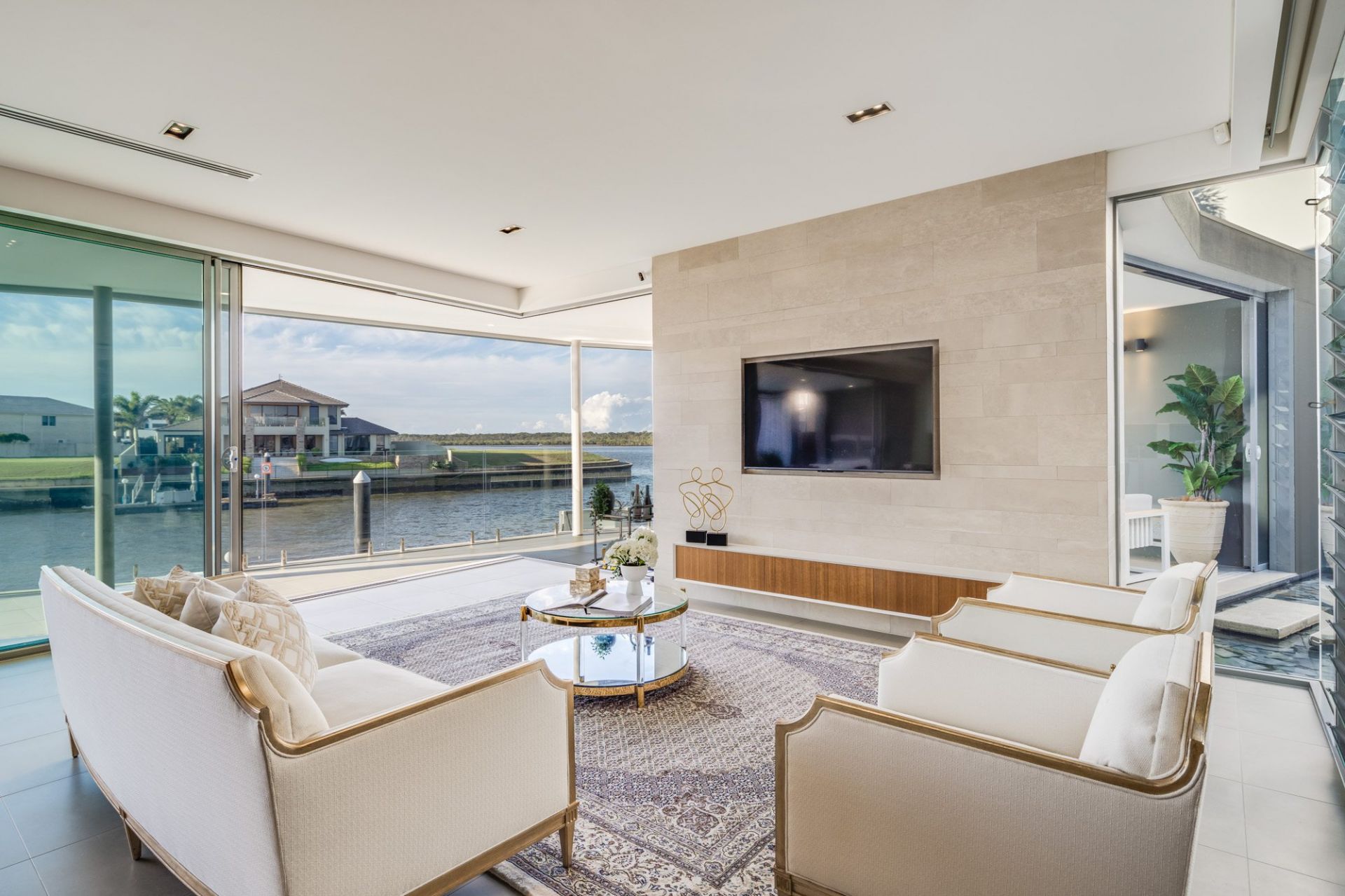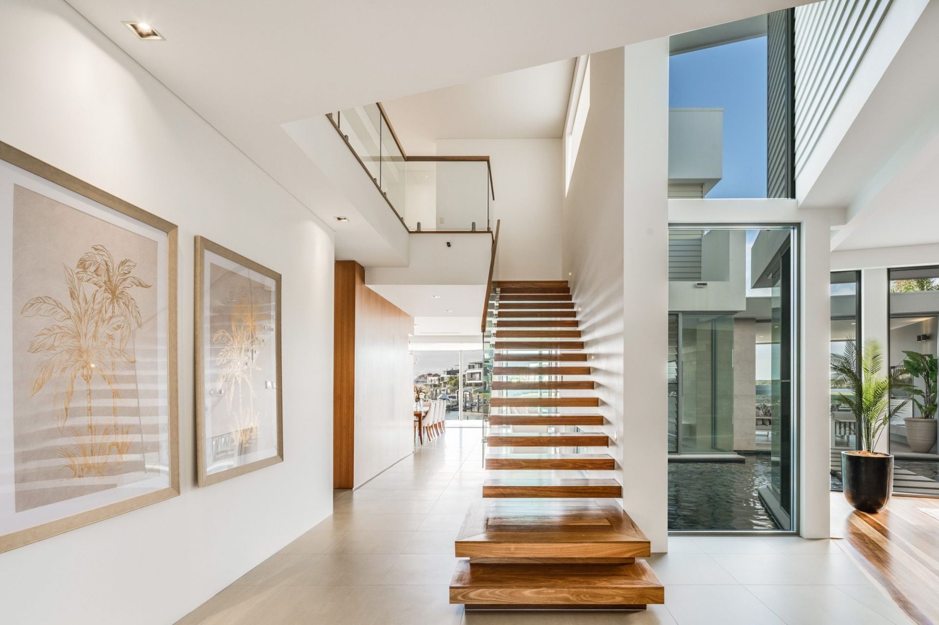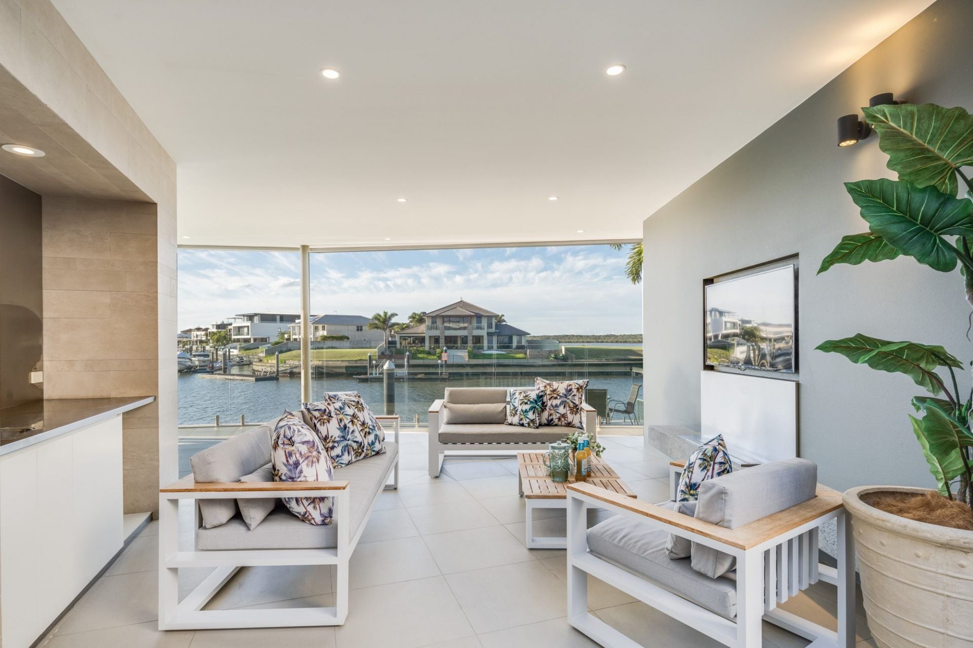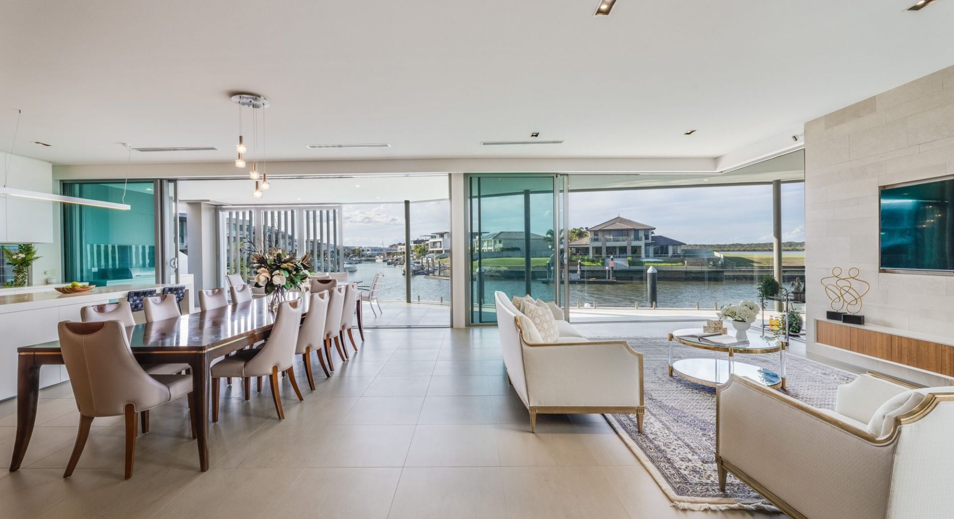Expertly crafted to take full advantage of wide Broadwater views and finished to perfection, this contemporary residence reveals striking interiors offering a vast selection of indoor and outdoor living zones.