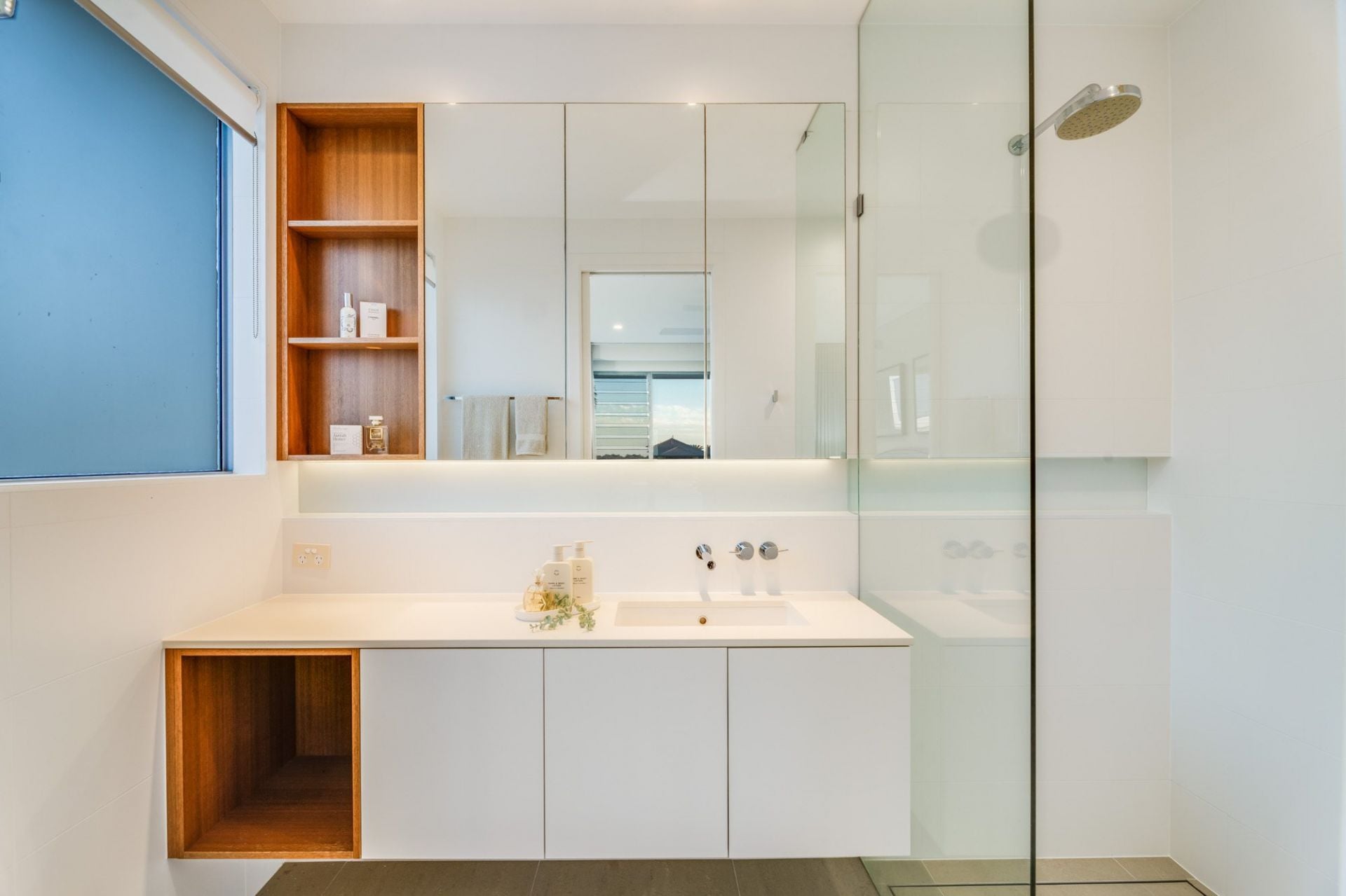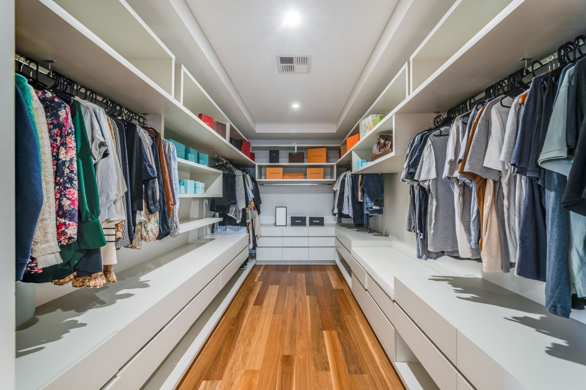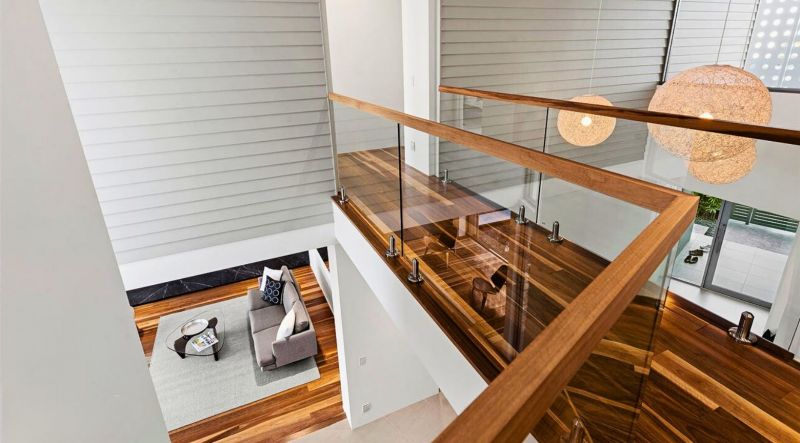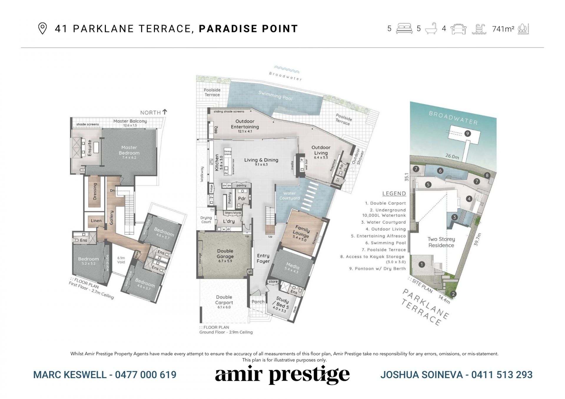 Accommodation comprises five bedrooms, four of which are on the upper level and are appointed with ensuites. The deluxe master features his/her resort style walk-in dressing room, luxurious full ensuite, free-standing bath, double shower, while opening to the north facing sunbathed balcony with stunning views including the spectacular wide water vistas. Providing tranquility and privacy. The en-suited guest bedroom is positioned for privacy to the front of the home.