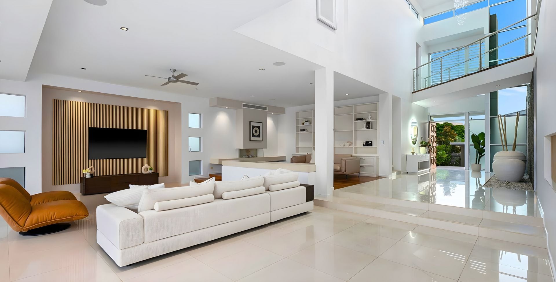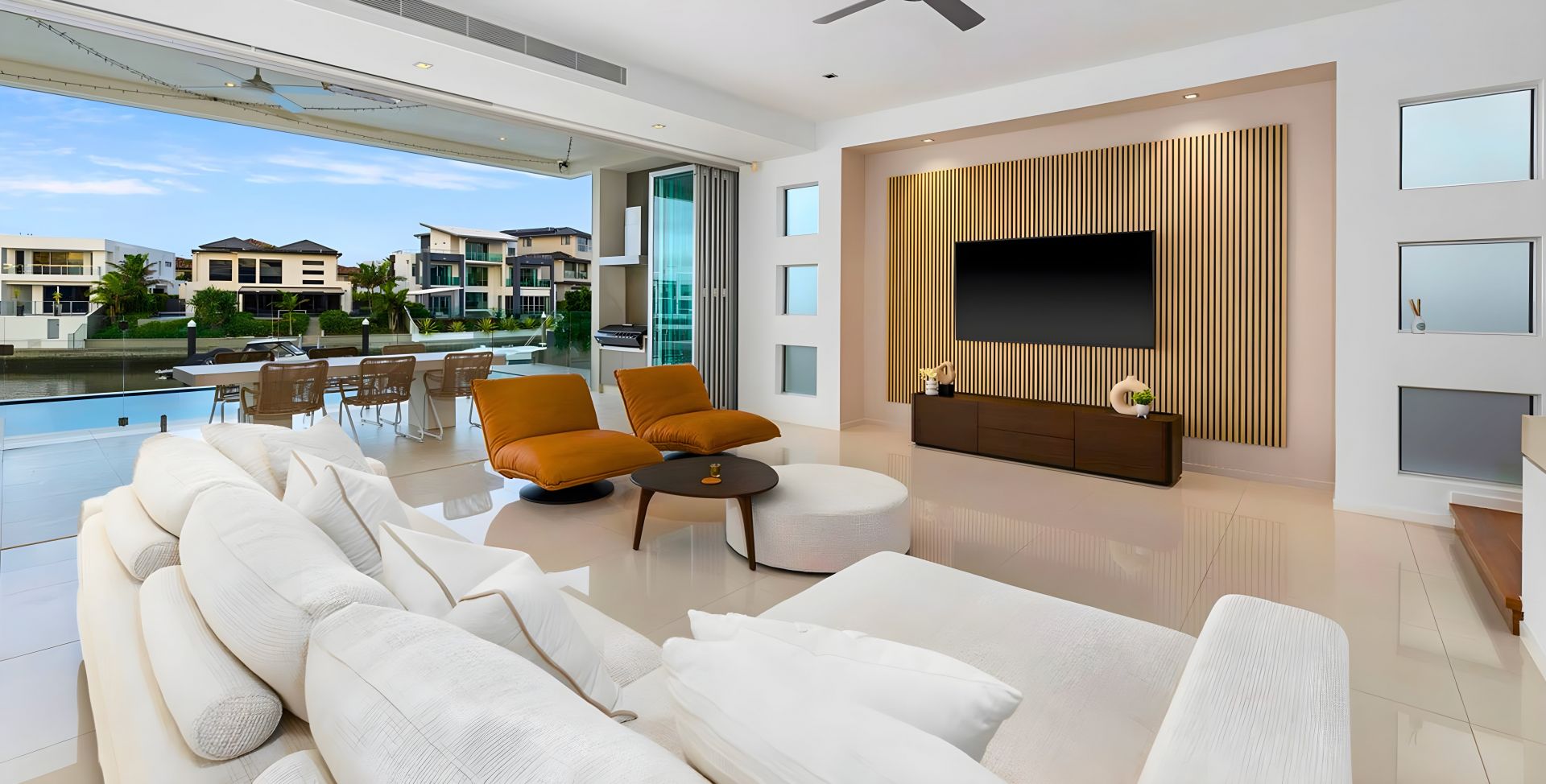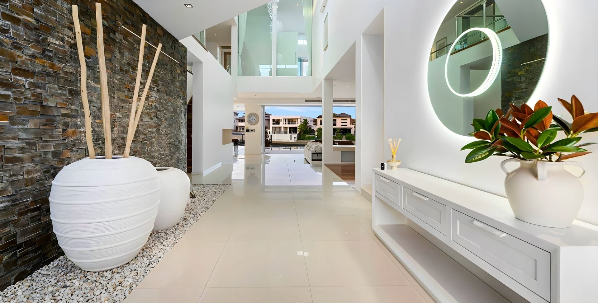 From the moment you step into the grand foyer, you're met with an awe-inspiring 7.6m ceiling and a stunning stone-clad cascading water feature, setting the tone for elegant waterfront living. Designed to maximize natural light and water views, this home boasts multiple living areas, a gourmet kitchen with premium Miele appliances, and seamless integration between indoor and outdoor spaces.