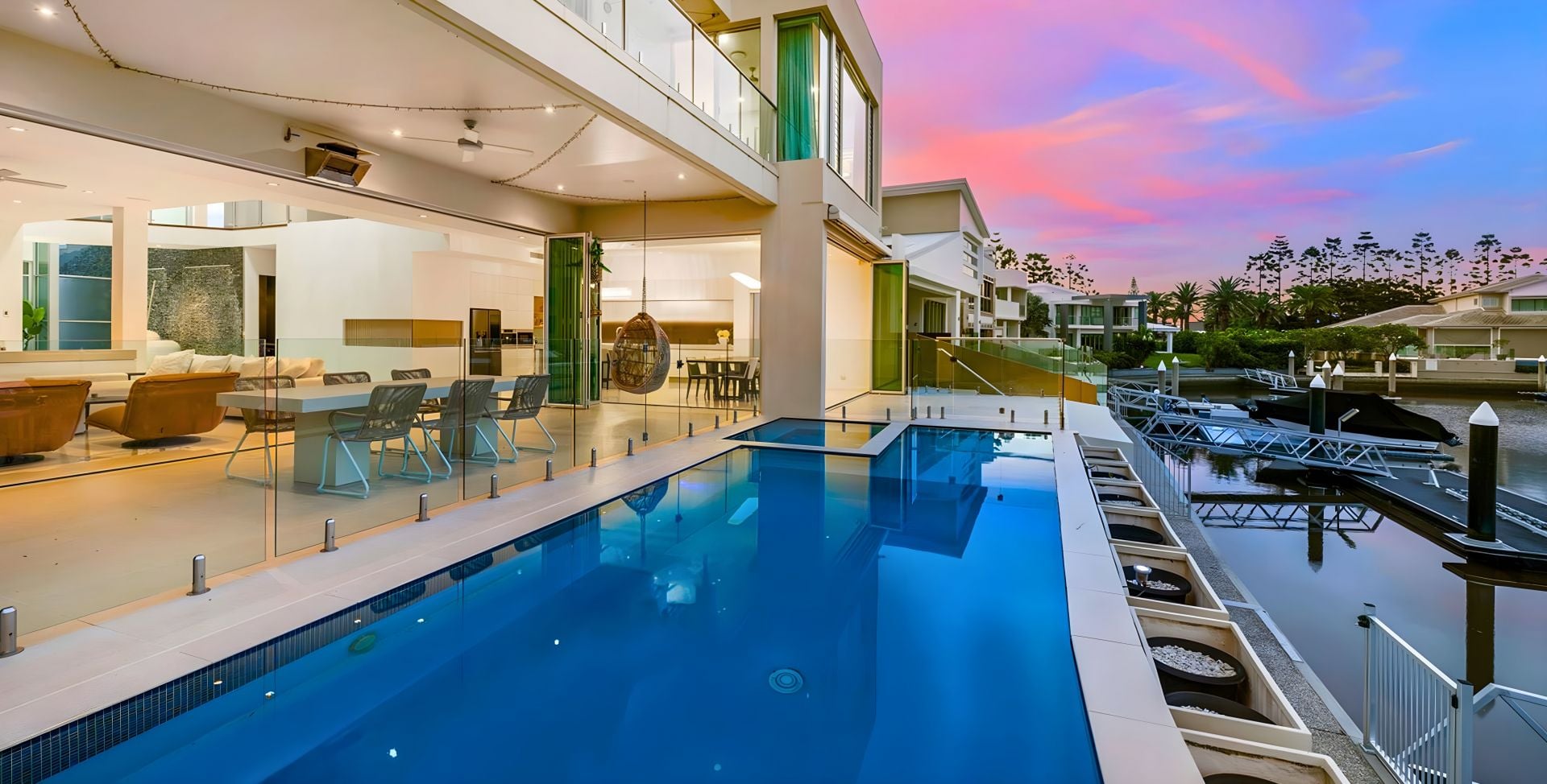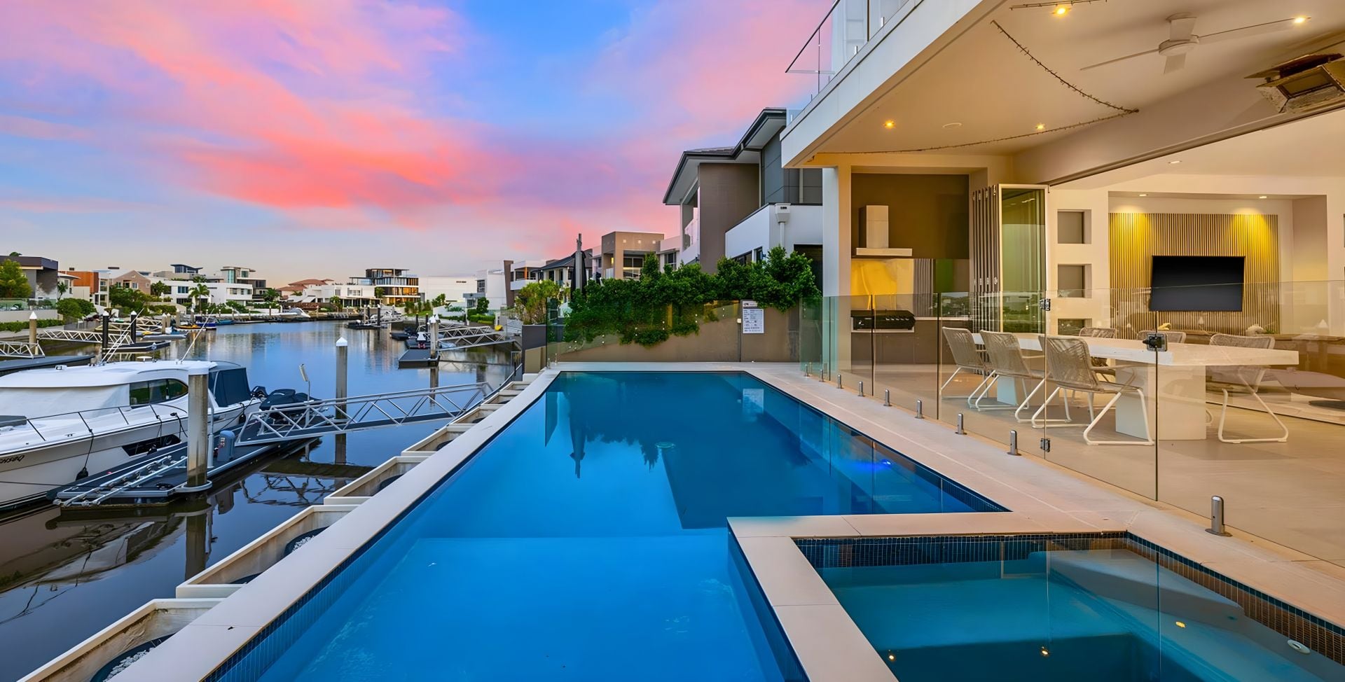 • Sheltered pontoon on 17.5m of private water frontage, providing easy Broadwater access