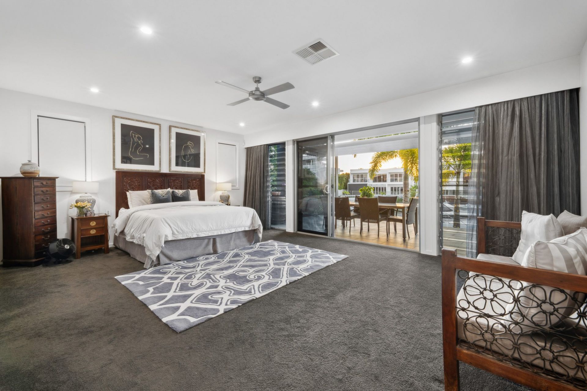 - Second master bedroom with private balcony, ensuite, walk-in robe, and water views