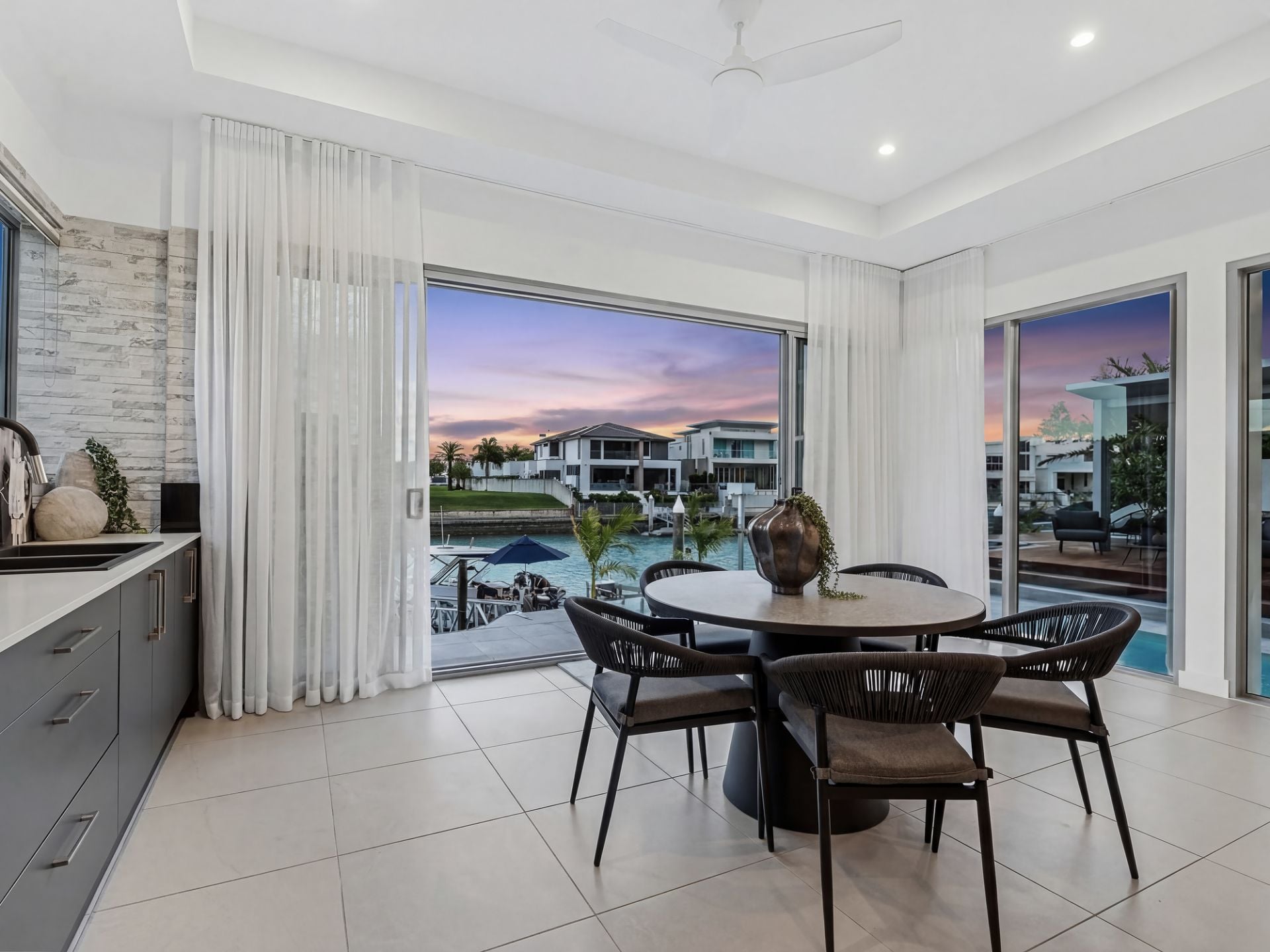 Bi-fold doors open to a substantial covered alfresco terrace overlooking the sparkling pool and heated spa, flowing effortlessly to your private jetty. An optional near-new boat and jet ski are also available, allowing you to immediately embrace the coveted bridge-free boating lifestyle with the Broadwater, seaway access, and Tipplers Resort just moments away.