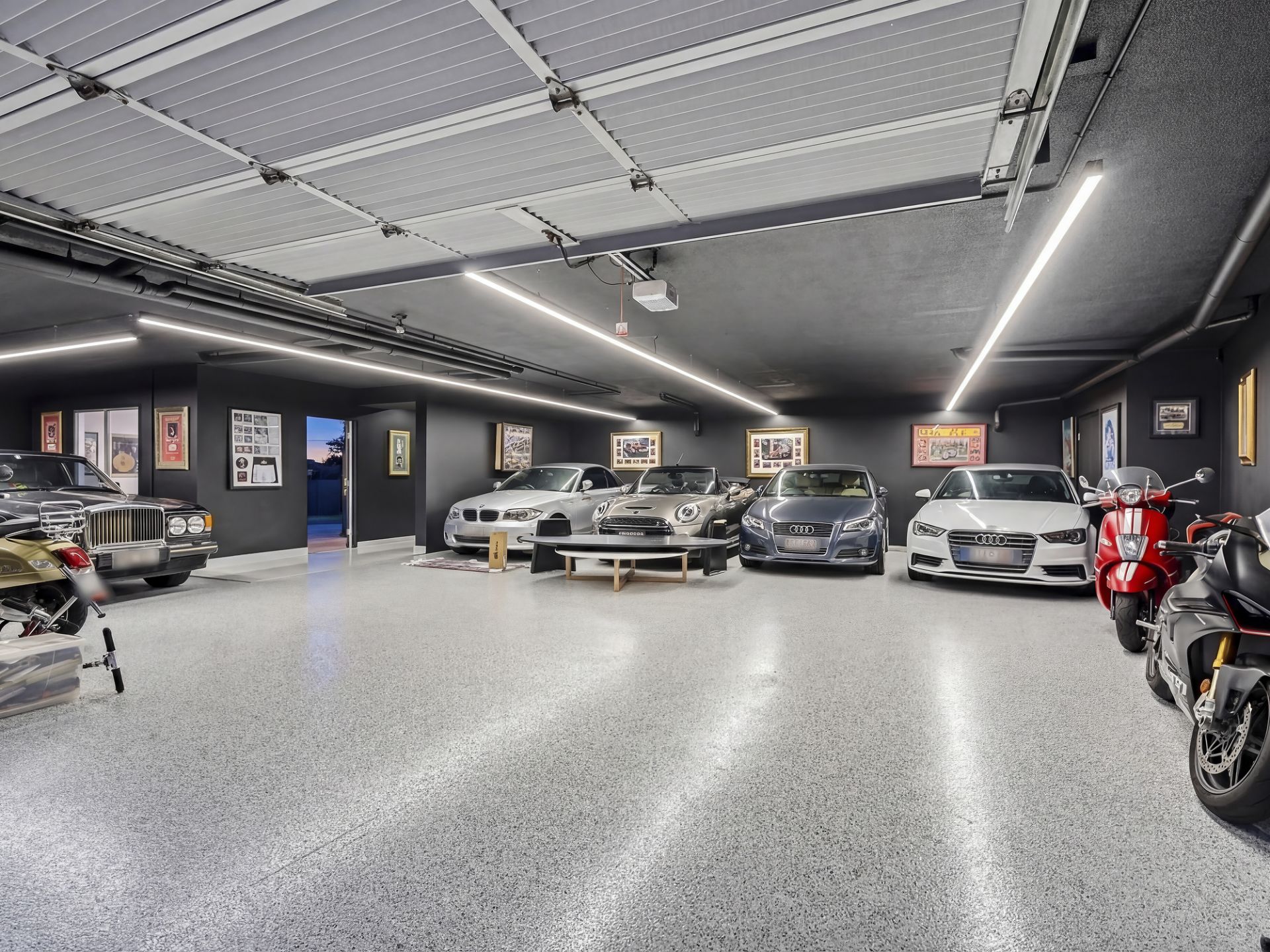 • Eight car basement garage with epoxy flooring and additional multipurpose room
