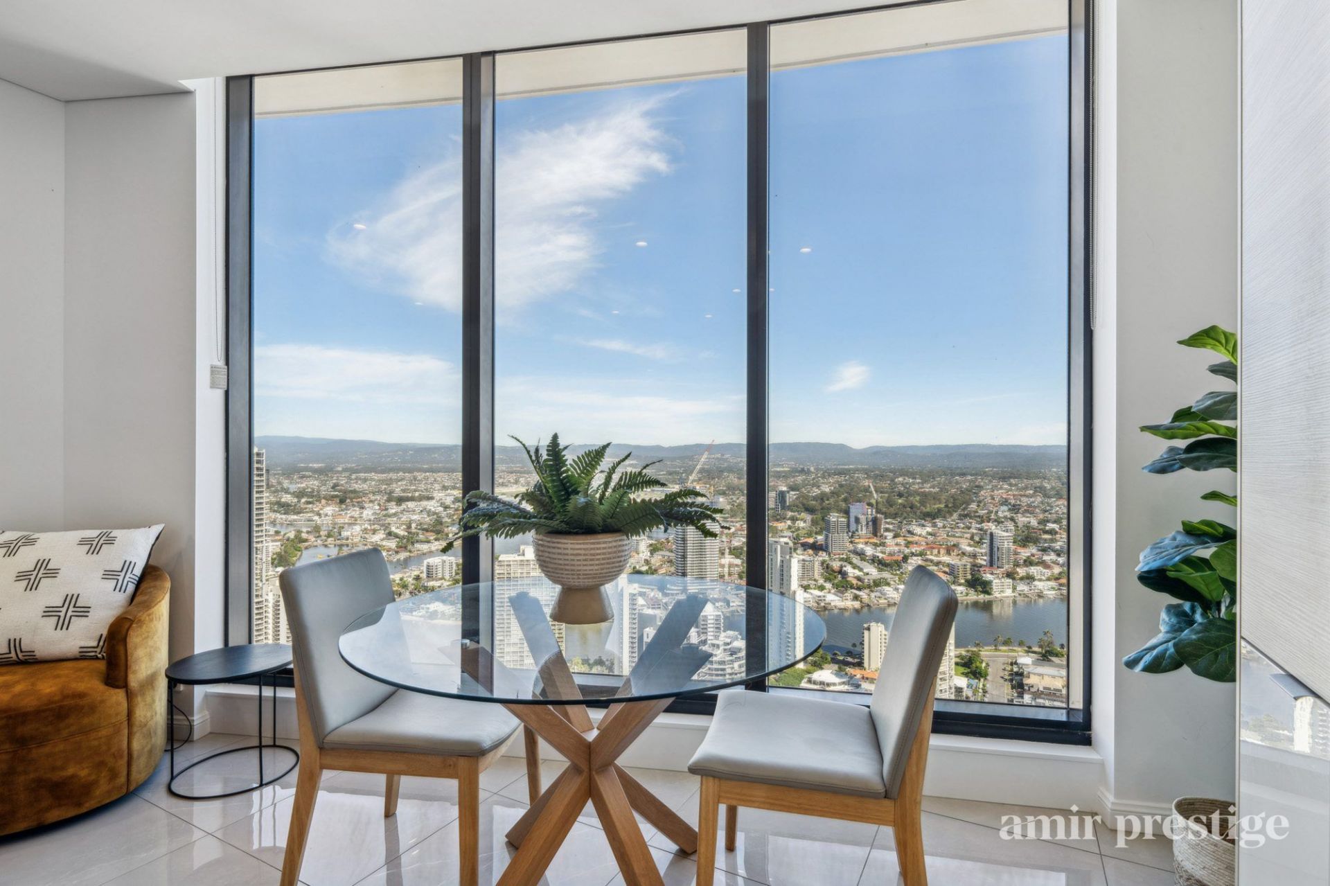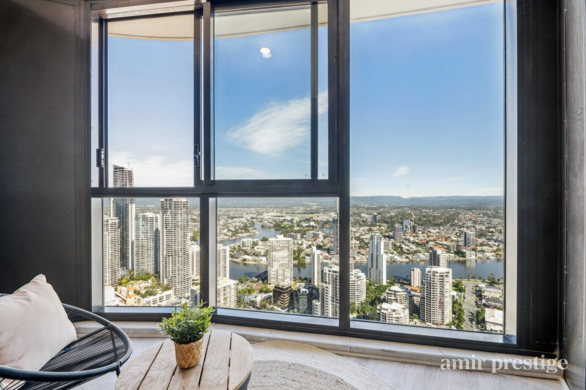 Being perched on the 43rd floor, the views to the hinterland are truly mesmerising-elevated high above the surrounding homes, offering an uninterrupted outlook that transforms by night into a dazzling display of twinkling lights across the landscape. It's a perspective few get to experience, creating an extraordinary sense of space, tranquillity, and prestige.