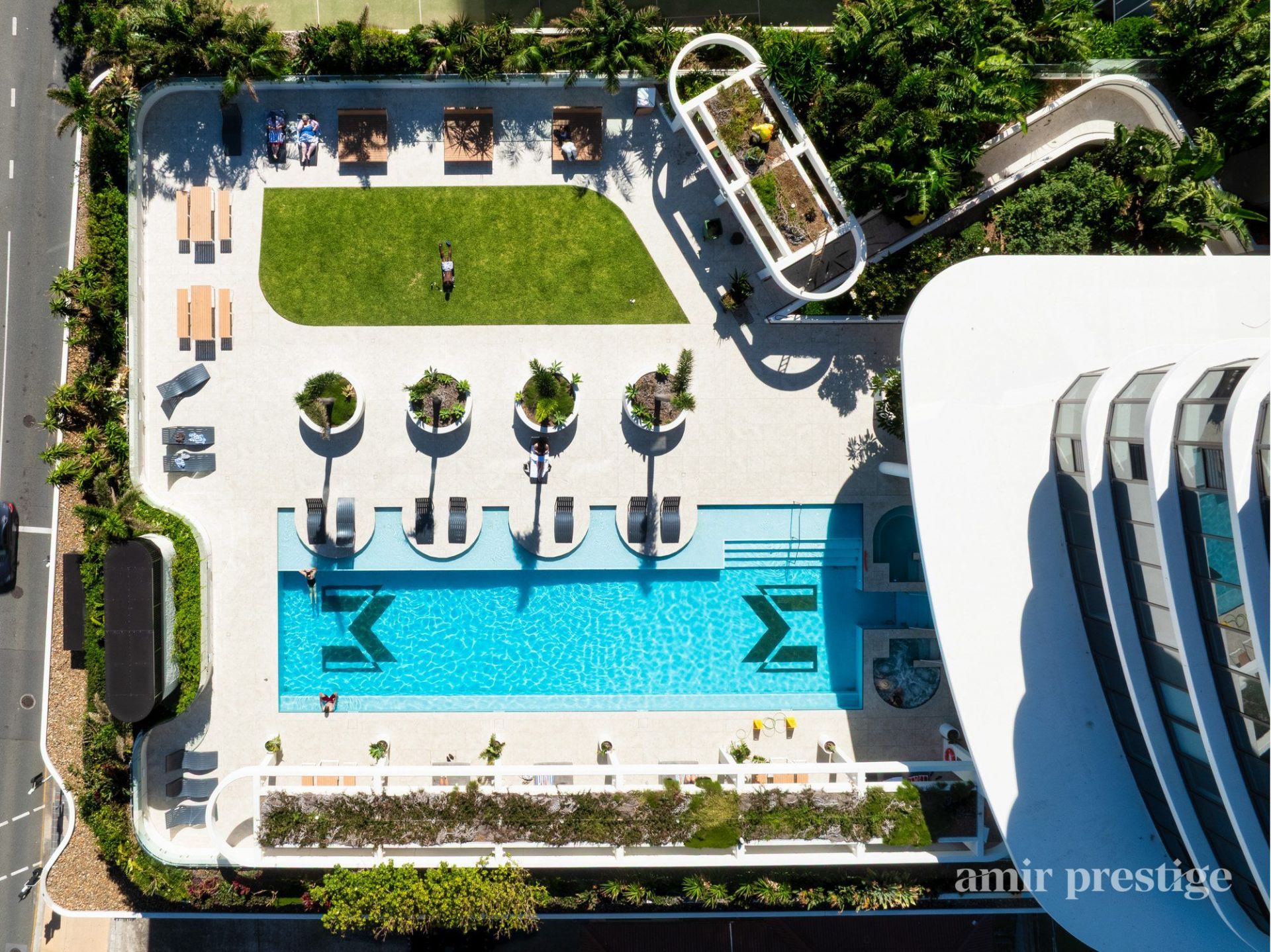 Level 5: Outdoor pool, spa, and landscaped gardens