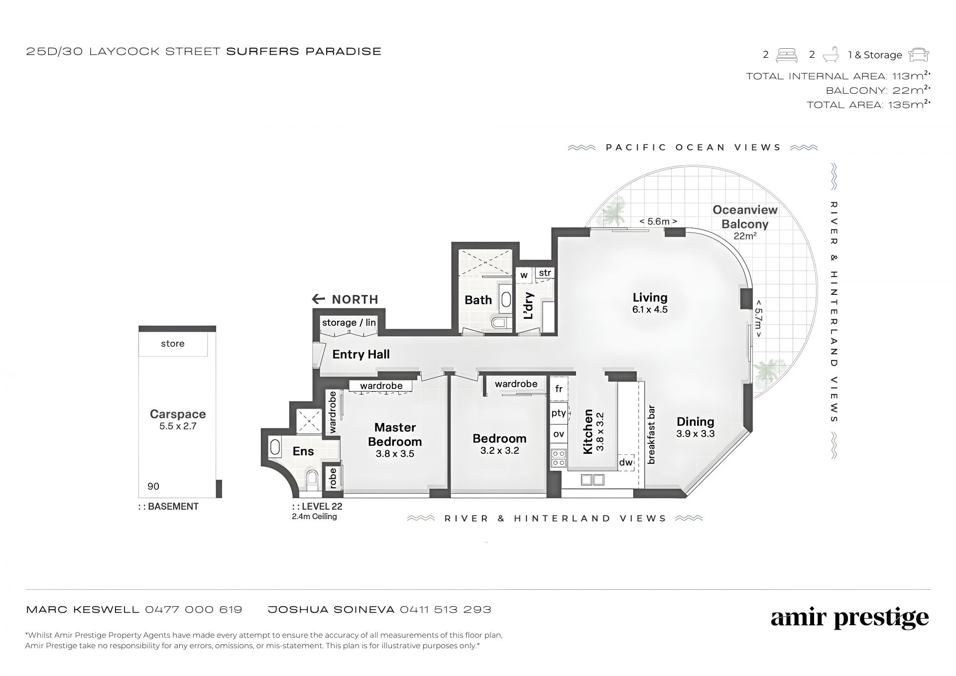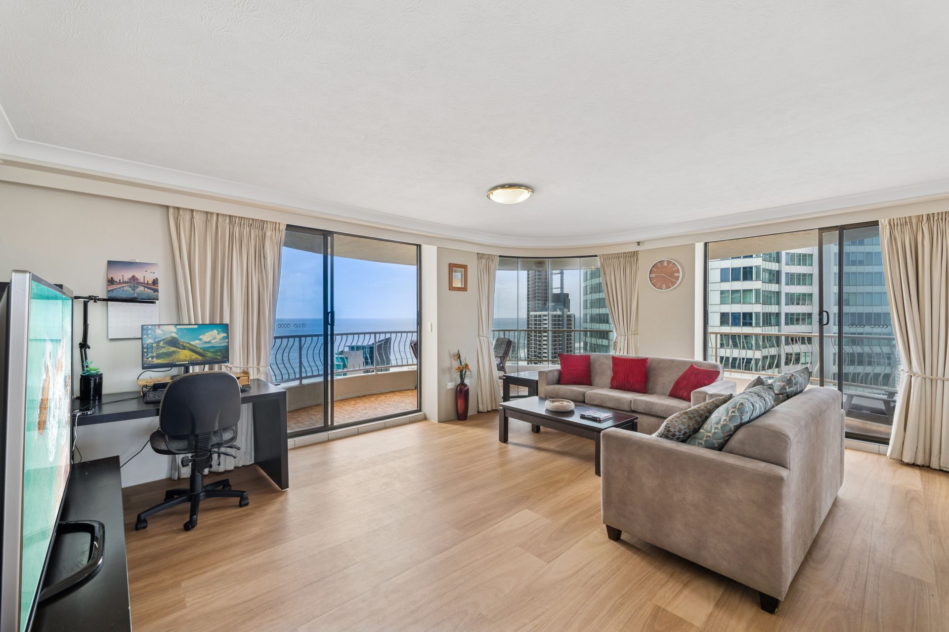 - Oversized balcony with 270° ocean, skyline and hinterland views