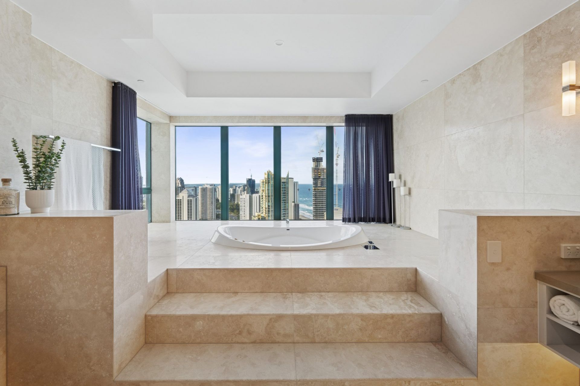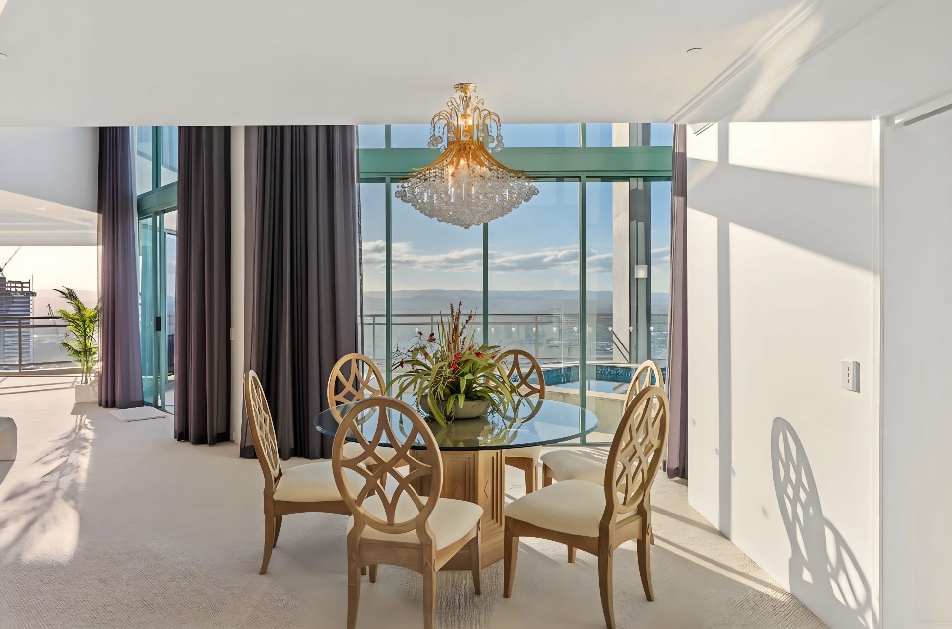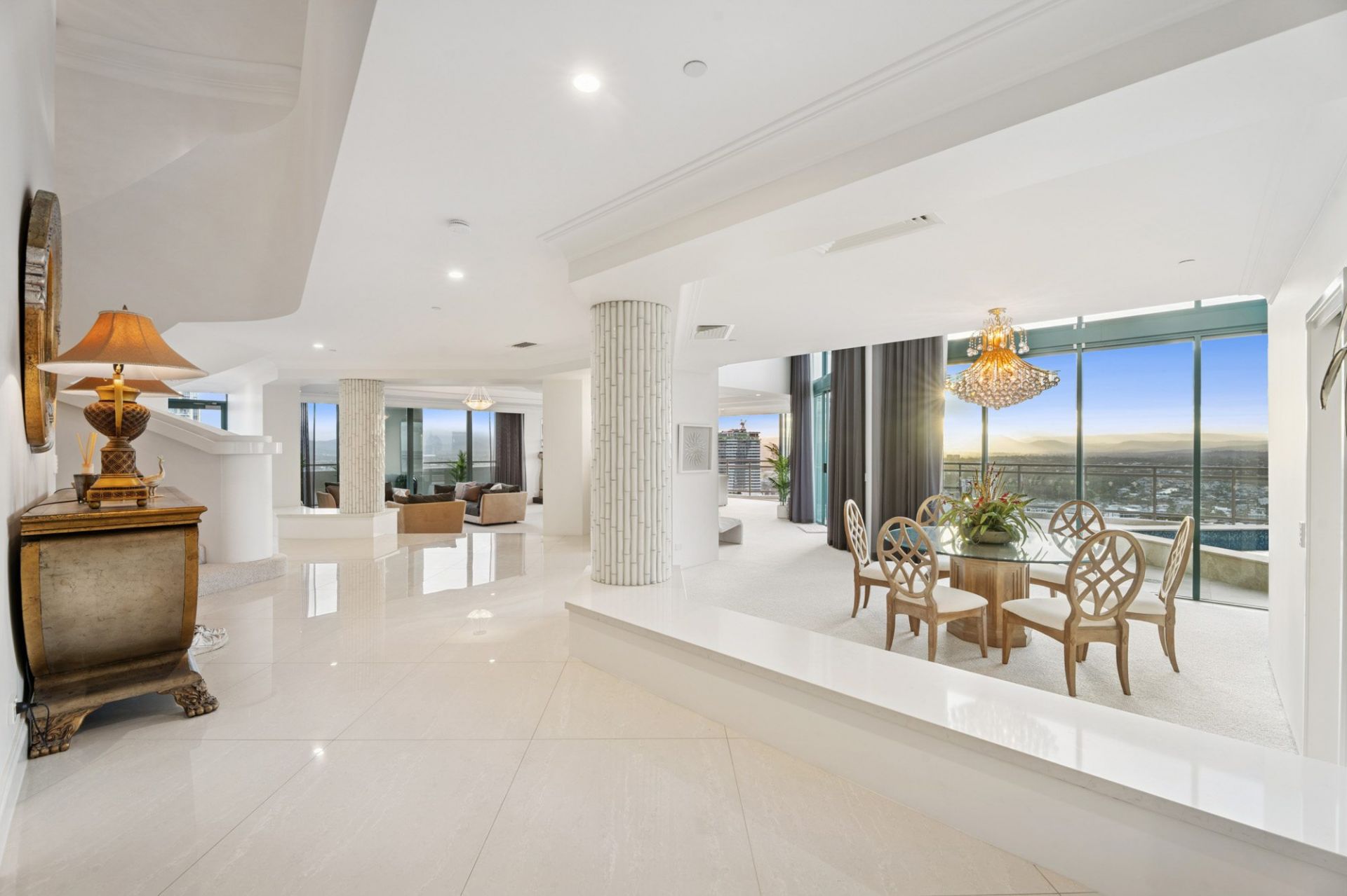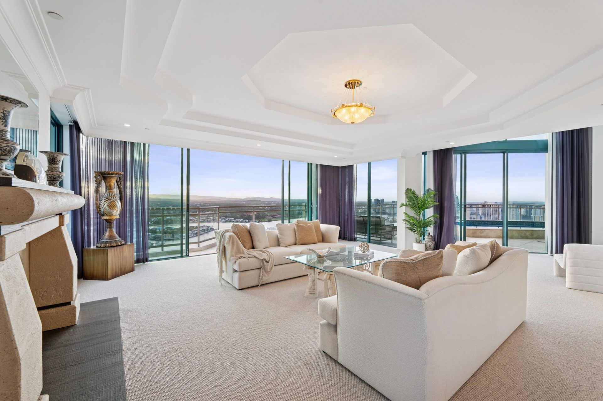 From the moment you step from your private lift foyer into soaring interiors wrapped in floor-to-ceiling glass, the sense of exclusivity is immediate. Expansive formal and informal living zones, generous dining spaces and a substantial gourmet kitchen are all framed by endless blue horizons, creating a home designed for grand-scale entertaining and refined coastal living.