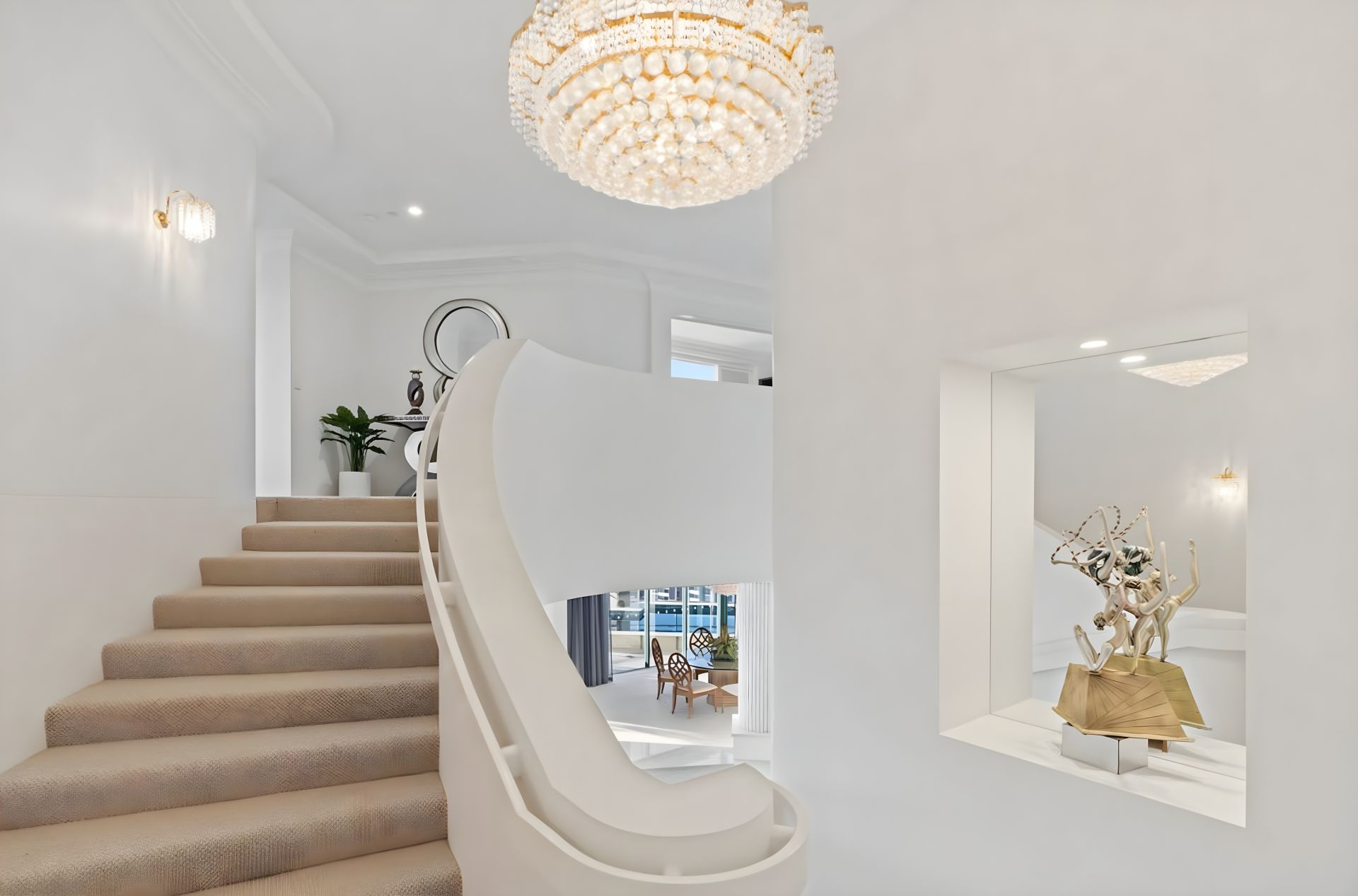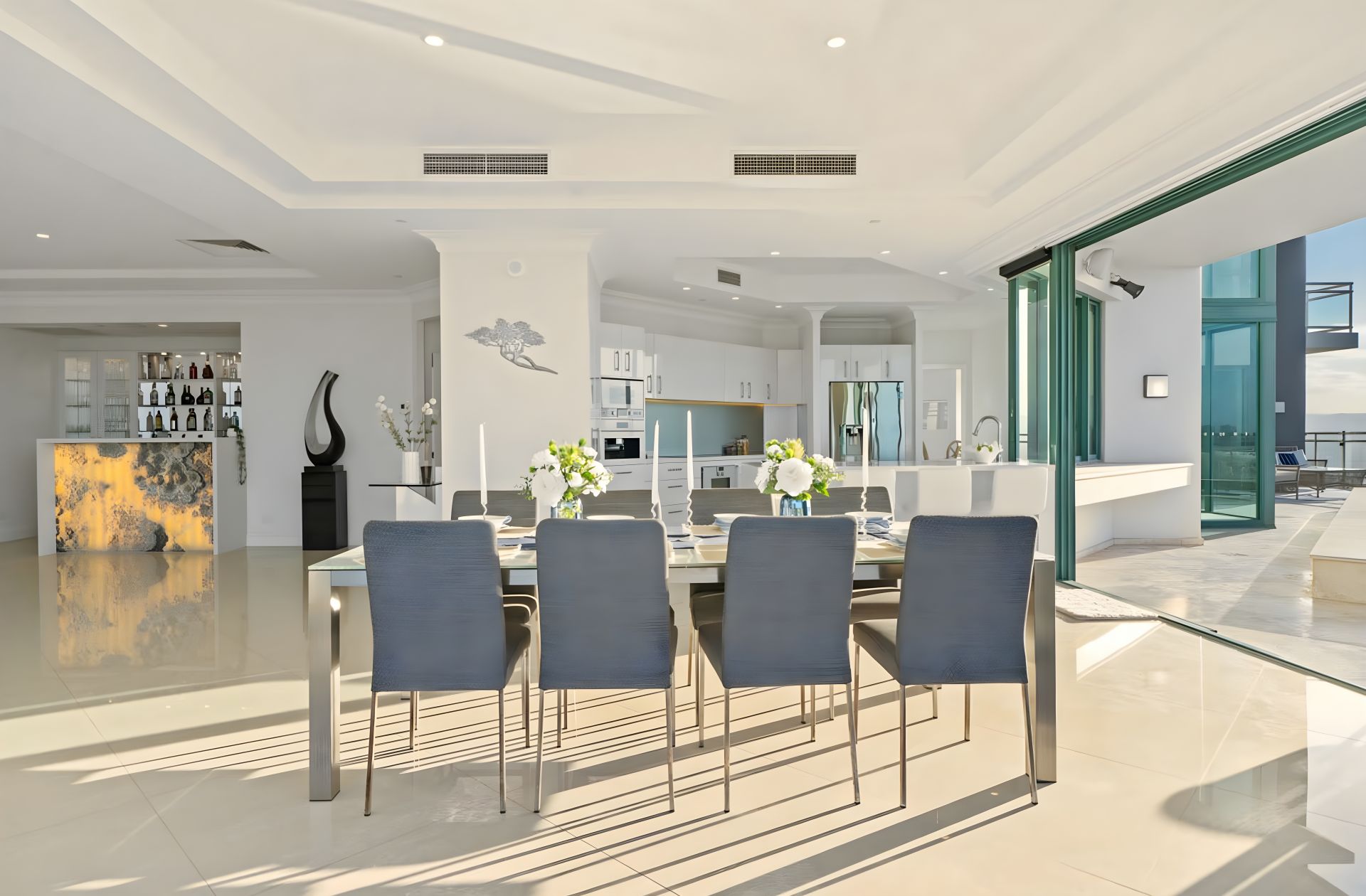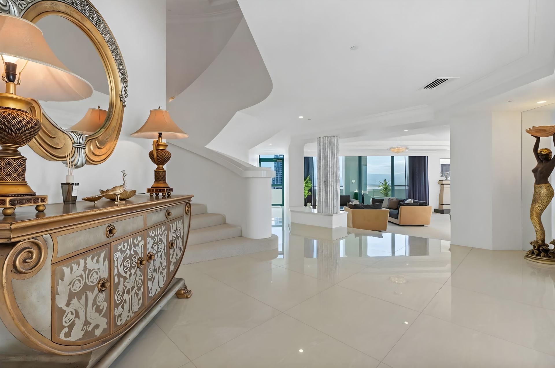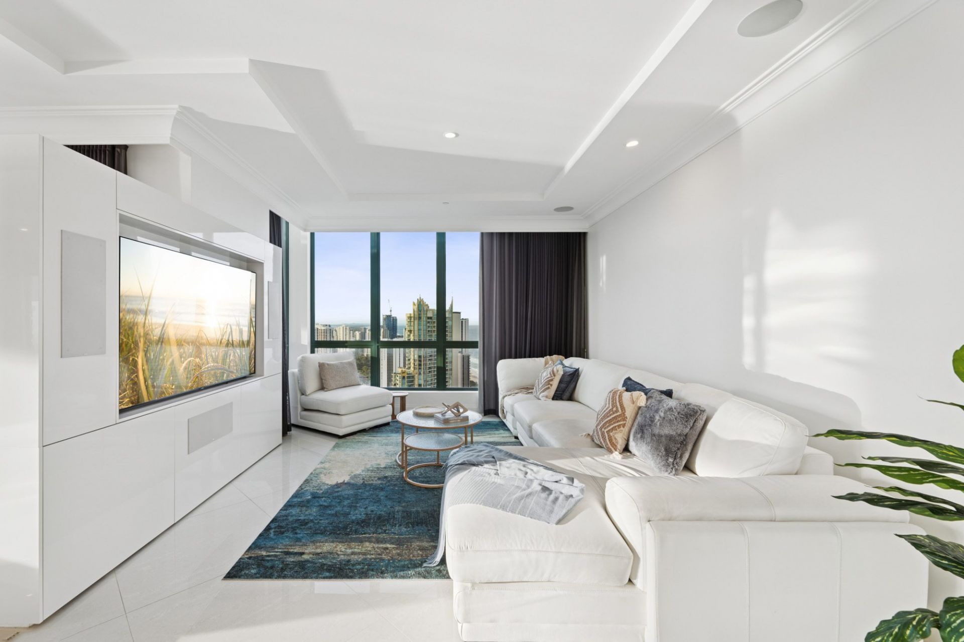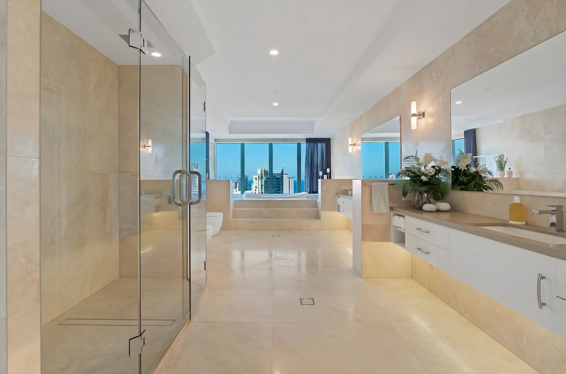 From the moment you step from your private lift foyer into soaring interiors wrapped in floor-to-ceiling glass, the sense of exclusivity is immediate. Expansive formal and informal living zones, generous dining spaces and a substantial gourmet kitchen are all framed by endless blue horizons, creating a home designed for grand-scale entertaining and refined coastal living.