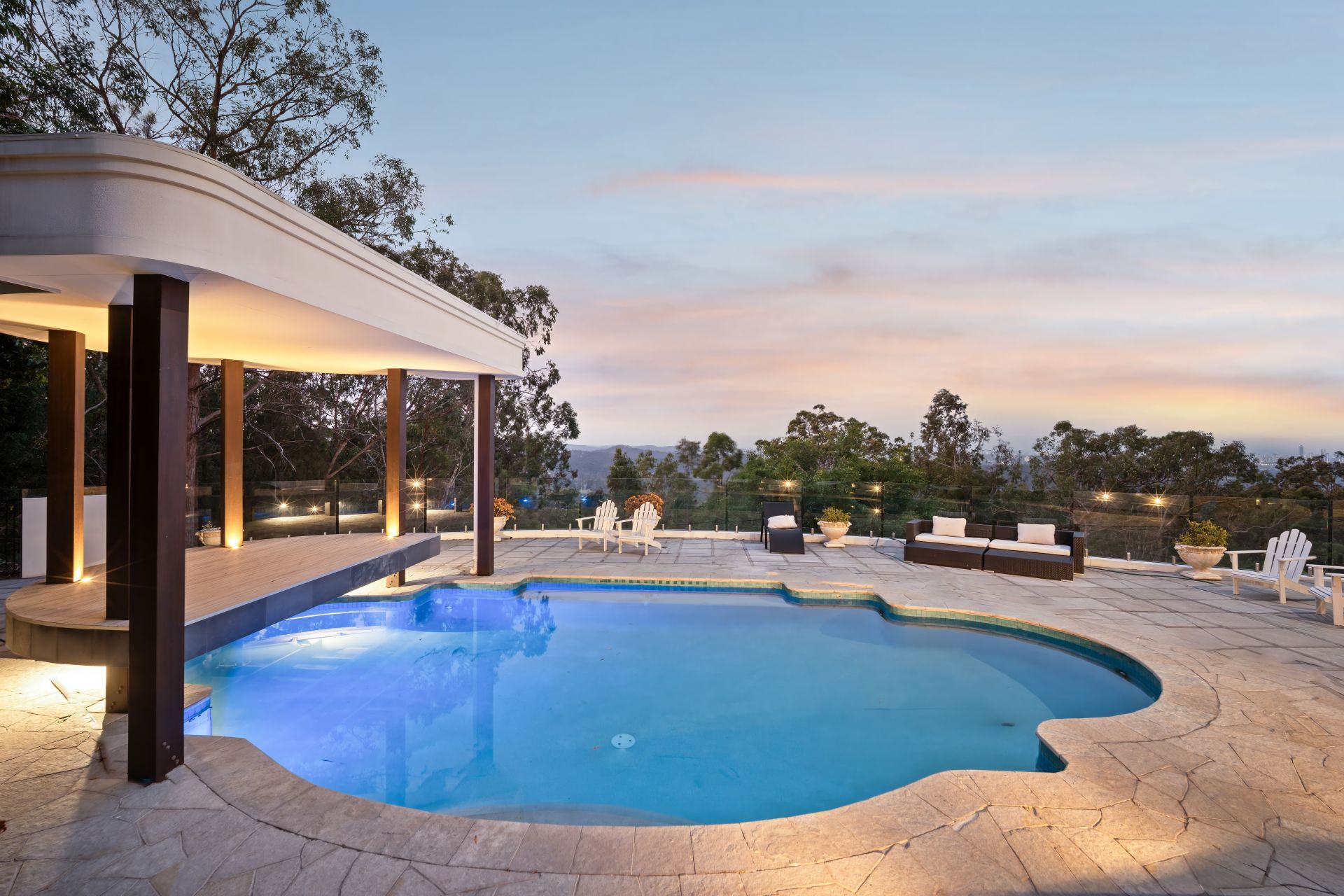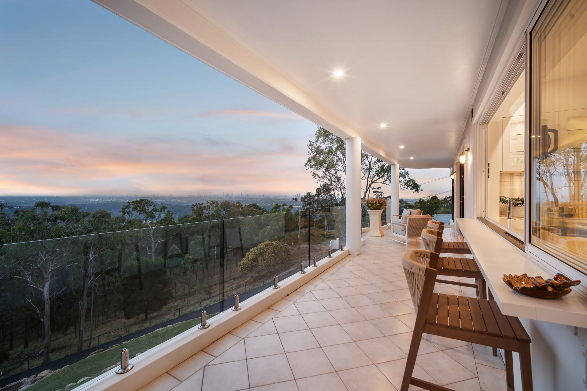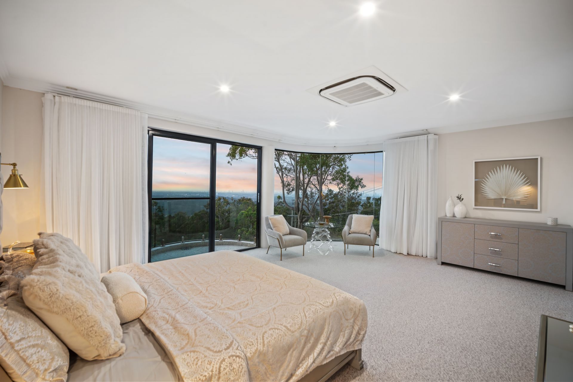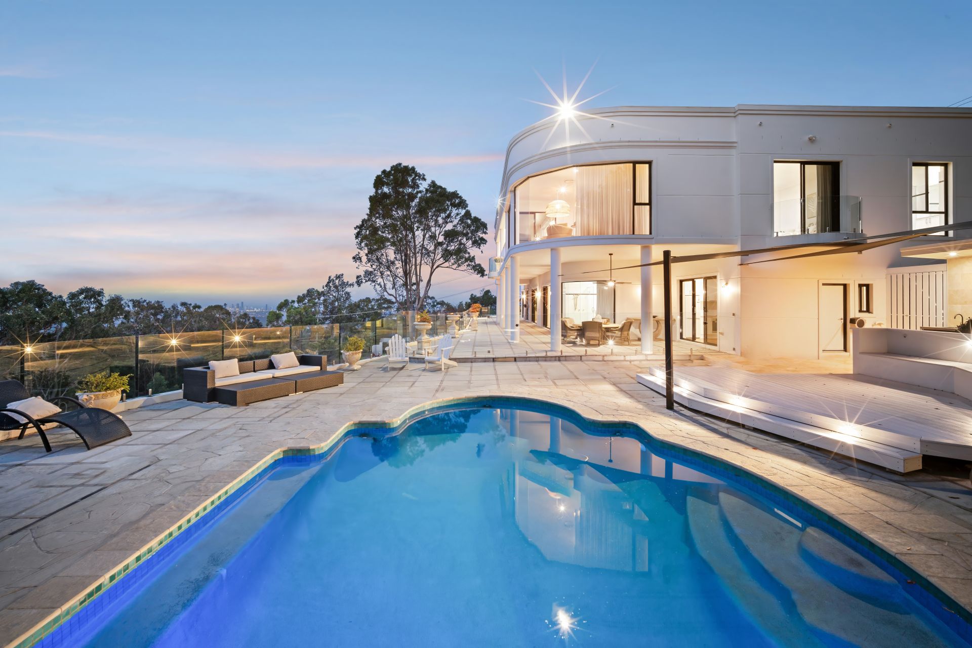 Designed for grand gatherings or private relaxation, the home opens to a choice of terraces, balconies and landscaped retreats, set against the backdrop of city lights and the ocean beyond. A private driveway meanders down through the terraced grounds to a water reserve, with generous space to accommodate a warehouse, additional storage, or further recreational amenity.